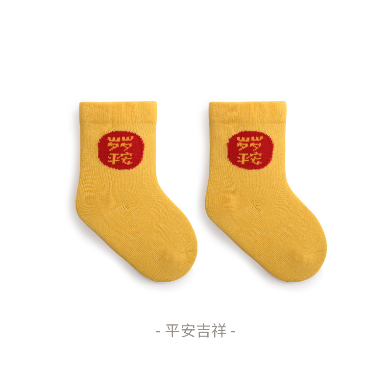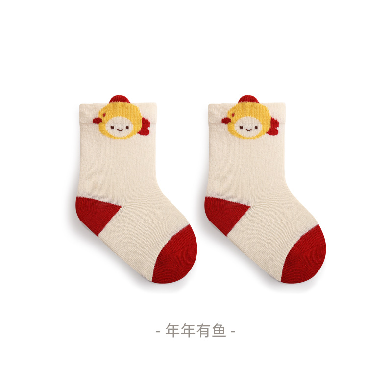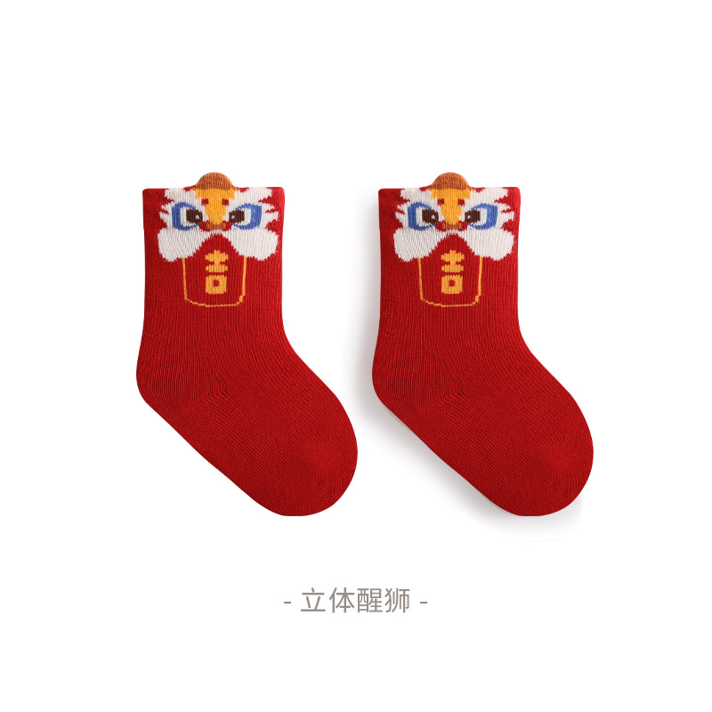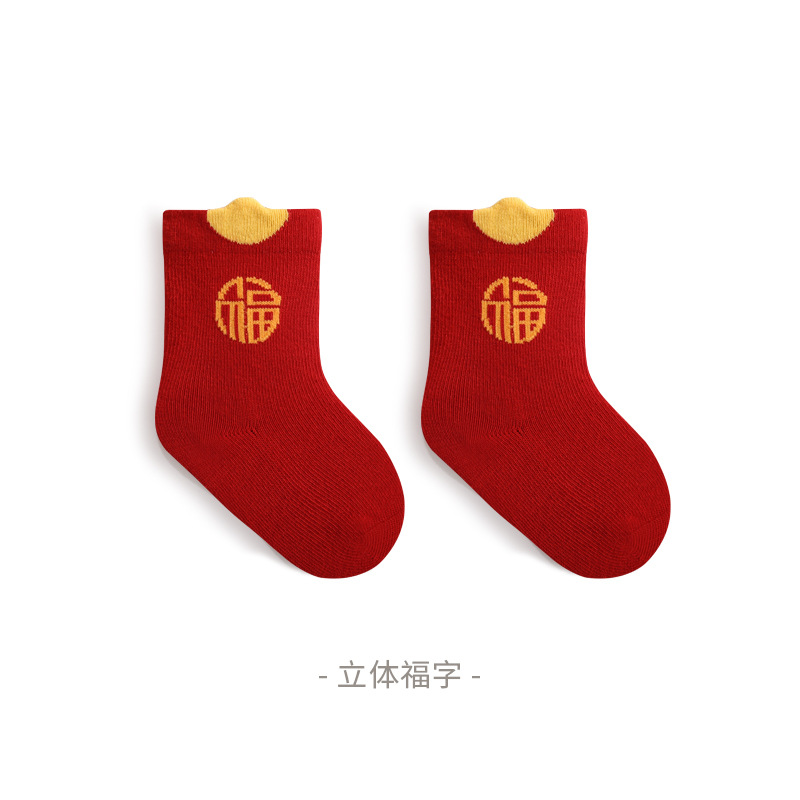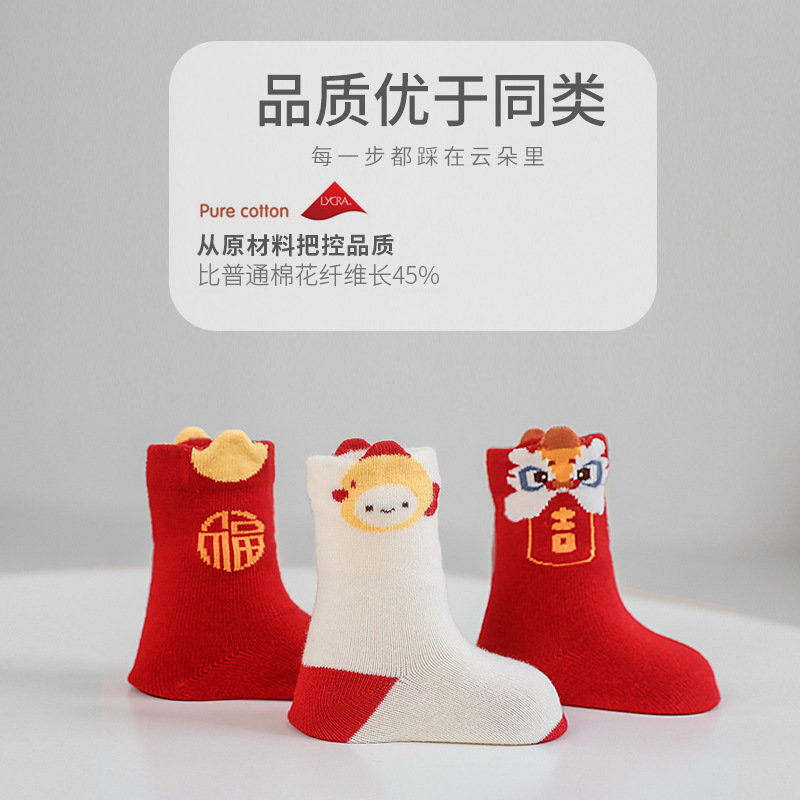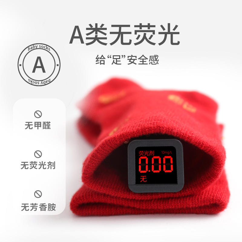 2023秋季新品新生婴儿袜子松口无骨男女宝宝新年周岁大红中筒袜子