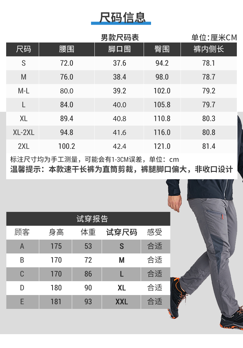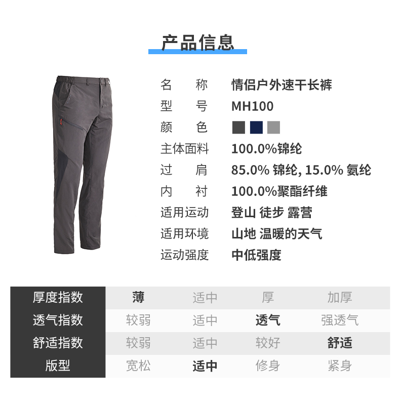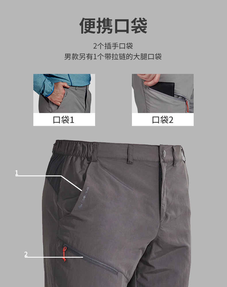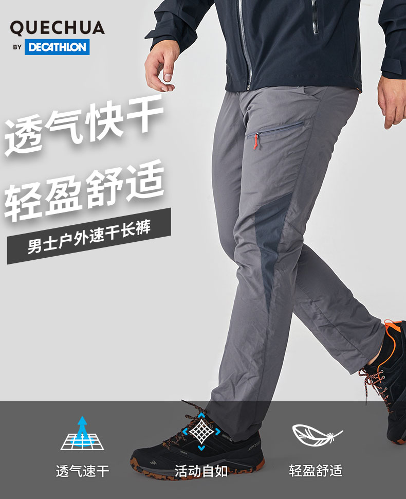 迪卡儂官方夏季戶外速乾褲男春秋爬山登山森林徒步大尺碼多彈力ODT1