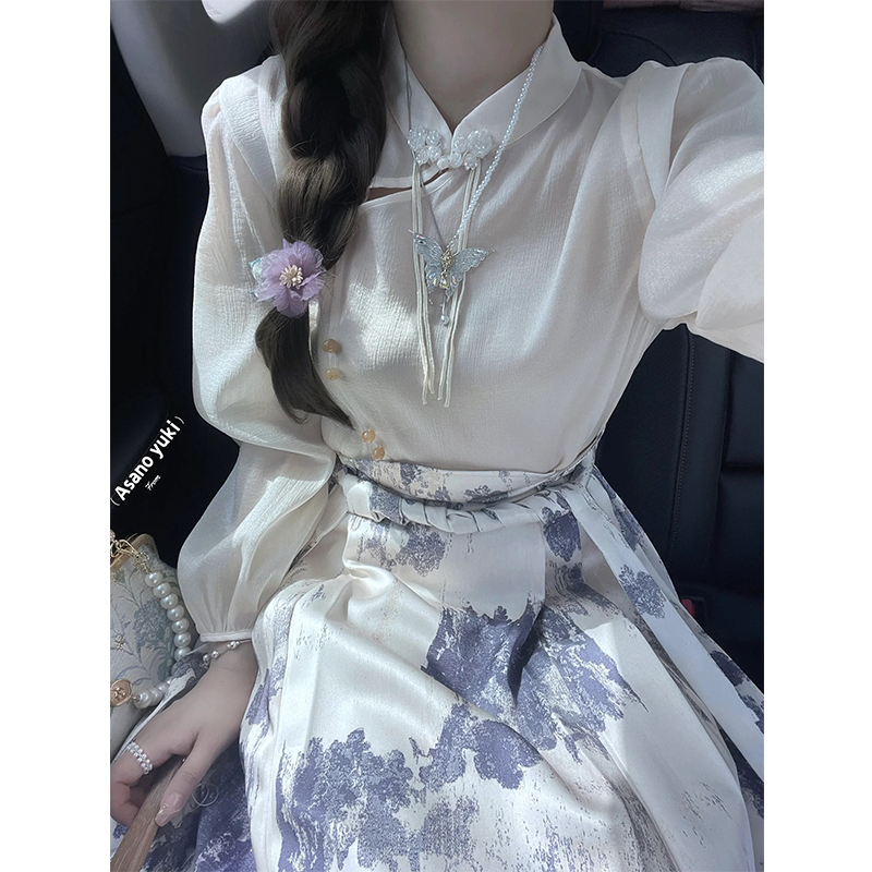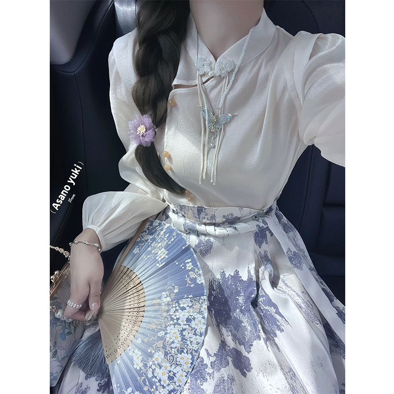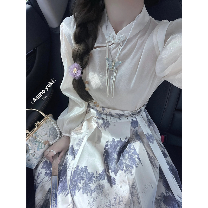 新中式國風馬面裙套裝女秋季高級感氣質長袖襯衫半身長裙子兩件套
