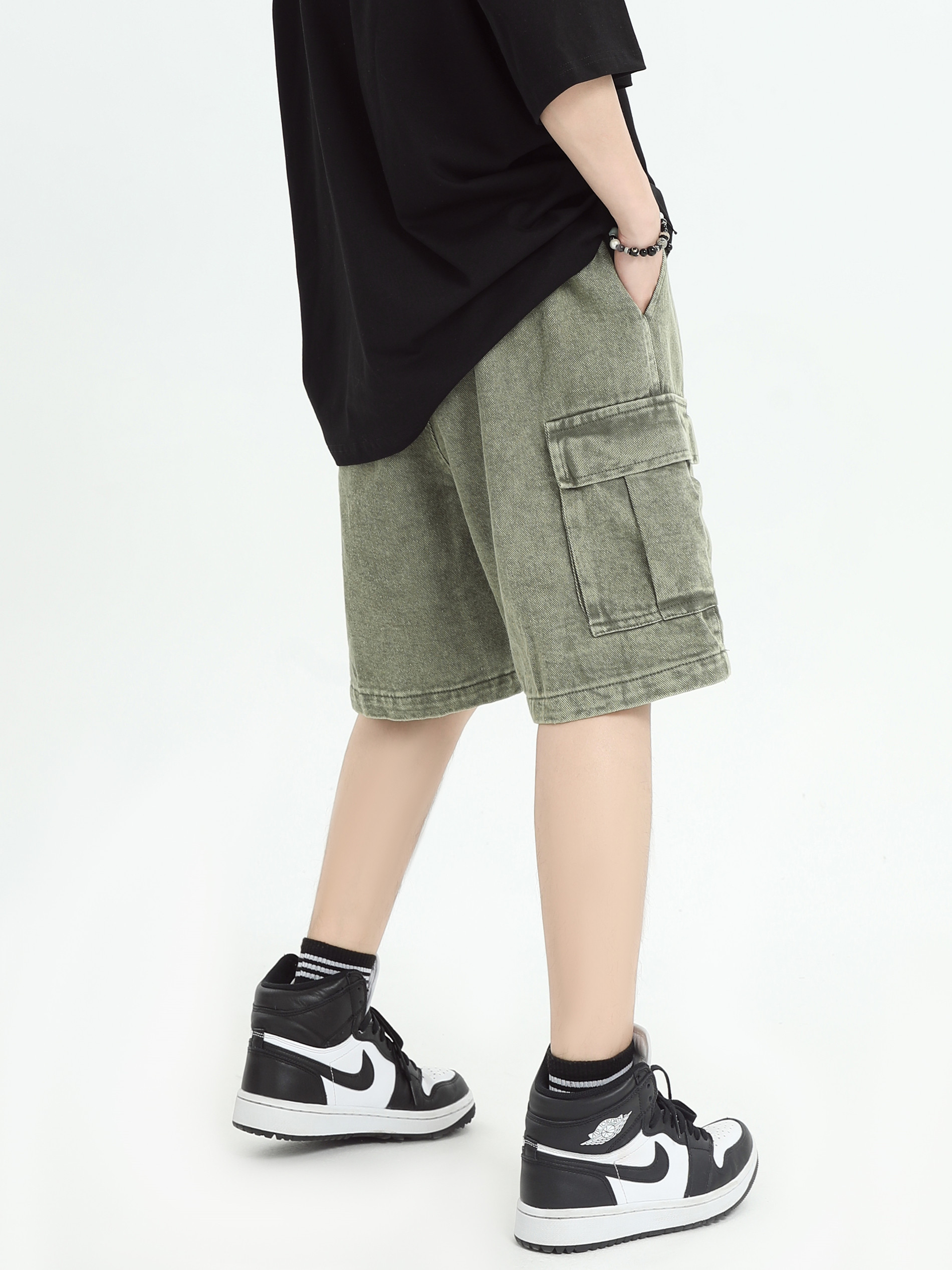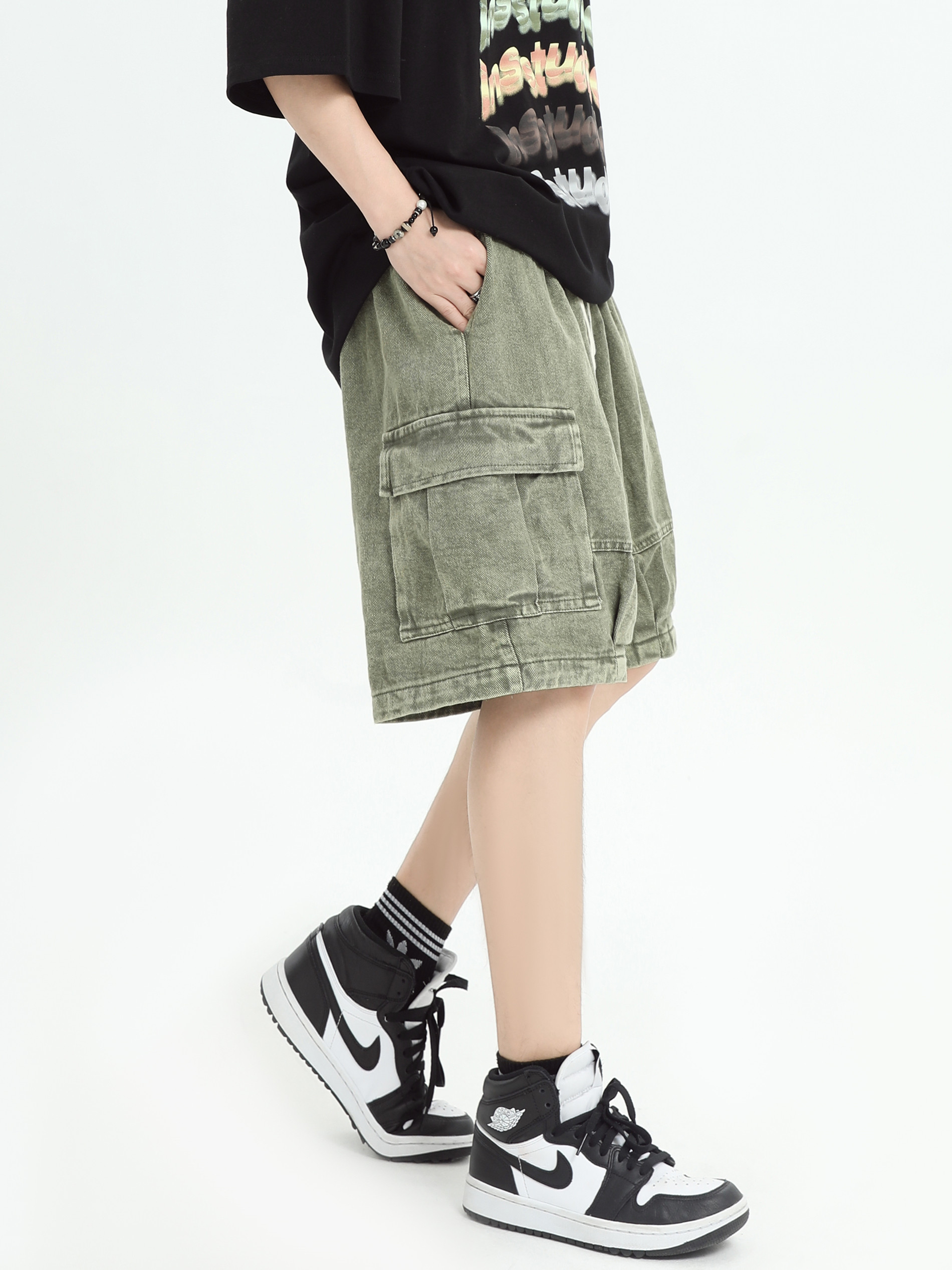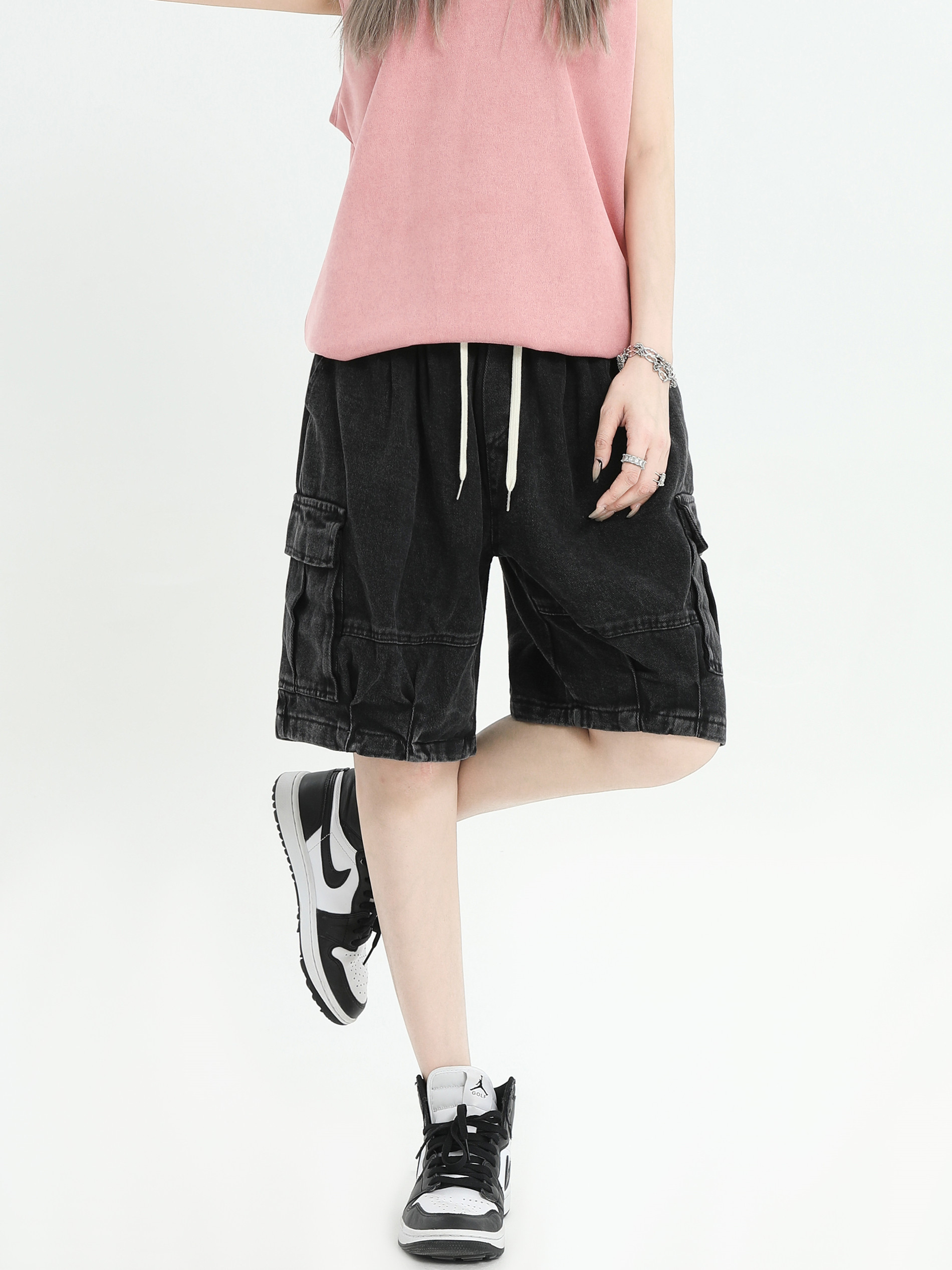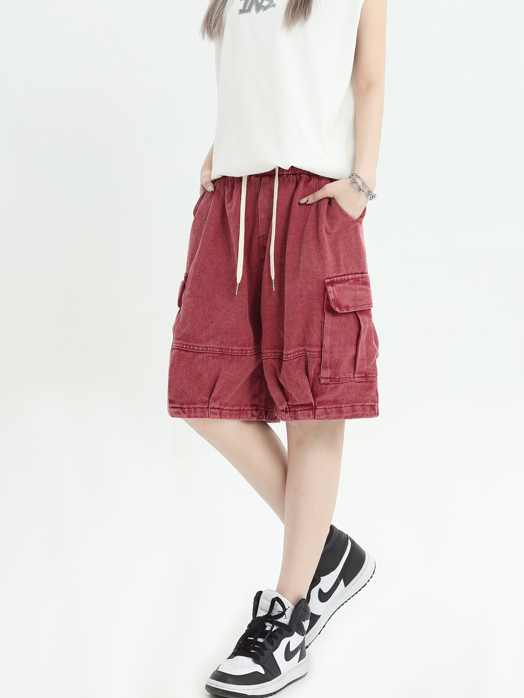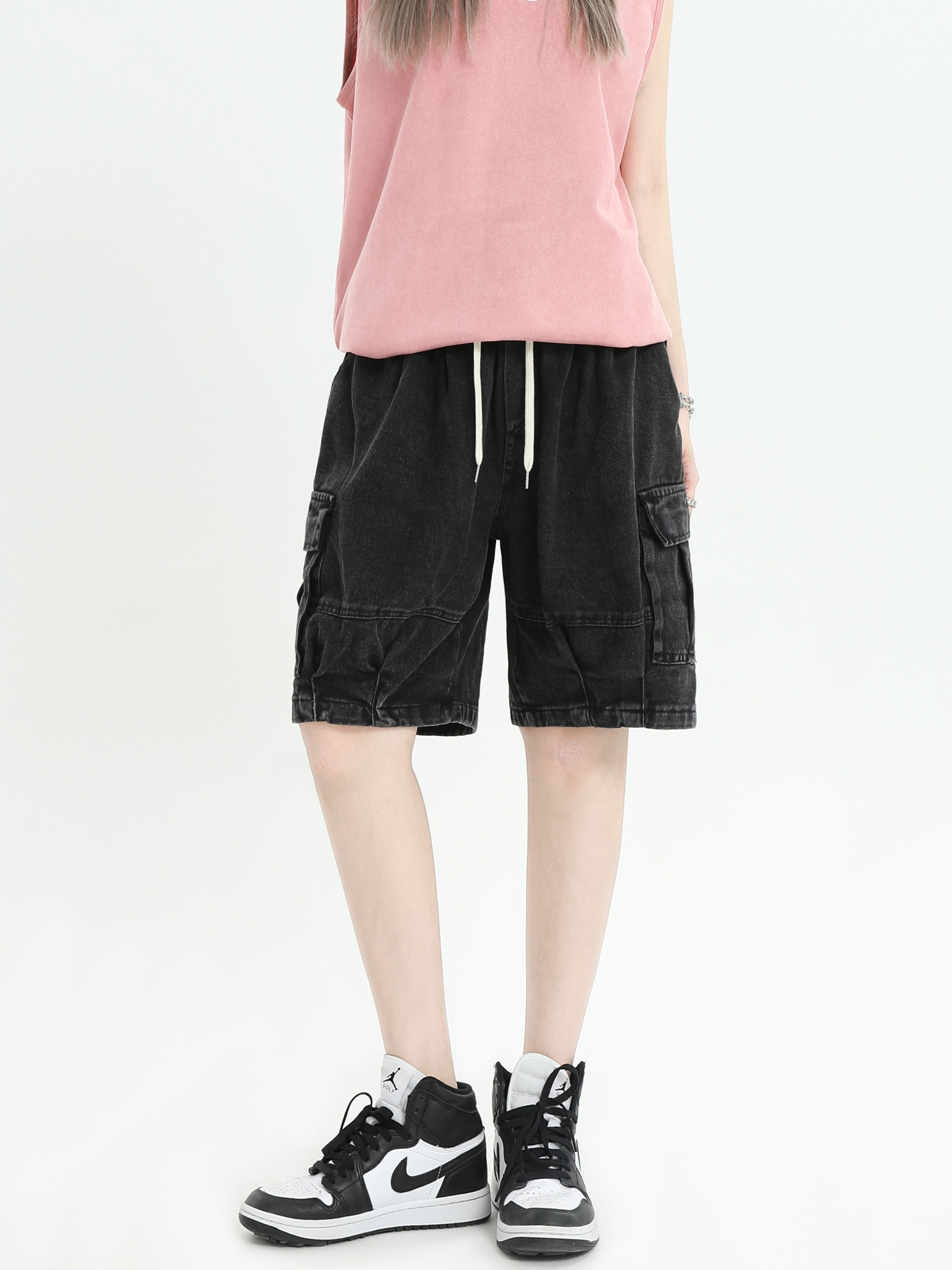 【INSKR】國潮牌情侶美式做舊洗水牛仔短褲寬鬆貼袋工裝五分褲男