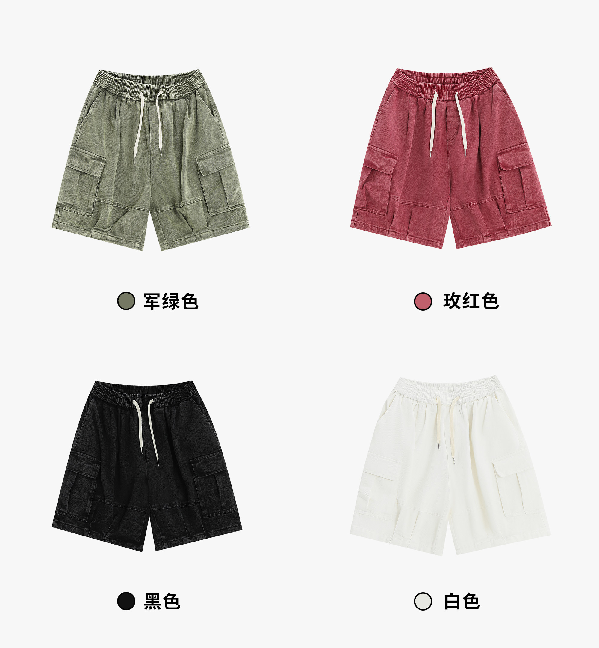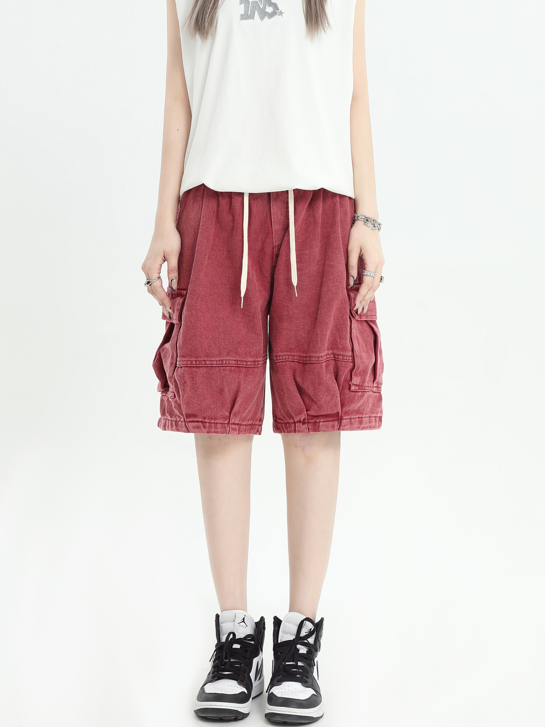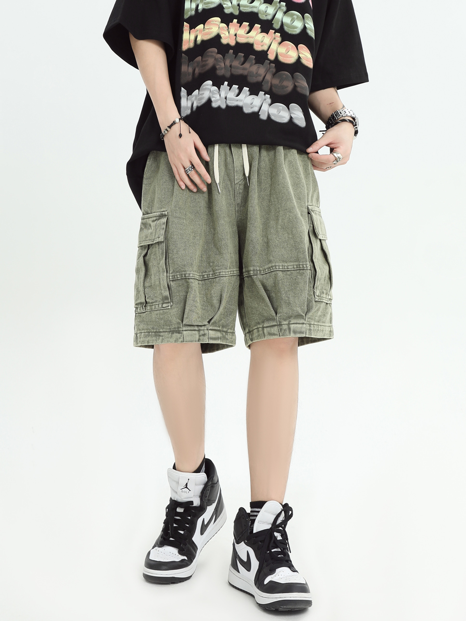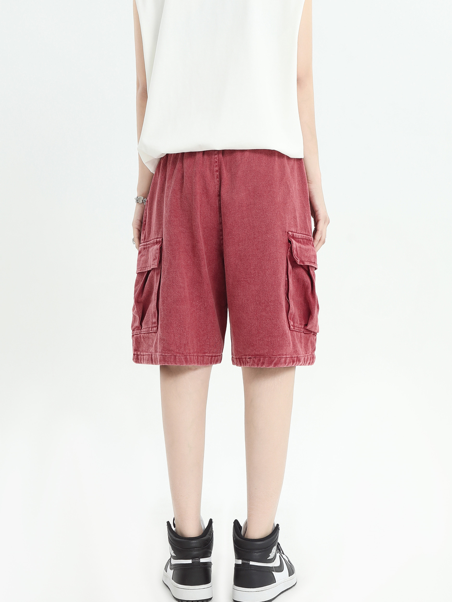 【INSKR】國潮牌情侶美式做舊洗水牛仔短褲寬鬆貼袋工裝五分褲男
