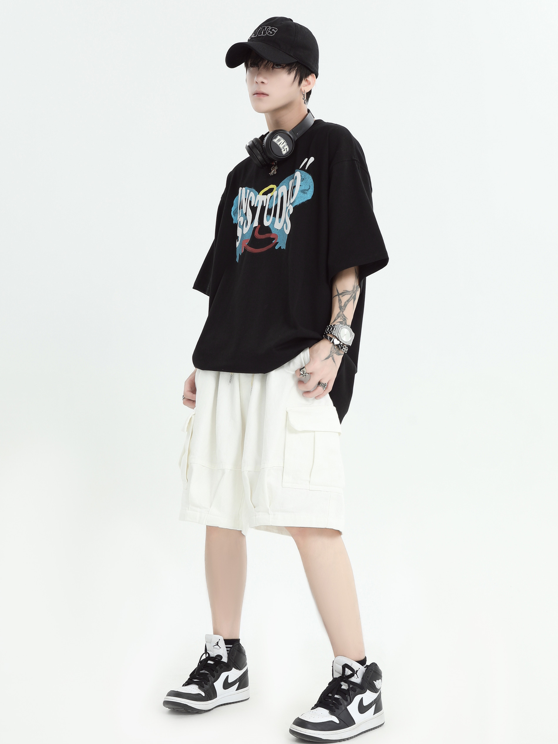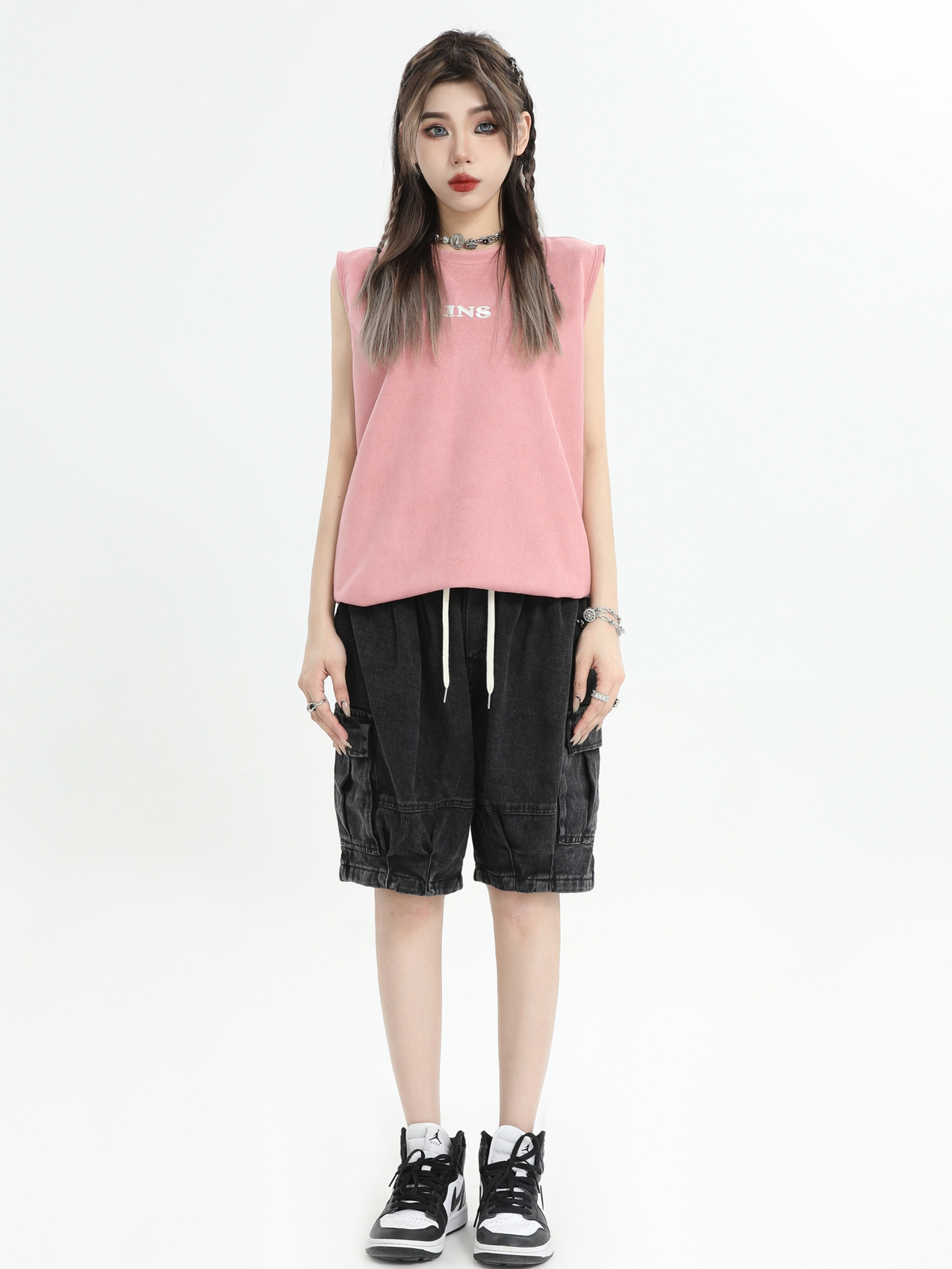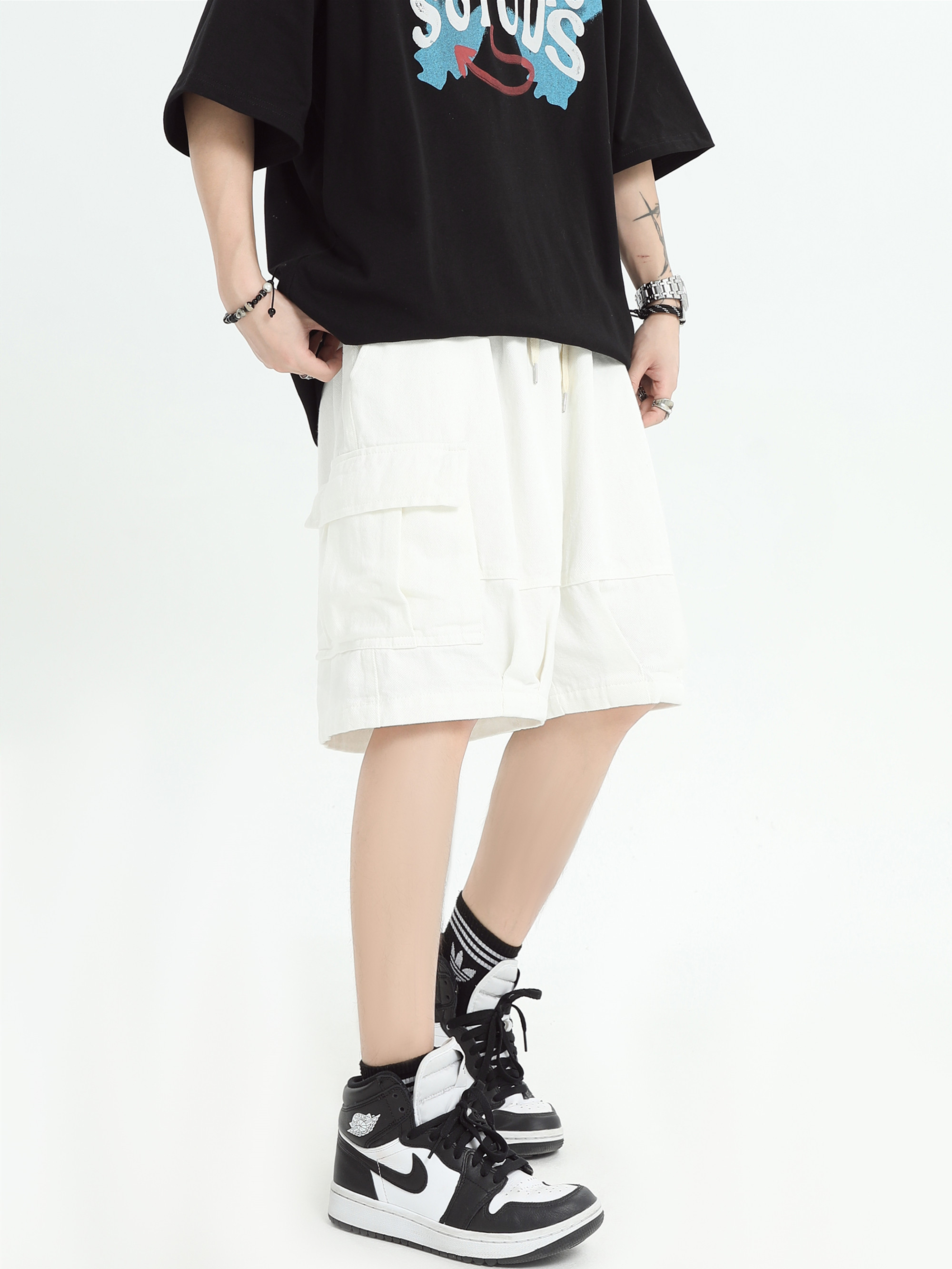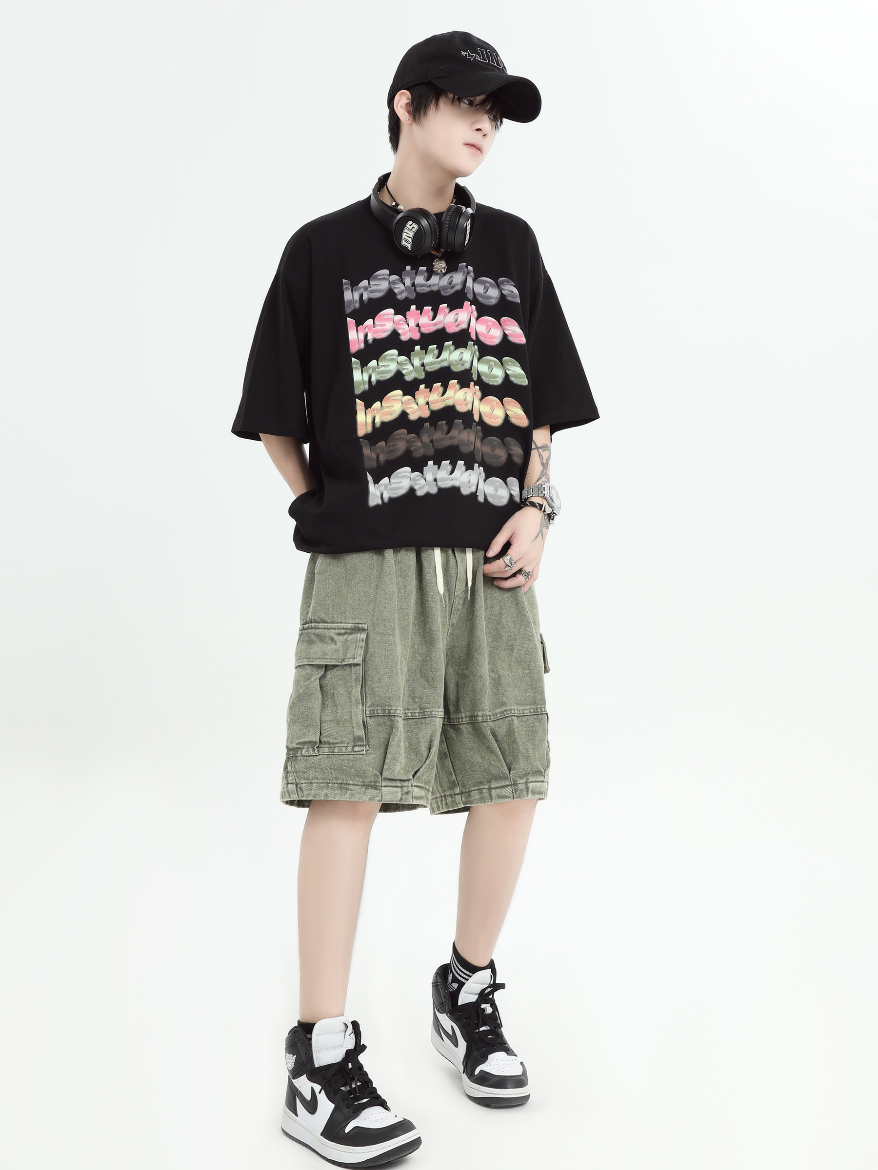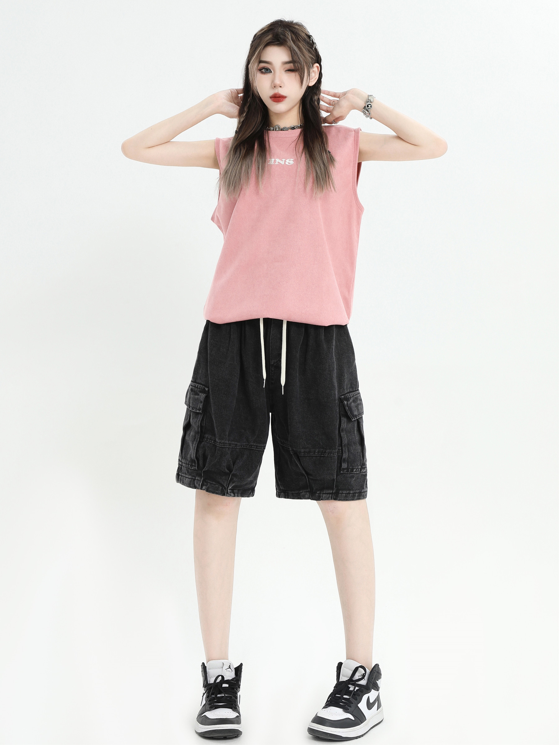 【INSKR】國潮牌情侶美式做舊洗水牛仔短褲寬鬆貼袋工裝五分褲男