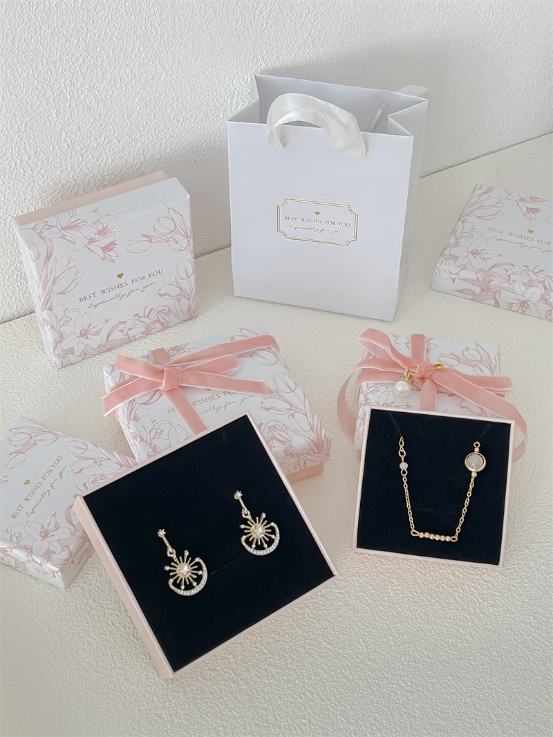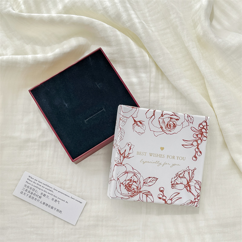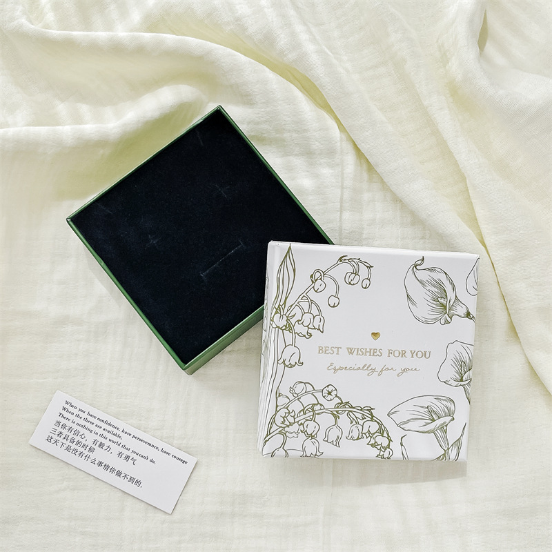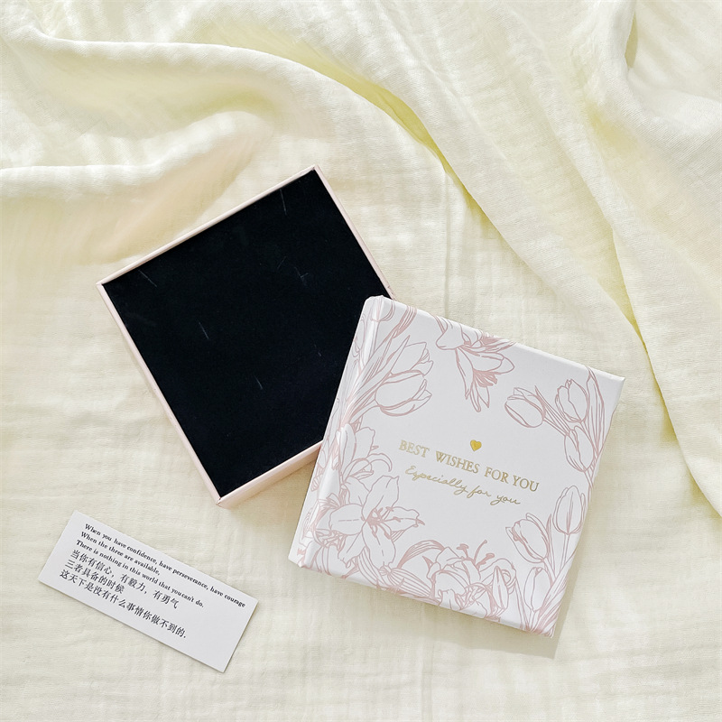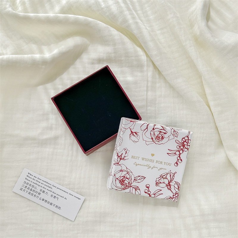 这款包装盒不仅外观吸引人,而且注重实用性。盒子内部采用柔软的绒布衬里,呵护您的首饰,也可以选择搭配pe膜防氧化的盒子让饰品固定的更好,也更便于展示和运输。