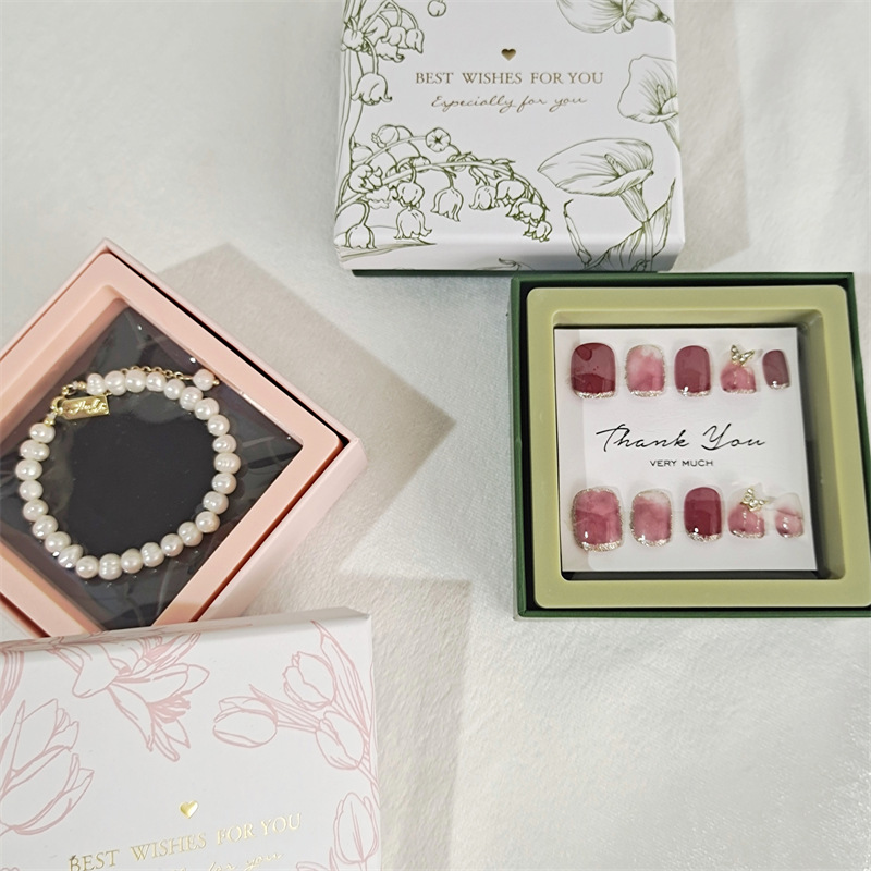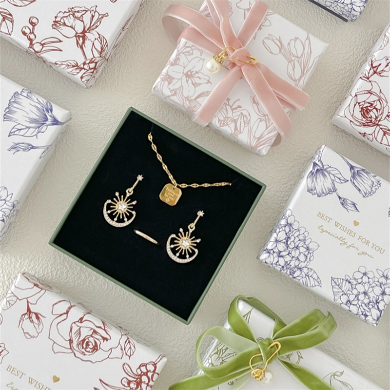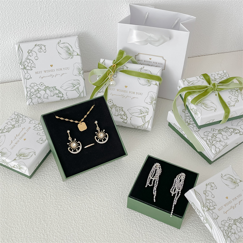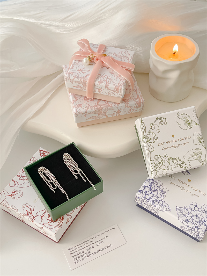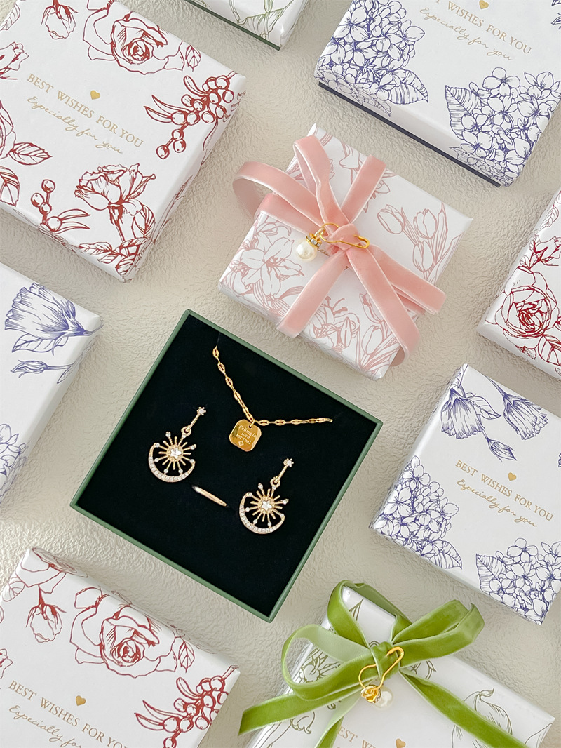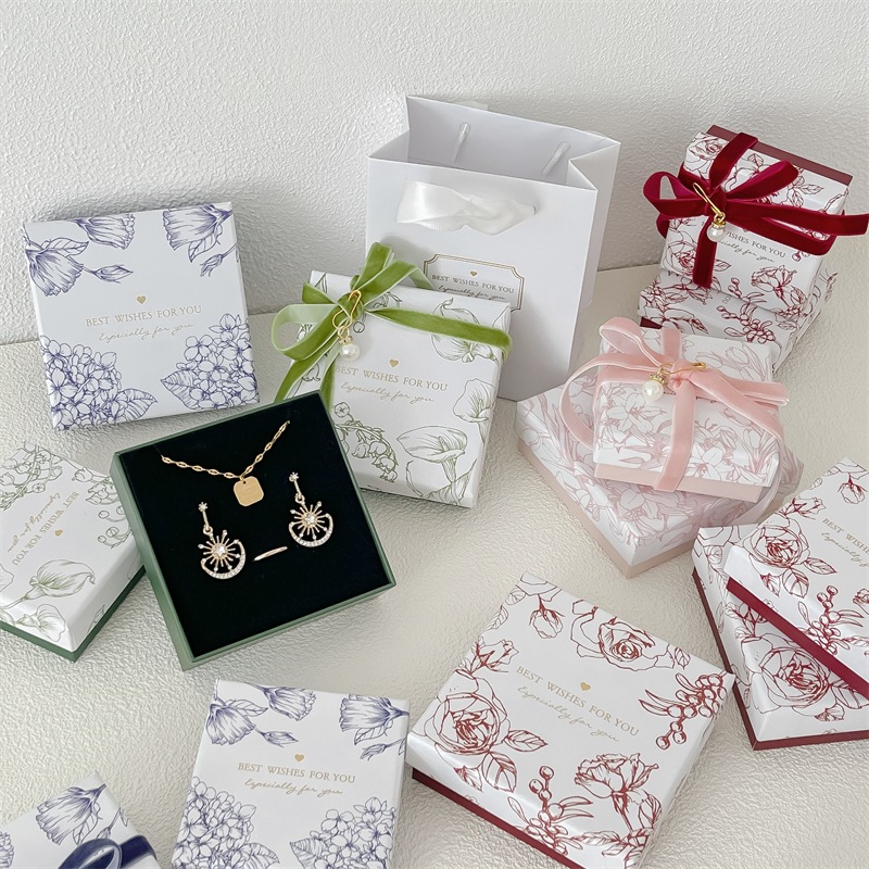 新品 植物风法式文艺饰品首饰穿戴甲包装盒戒指耳钉耳环项链手链