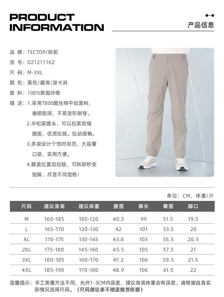 探拓戶外男士可脫卸速乾兩節褲輕薄透氣寬鬆薄款徒步長褲拆卸短褲