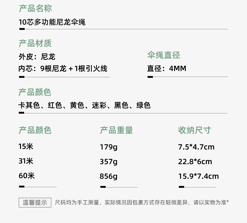顏色分類 【15米】黑色,【15米】紅色,【15米】黃色,【15米】卡其,【15米】軍綠,【15米】迷彩,【31米】黑色,【31米】紅色,【31米】黃色,【31米】卡其,【31米】軍綠,【31米】迷彩,【60米】黑色,【60米】紅色,【60米】黃色,【60米】卡其,【60米】軍綠,【60米】迷彩,配件十五件套