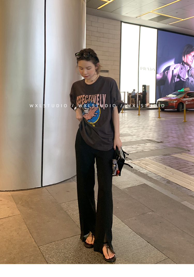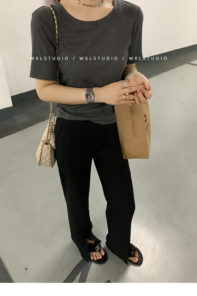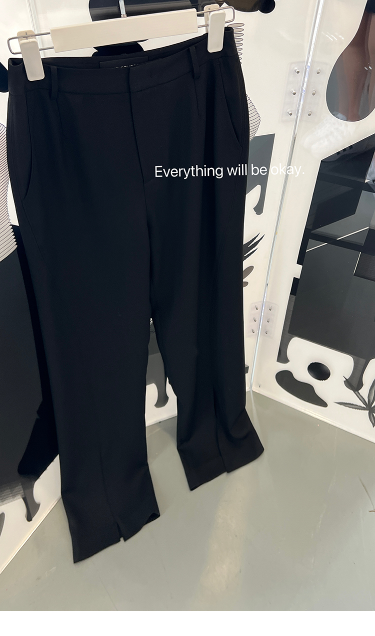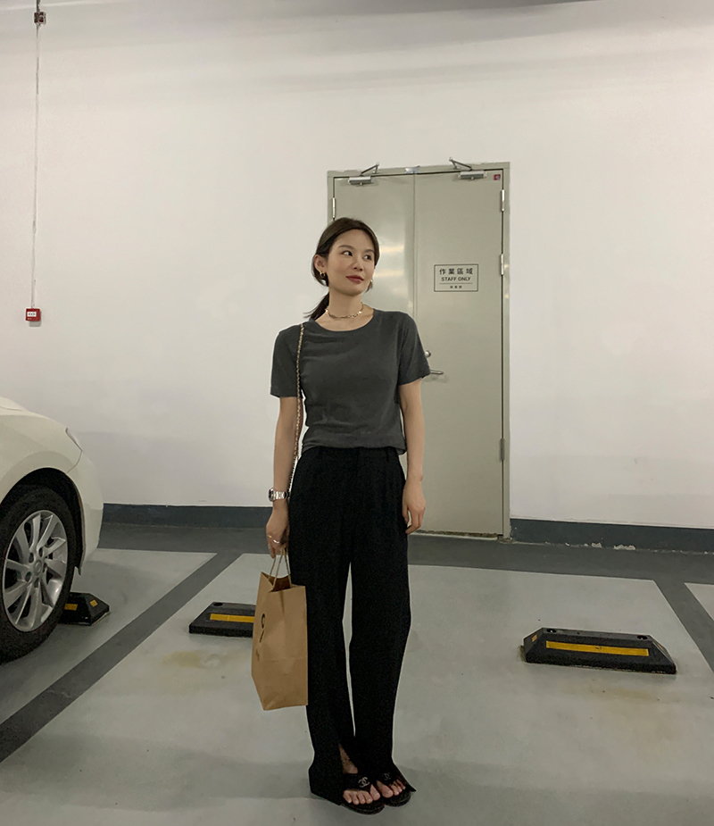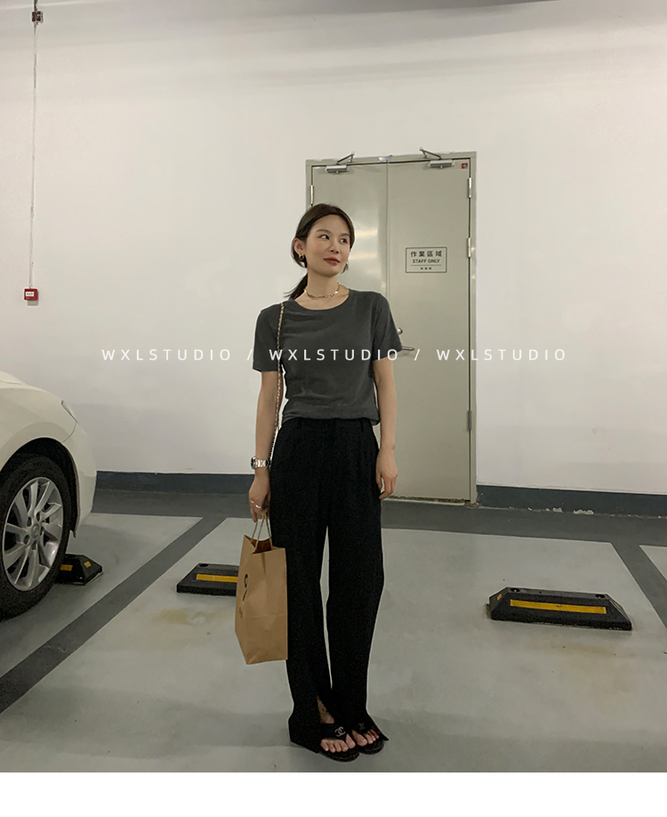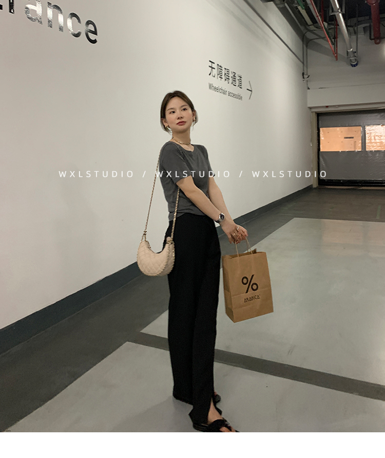 经久不衰的纯色阔腿裤 做了斜开叉小设计