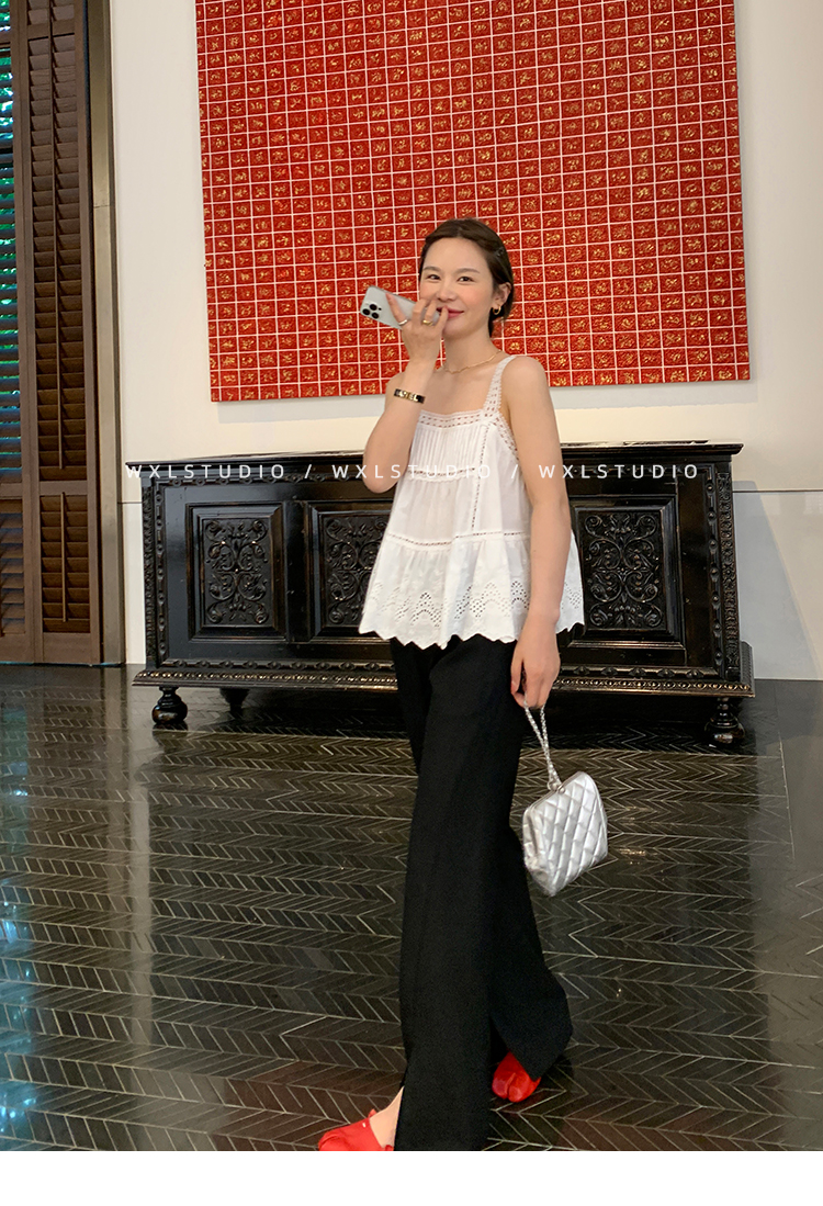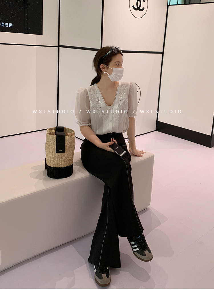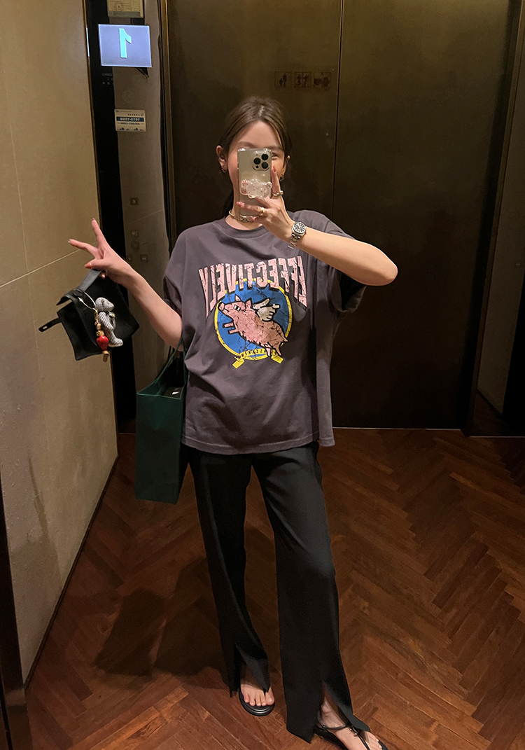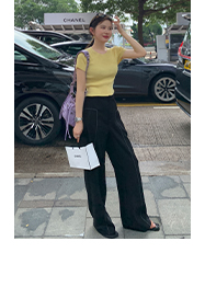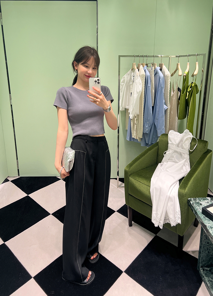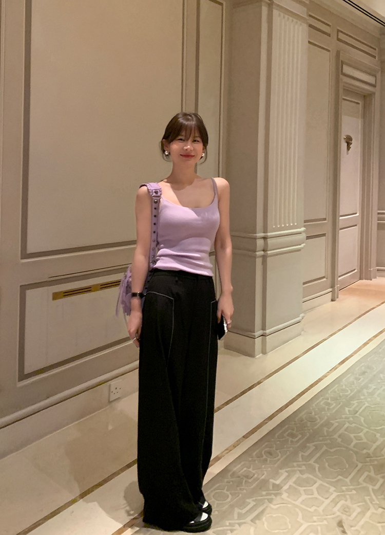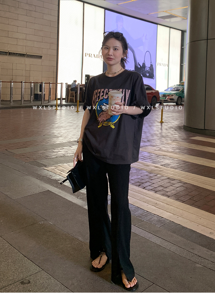 经久不衰的纯色阔腿裤 做了斜开叉小设计