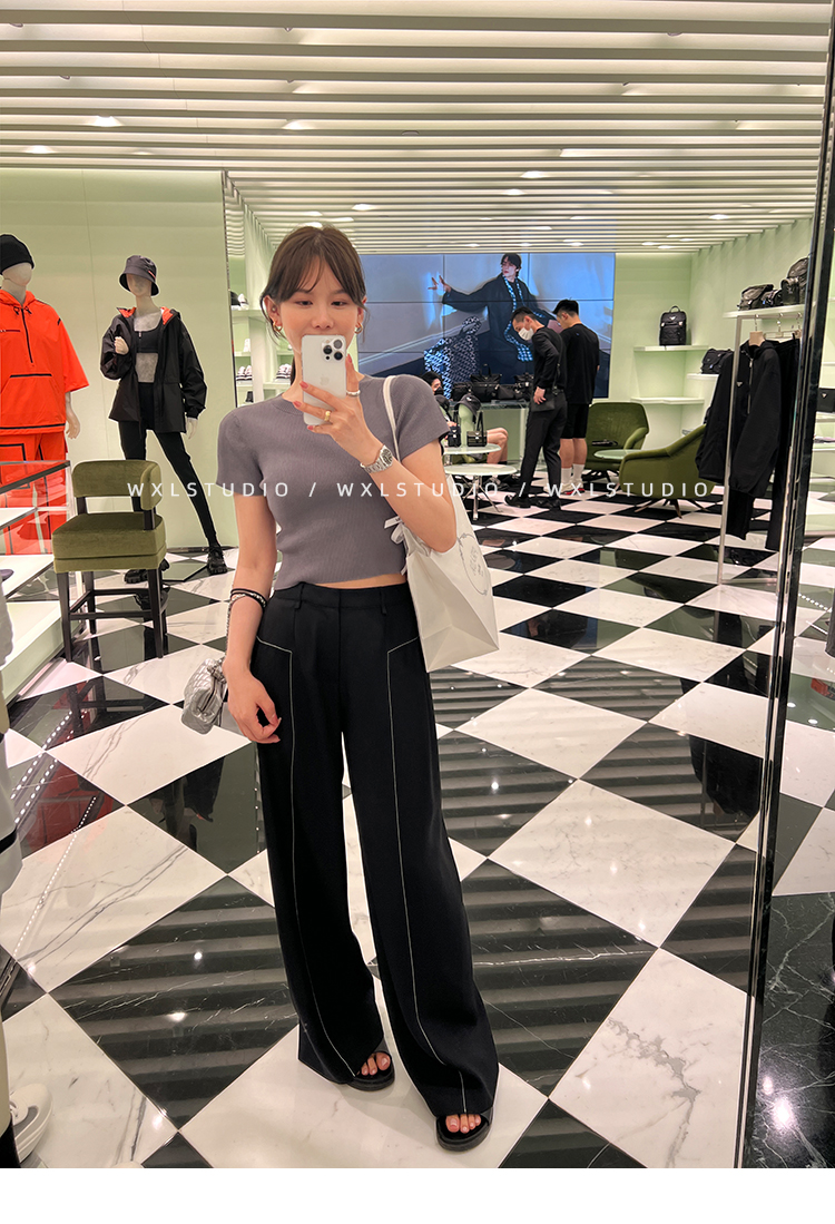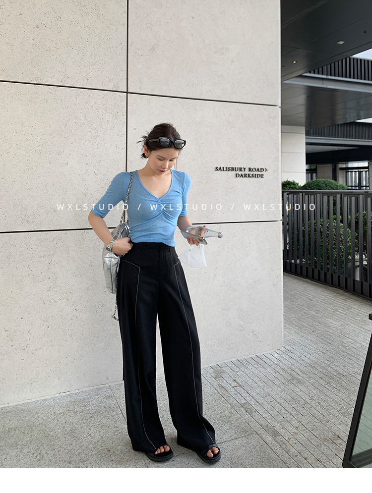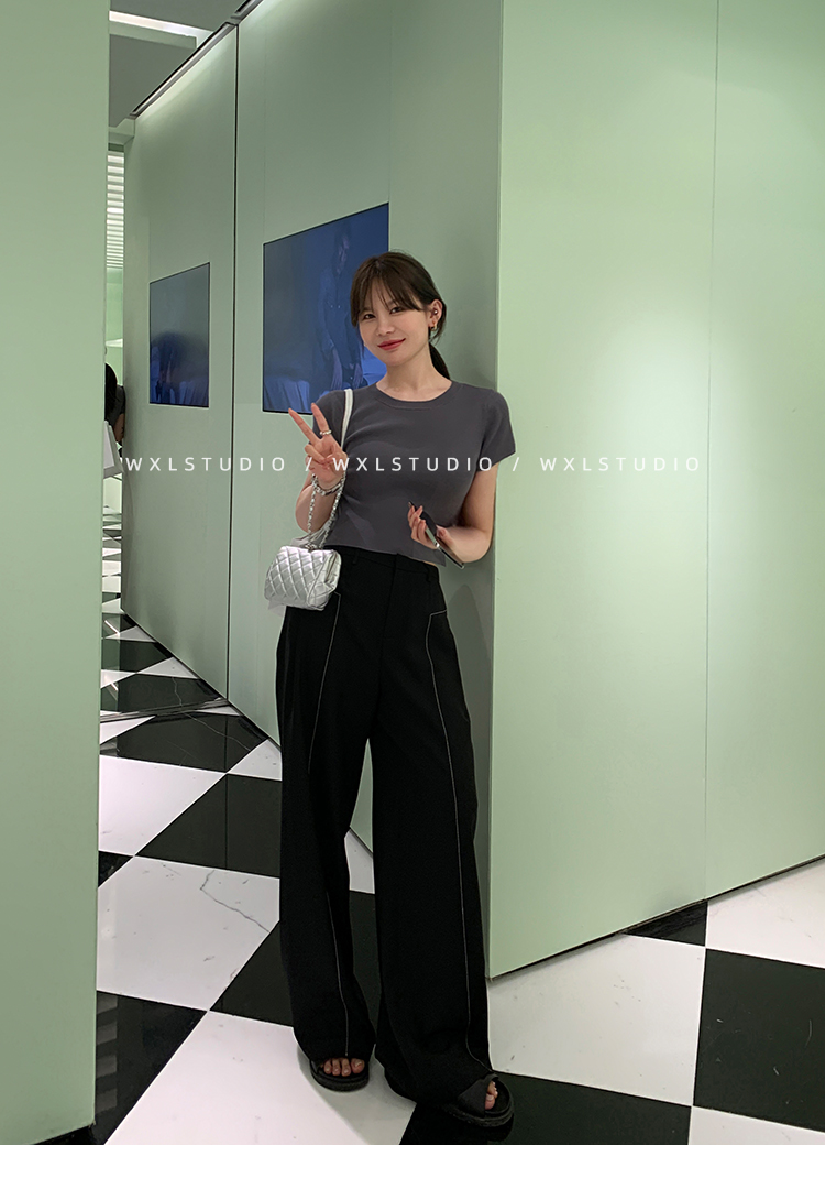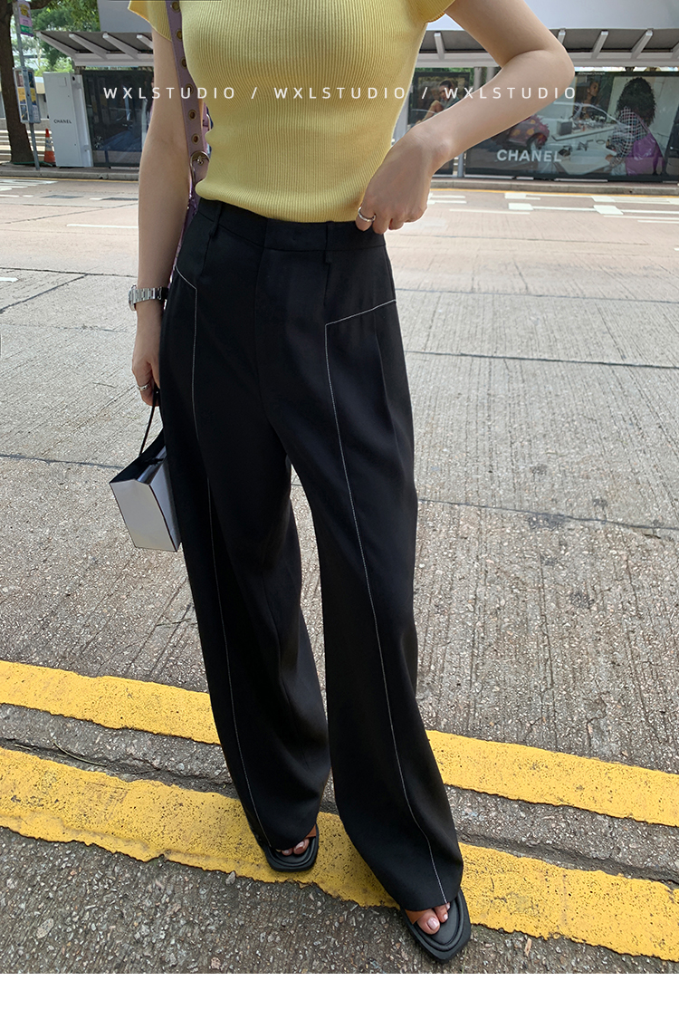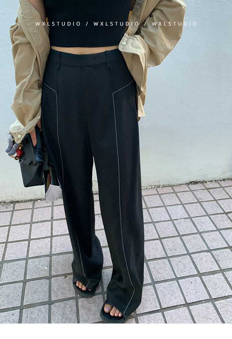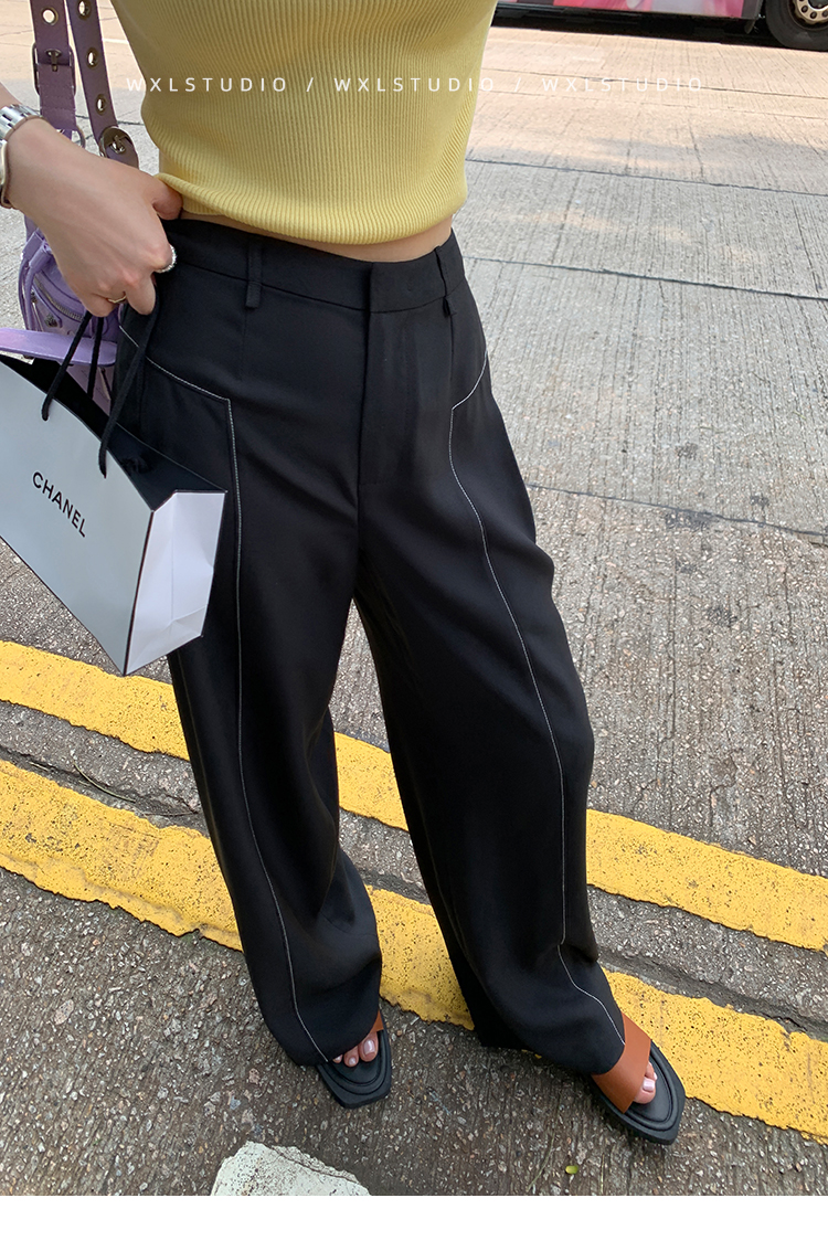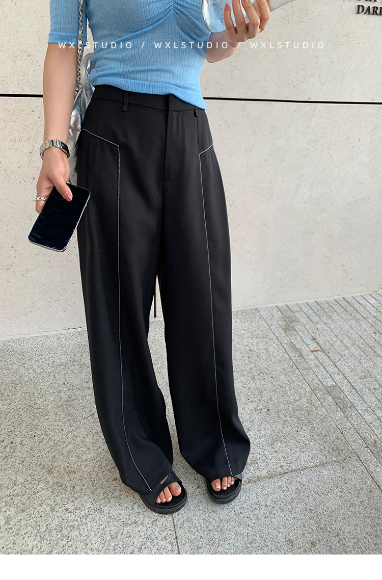 WXLSTUDIO實至名歸褲王 定位撞線工藝加寬休閒褲女夏季闊腿直筒褲