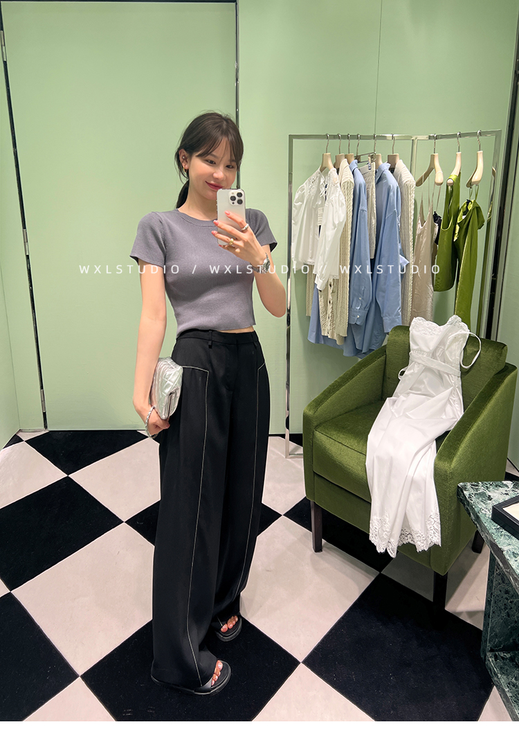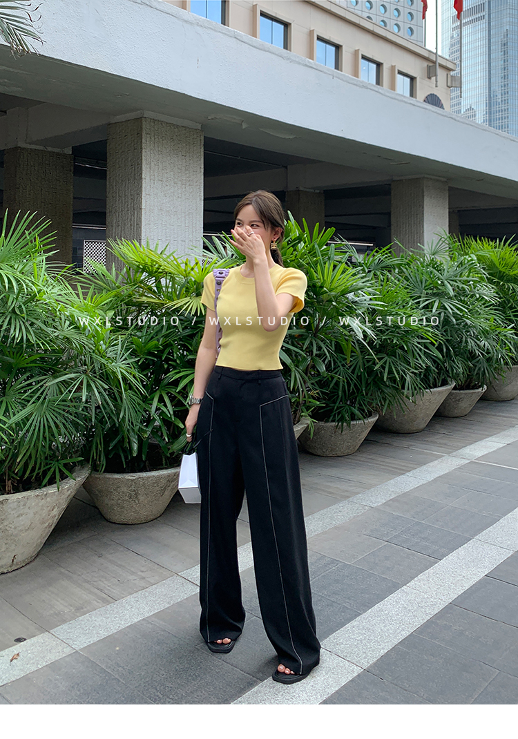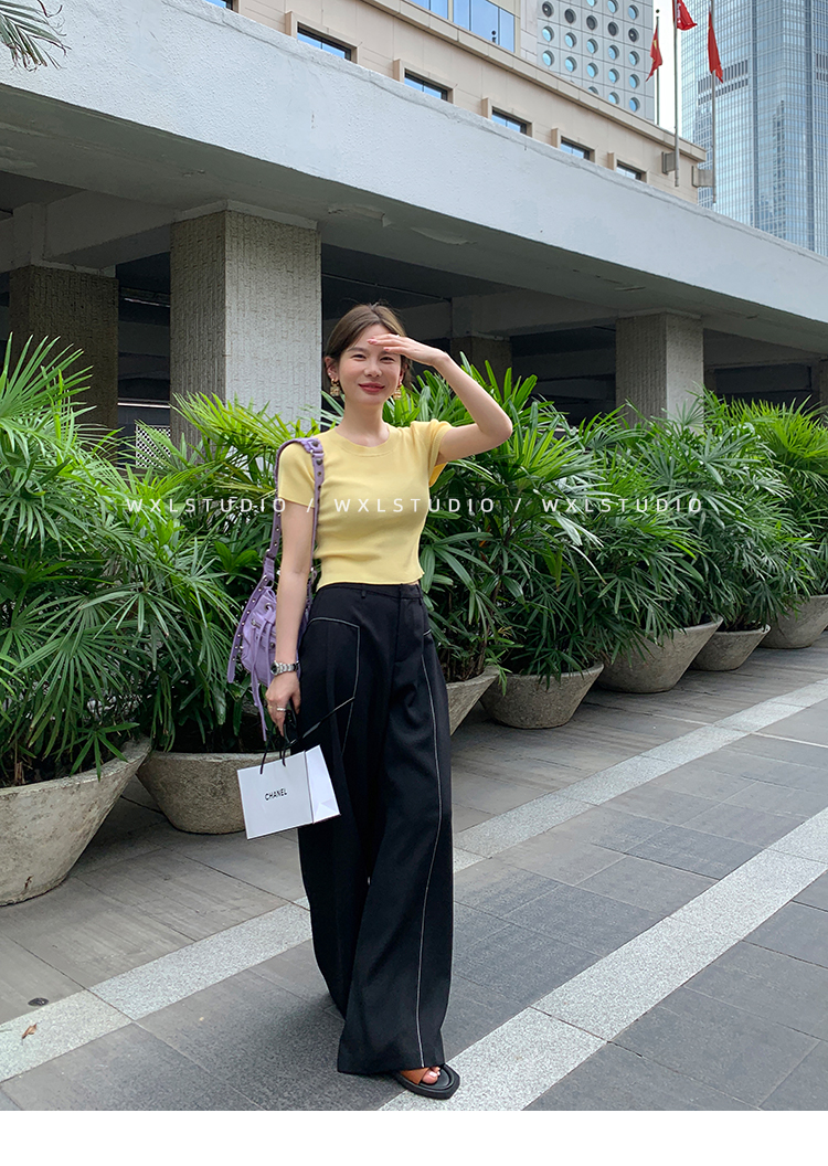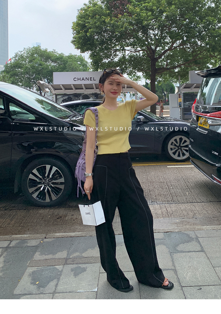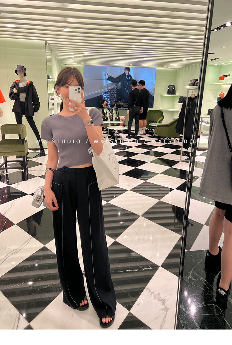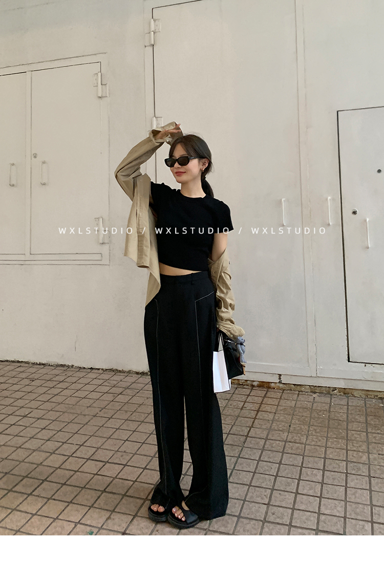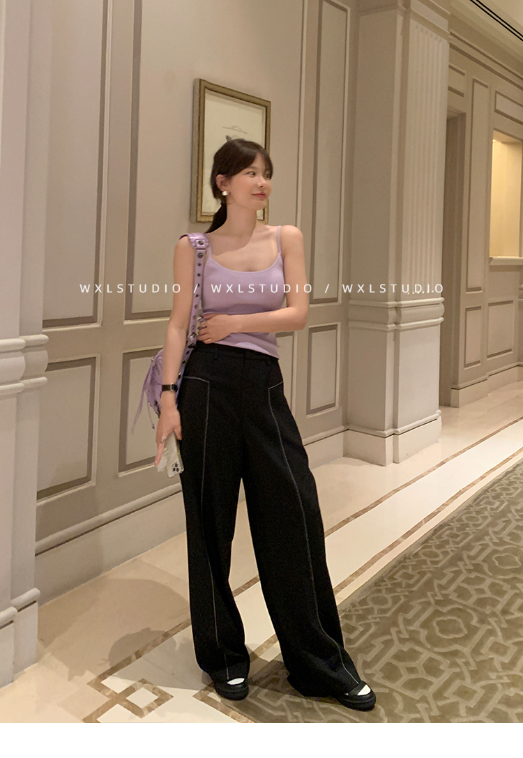 WXLSTUDIO實至名歸褲王 定位撞線工藝加寬休閒褲女夏季闊腿直筒褲