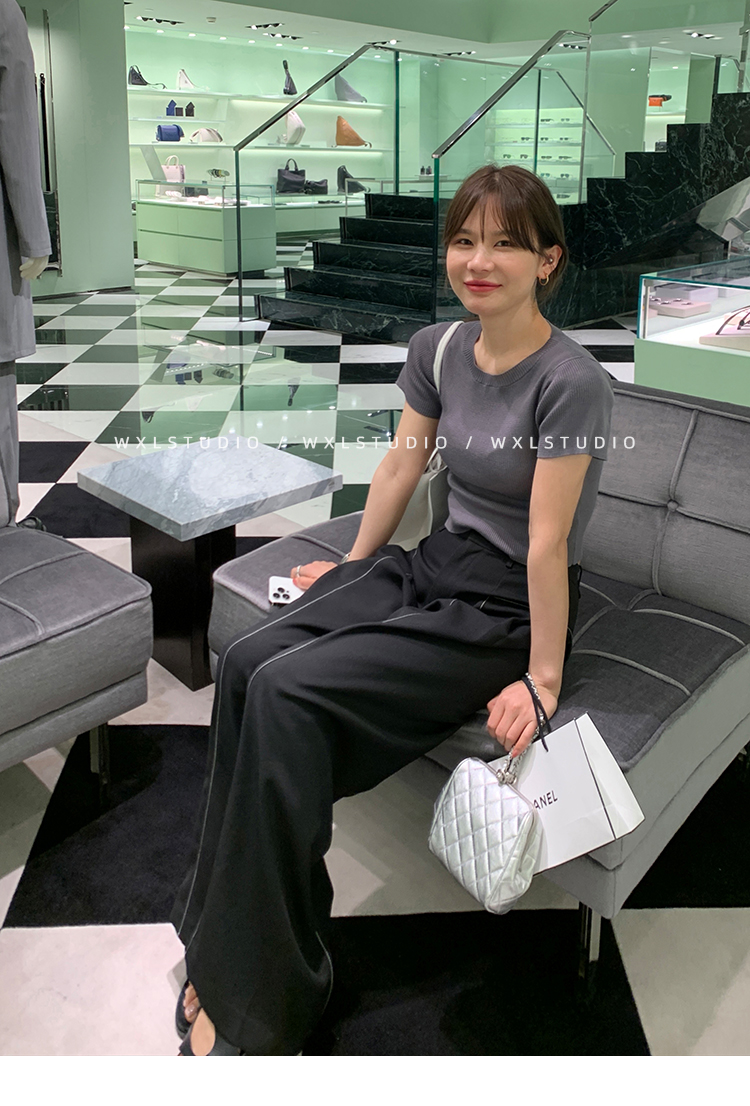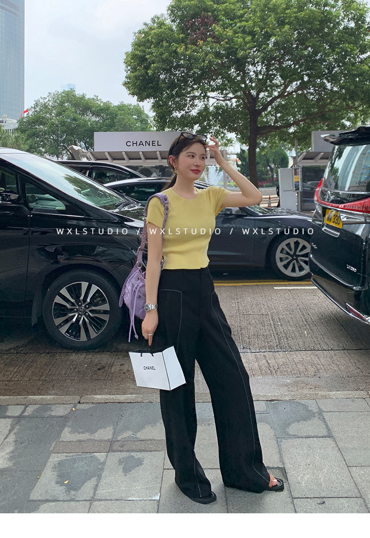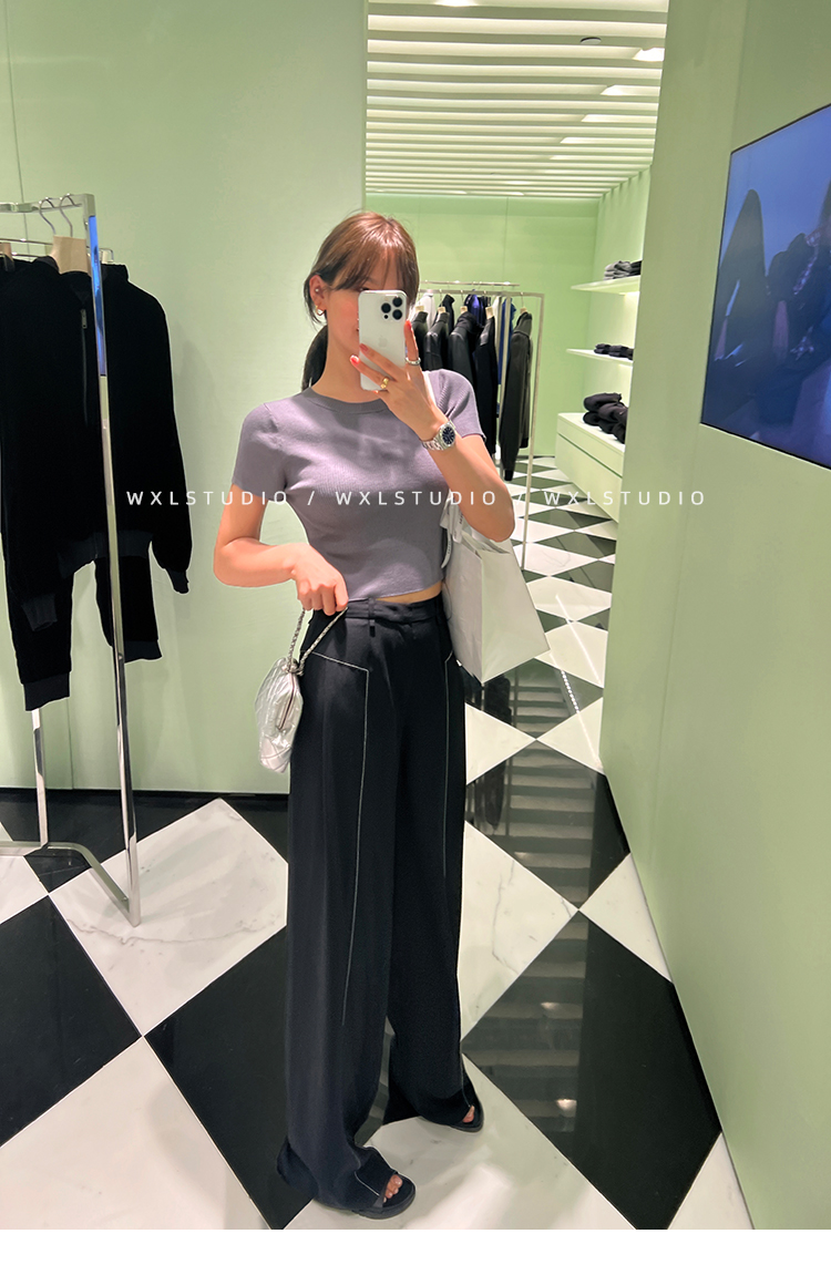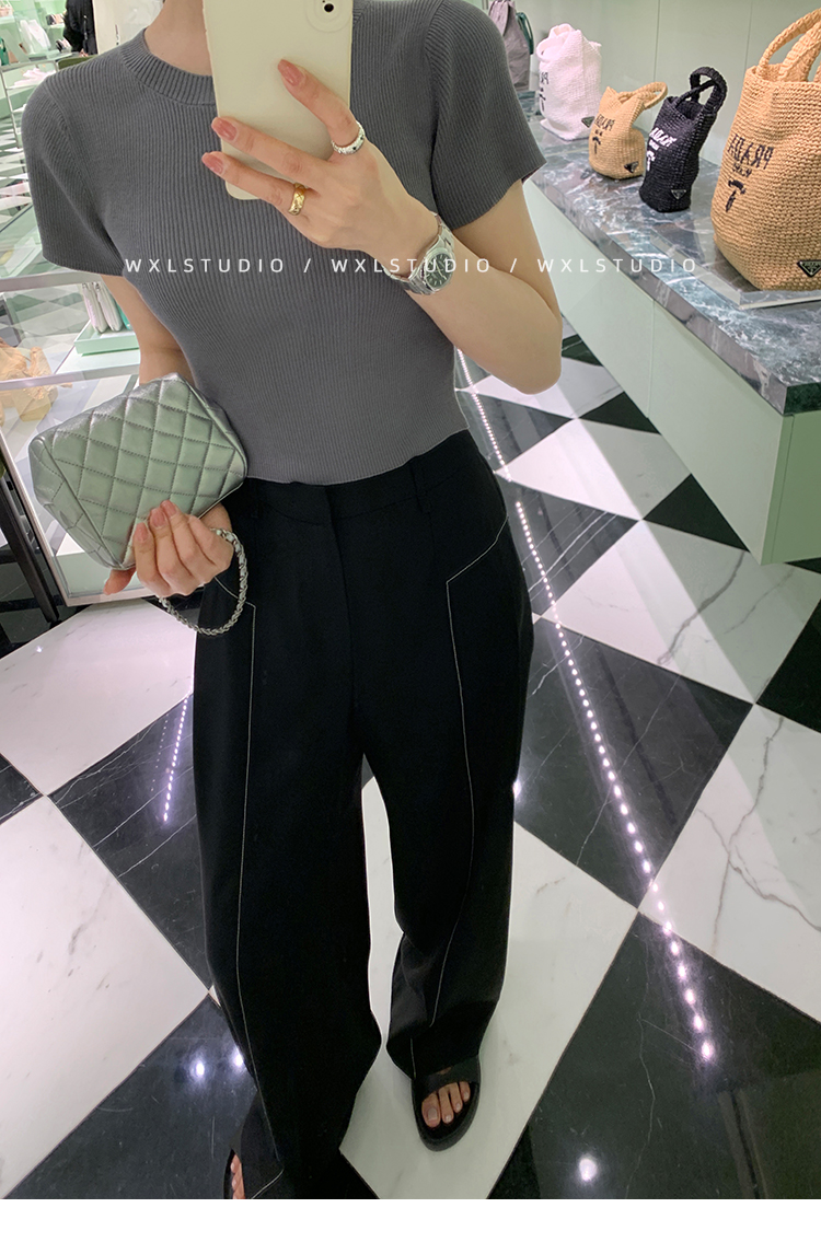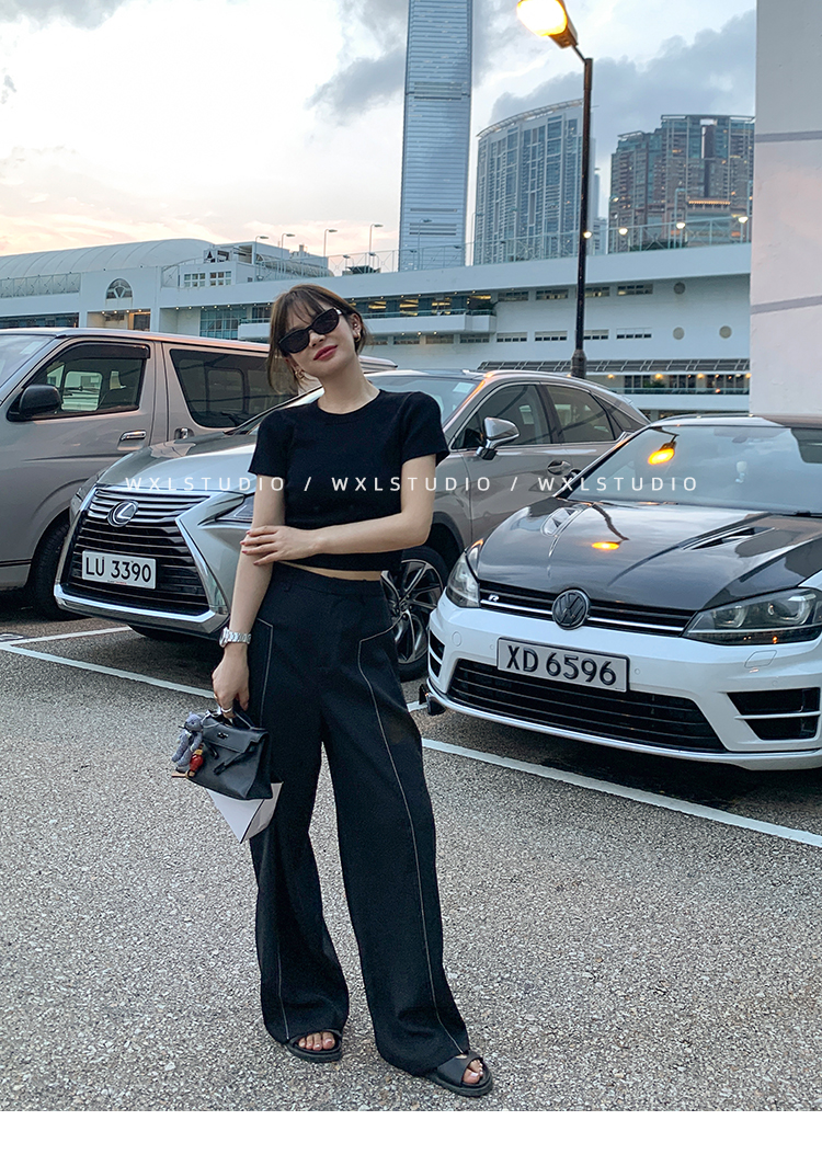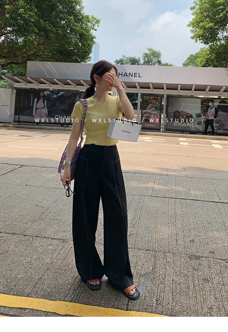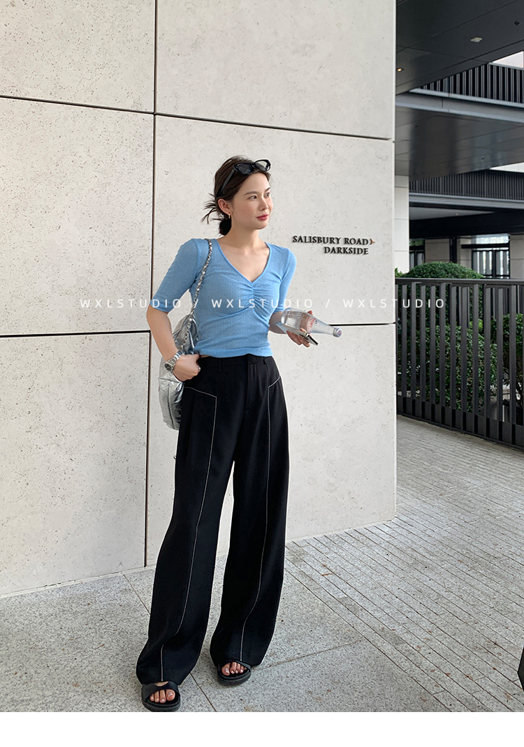 WXLSTUDIO實至名歸褲王 定位撞線工藝加寬休閒褲女夏季闊腿直筒褲