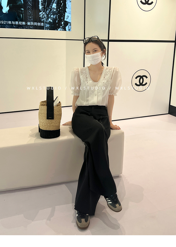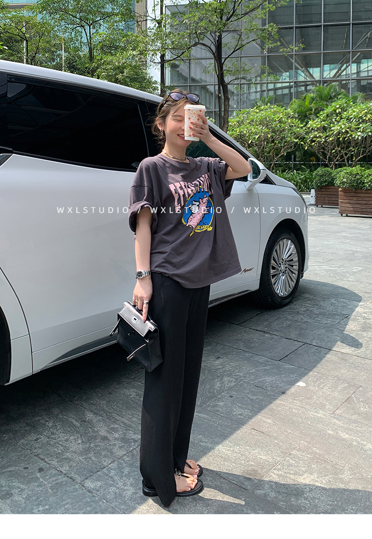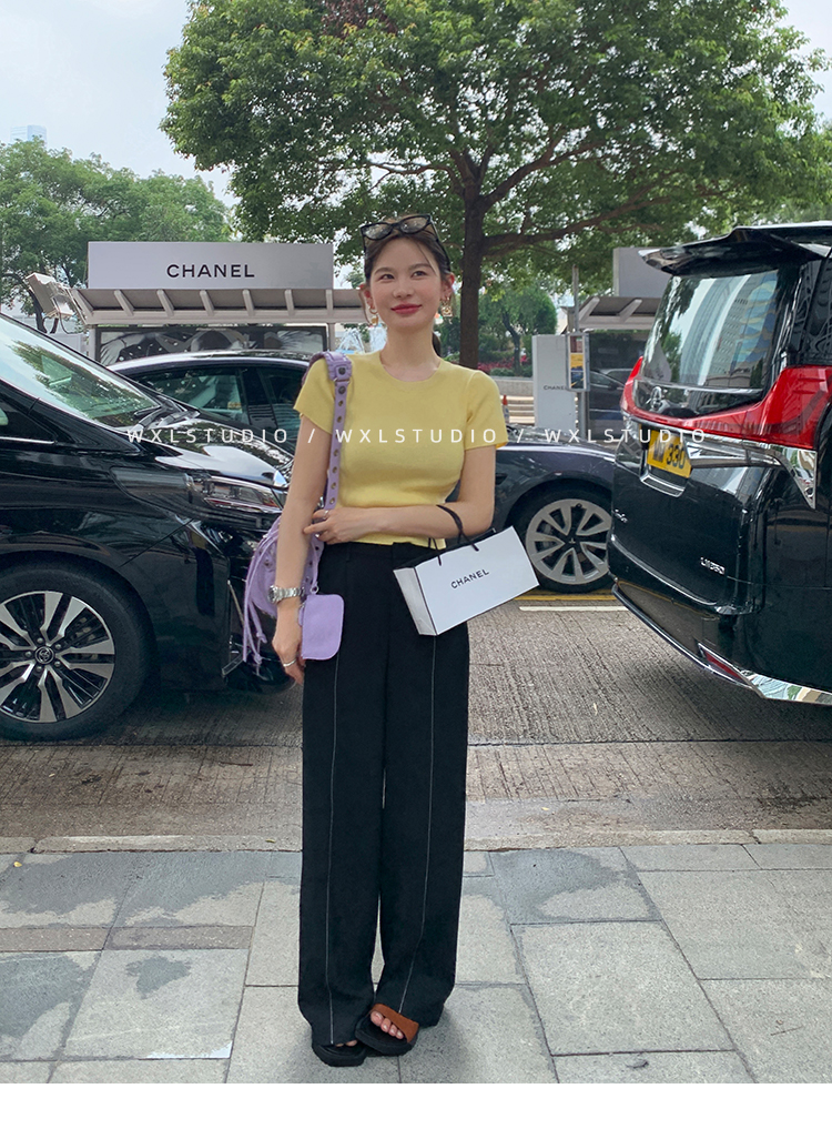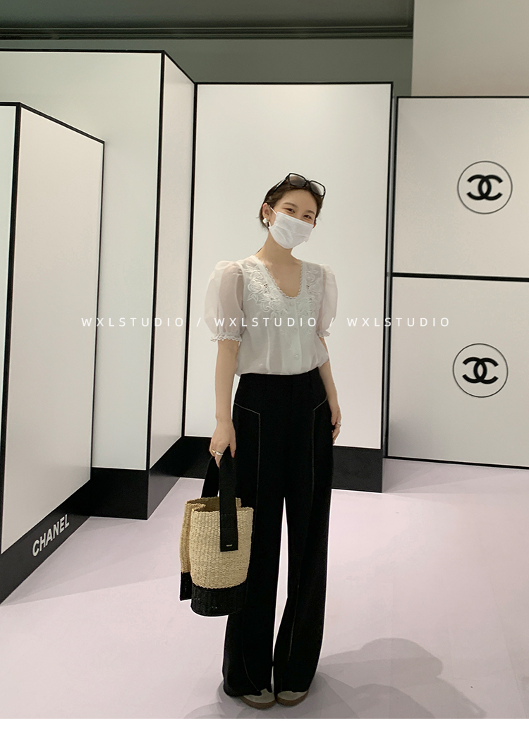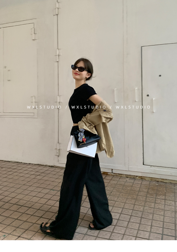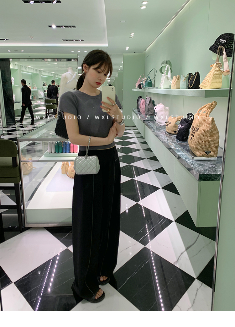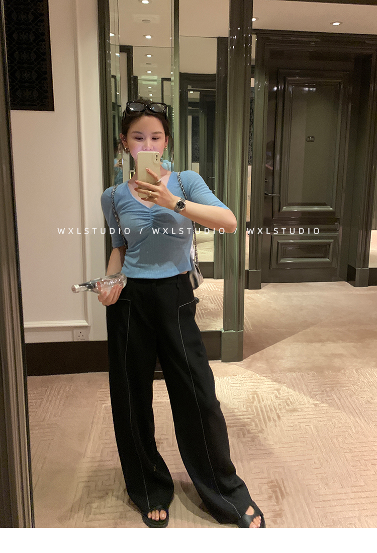 WXLSTUDIO實至名歸褲王 定位撞線工藝加寬休閒褲女夏季闊腿直筒褲