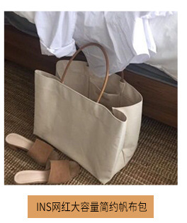 ins网红大容量收纳简约帆布包纯色手提包大号代购东大门女包批发