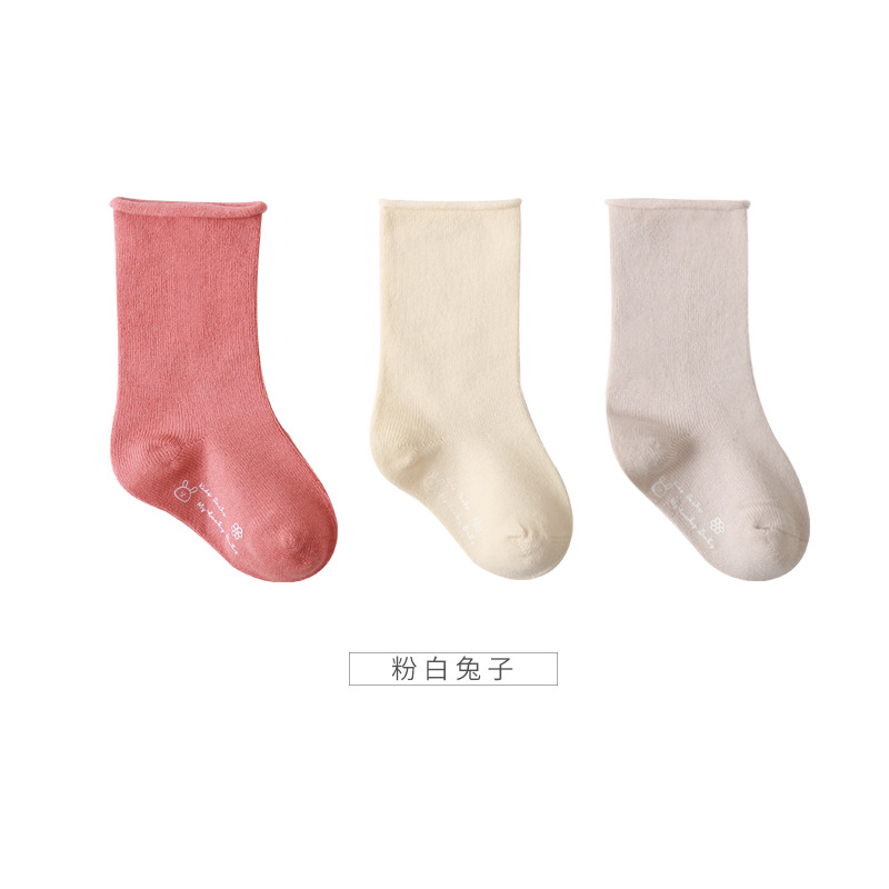 宝宝袜子秋冬松口不勒脚儿童袜子透气韩版无骨纯色新生婴儿中筒袜