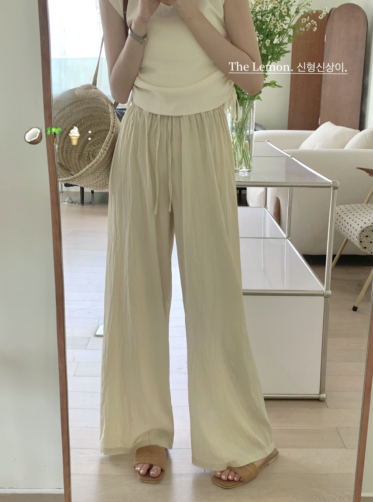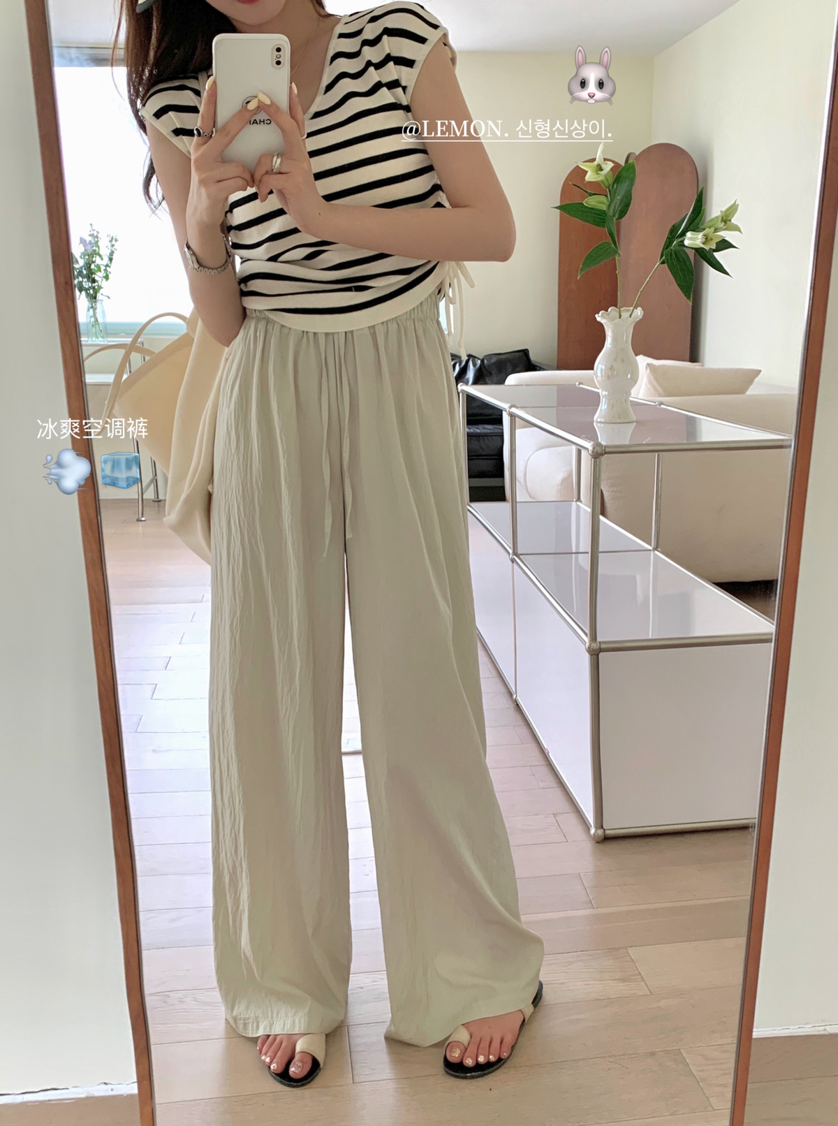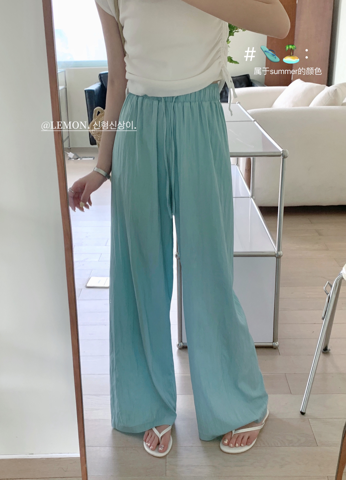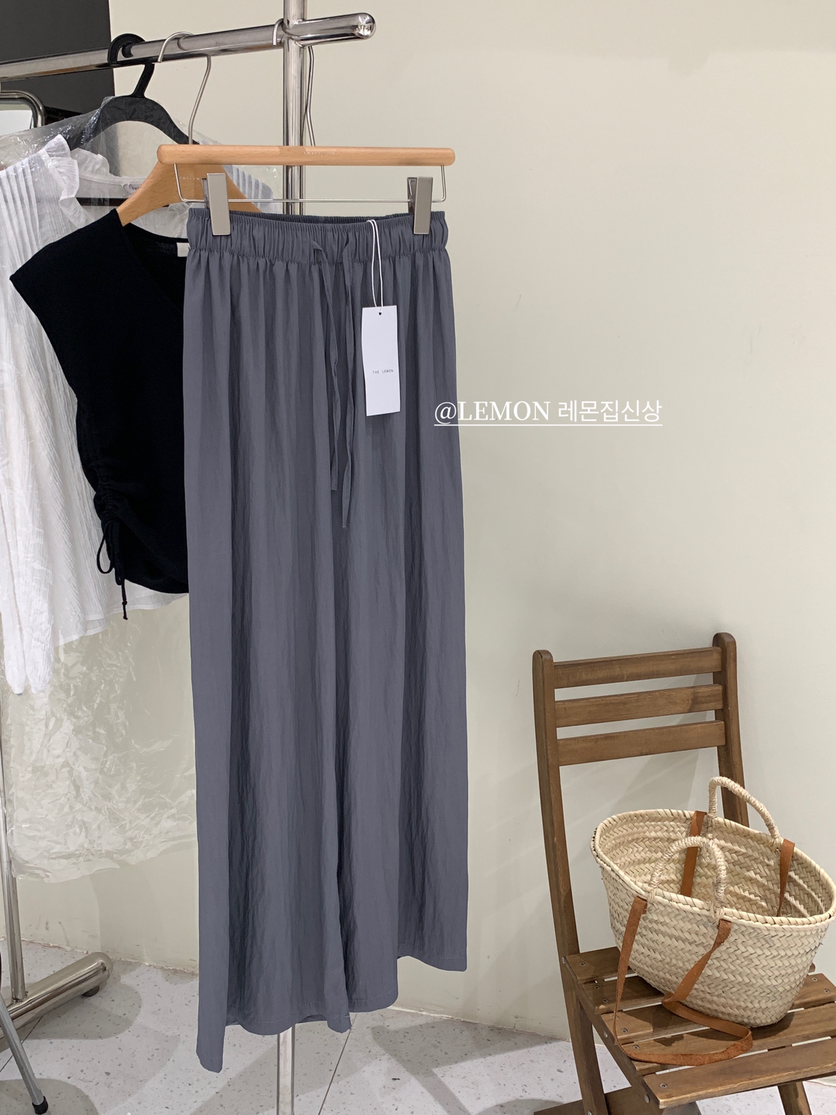 THE LEMON高腰抽繩休閒長褲直筒寬褲女2023夏季新款垂感拖地褲