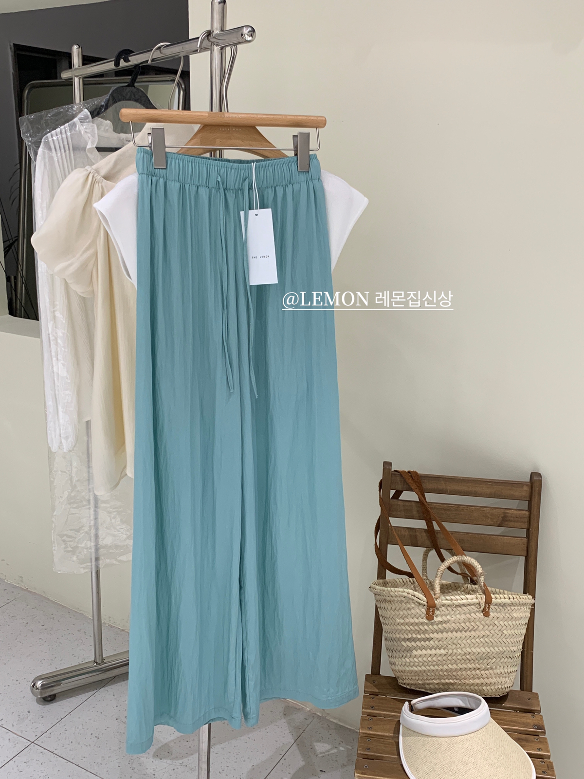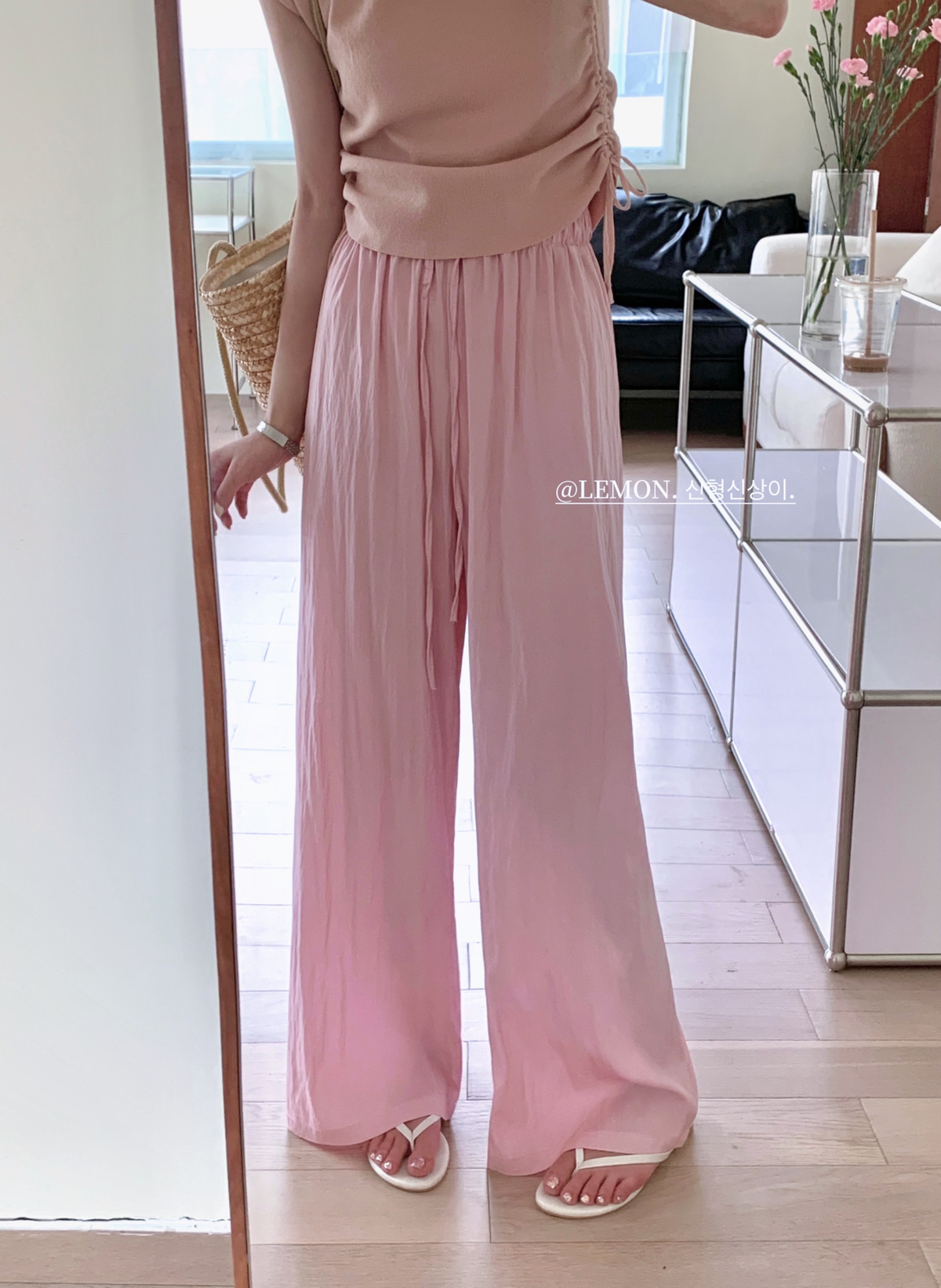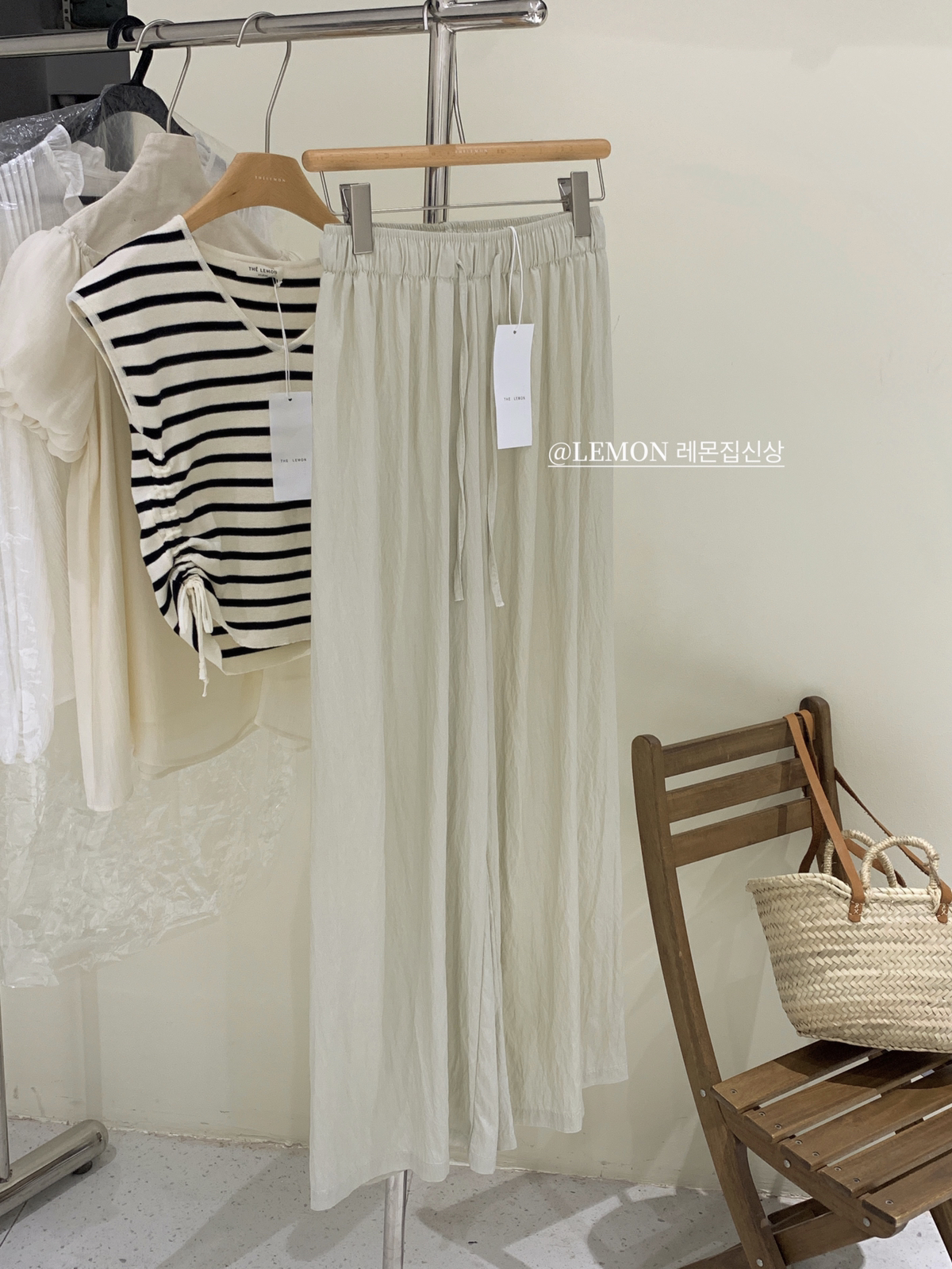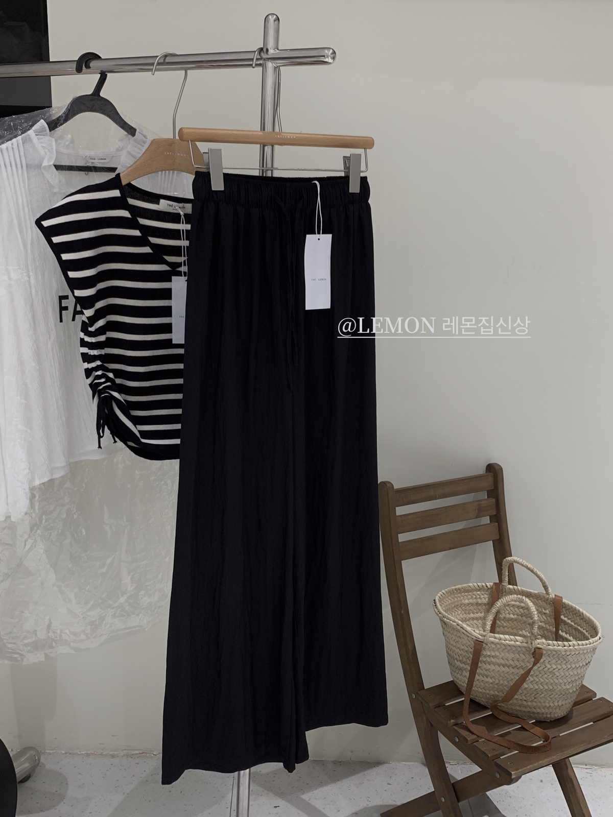 THE LEMON高腰抽繩休閒長褲直筒寬褲女2023夏季新款垂感拖地褲