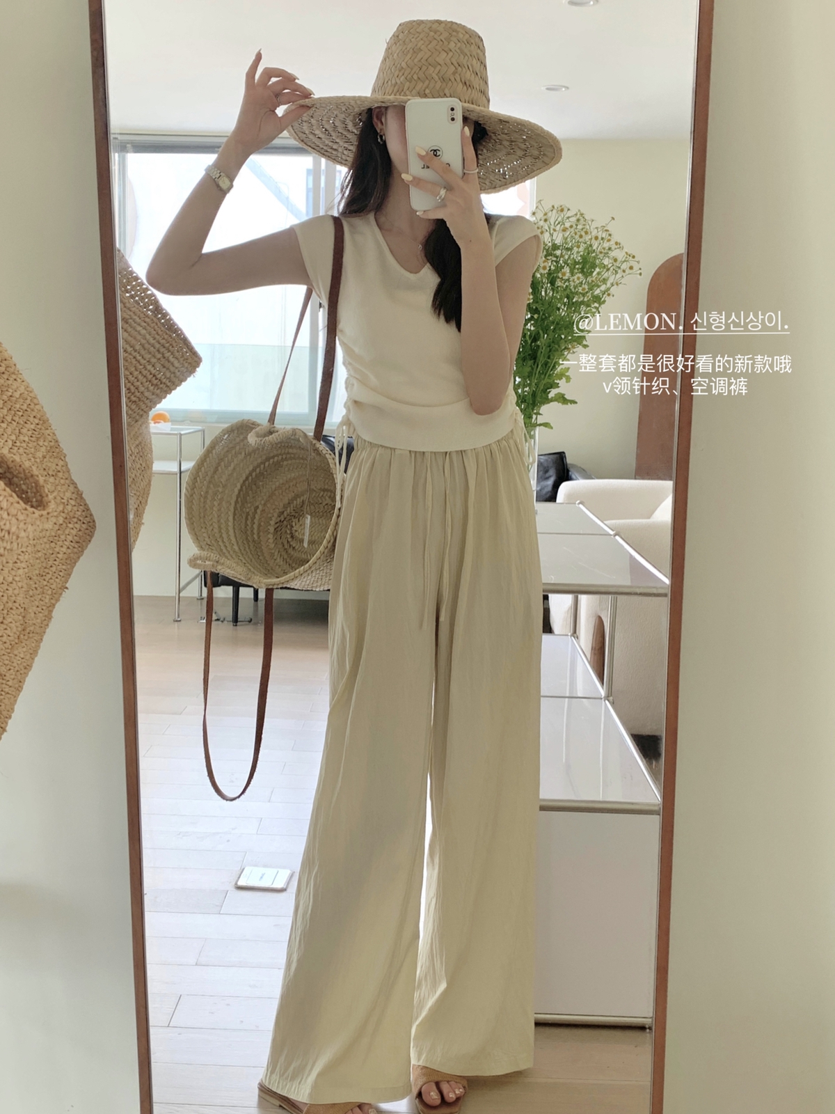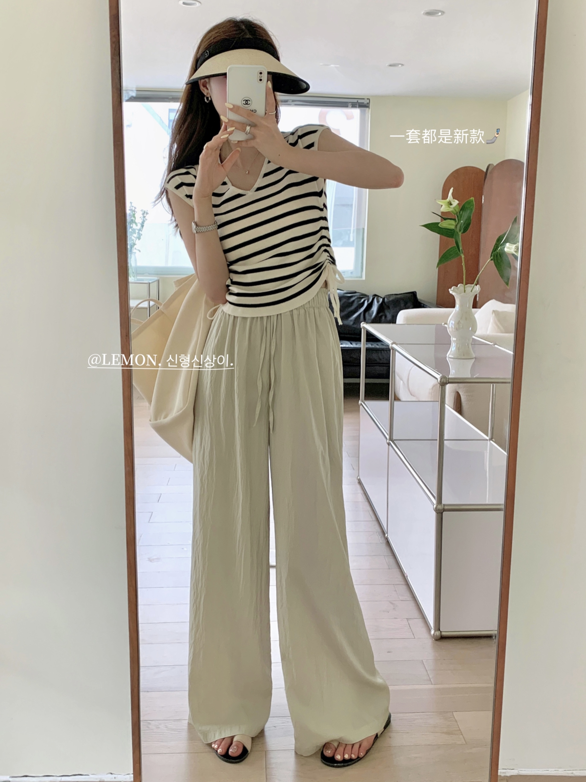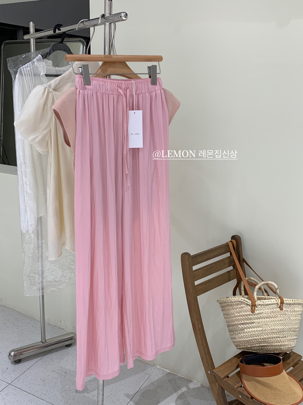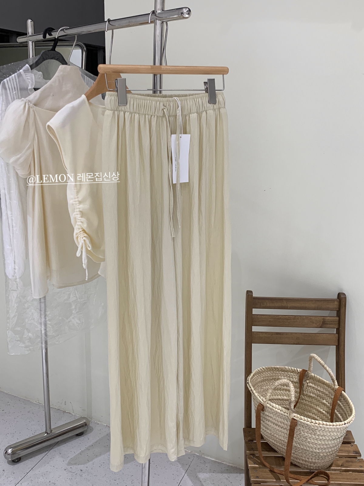 THE LEMON高腰抽繩休閒長褲直筒寬褲女2023夏季新款垂感拖地褲