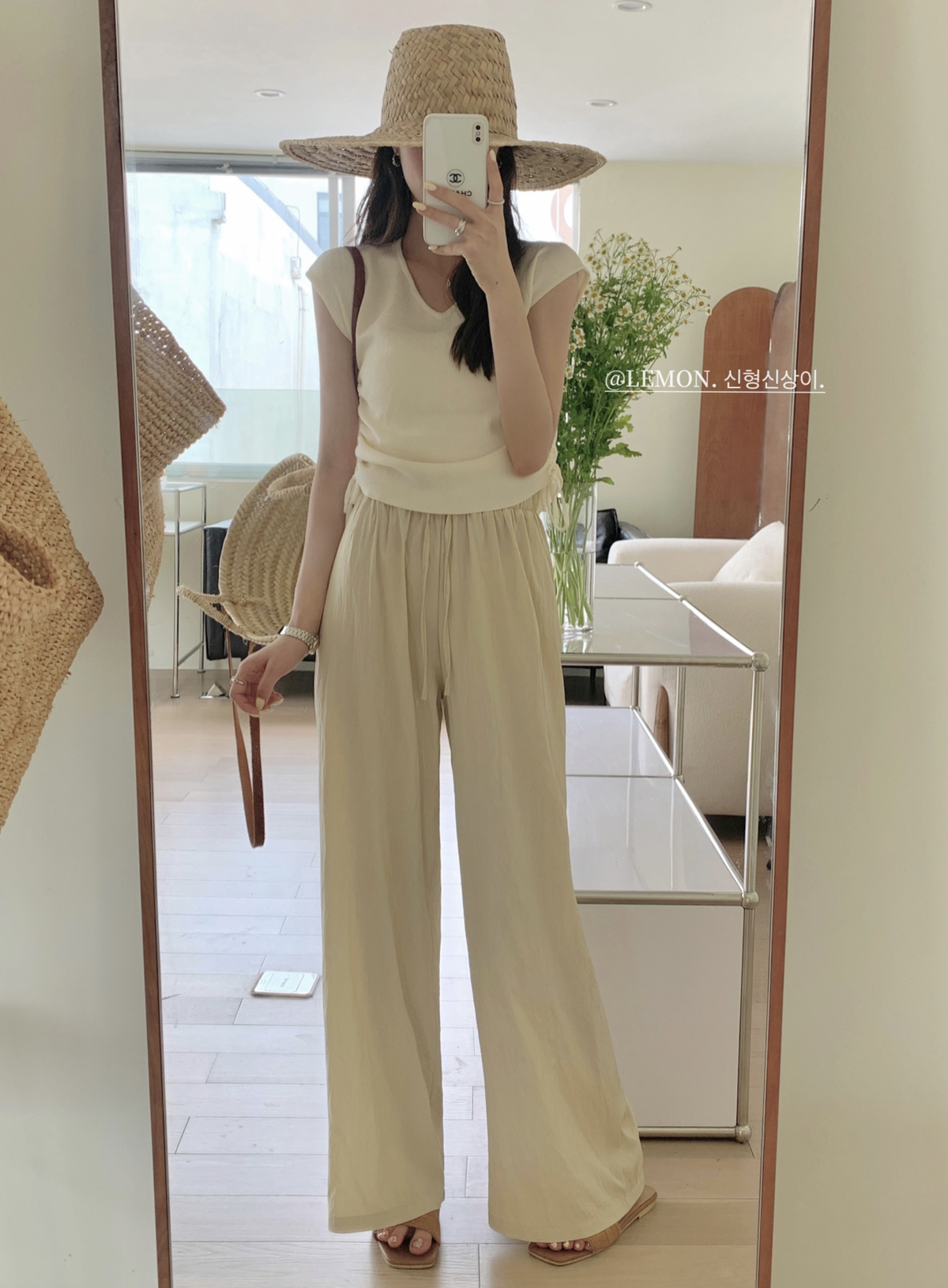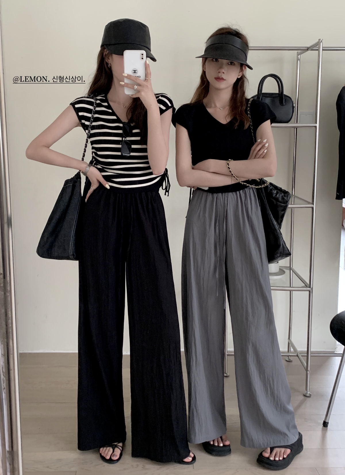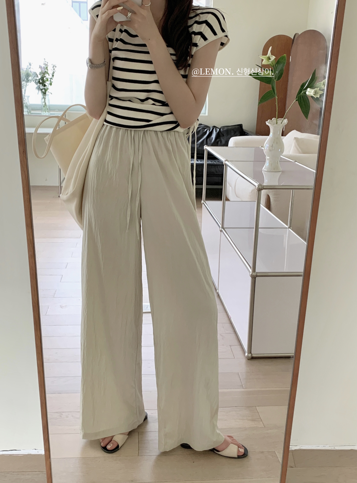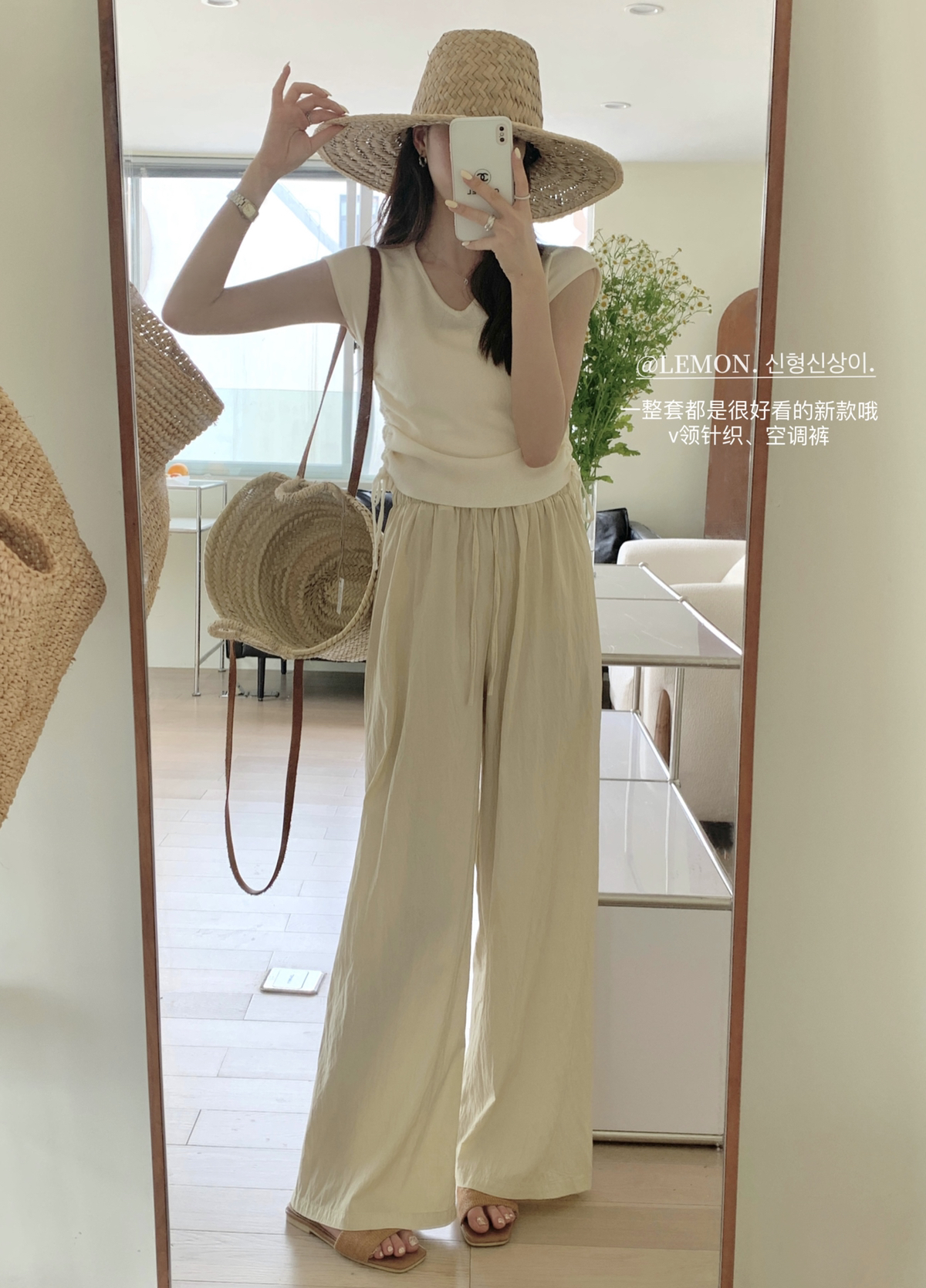 THE LEMON高腰抽繩休閒長褲直筒寬褲女2023夏季新款垂感拖地褲