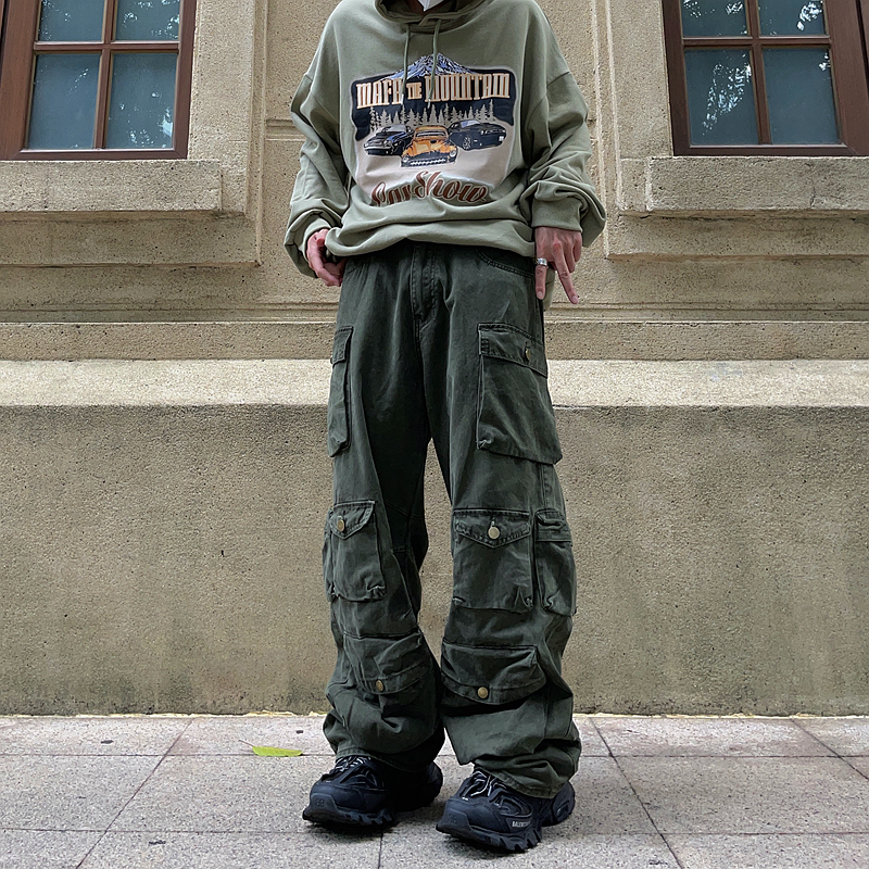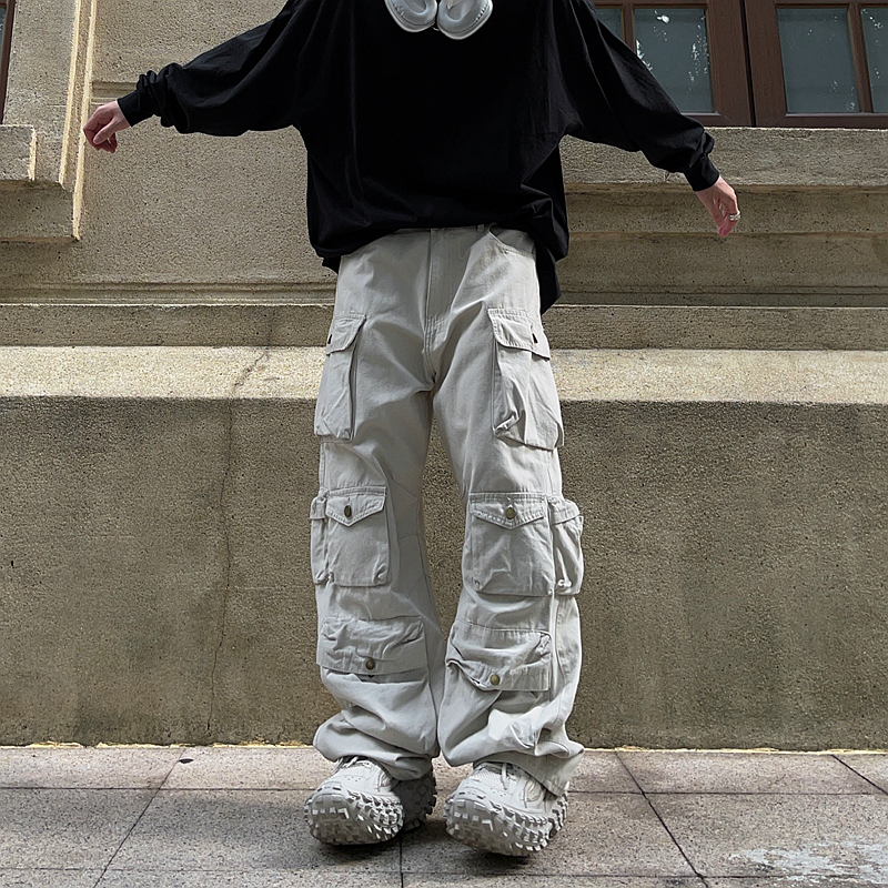 FATEEGG歐美式復古潮牌休閒長褲肥大寬鬆直筒闊腿多口袋工裝褲男