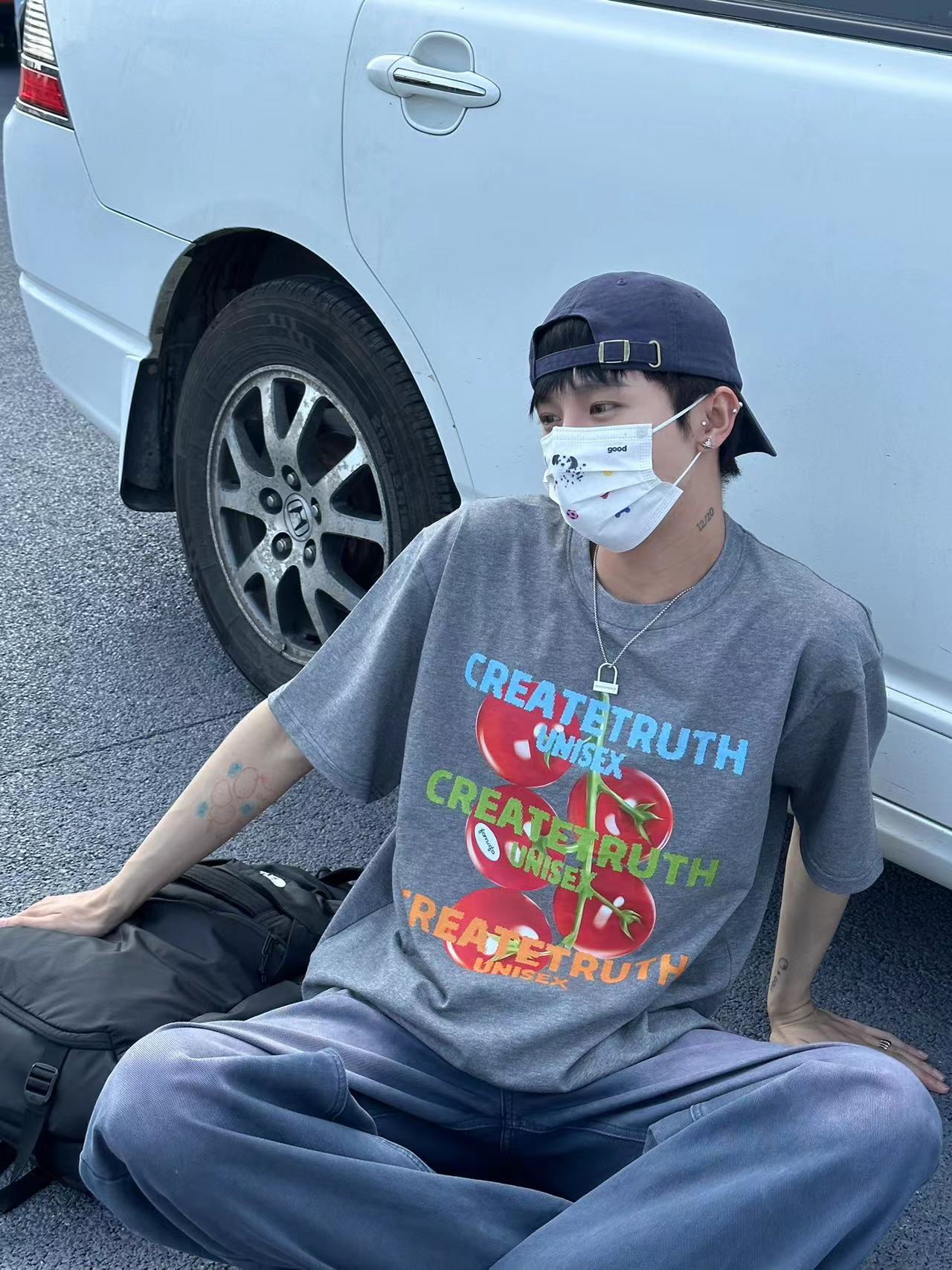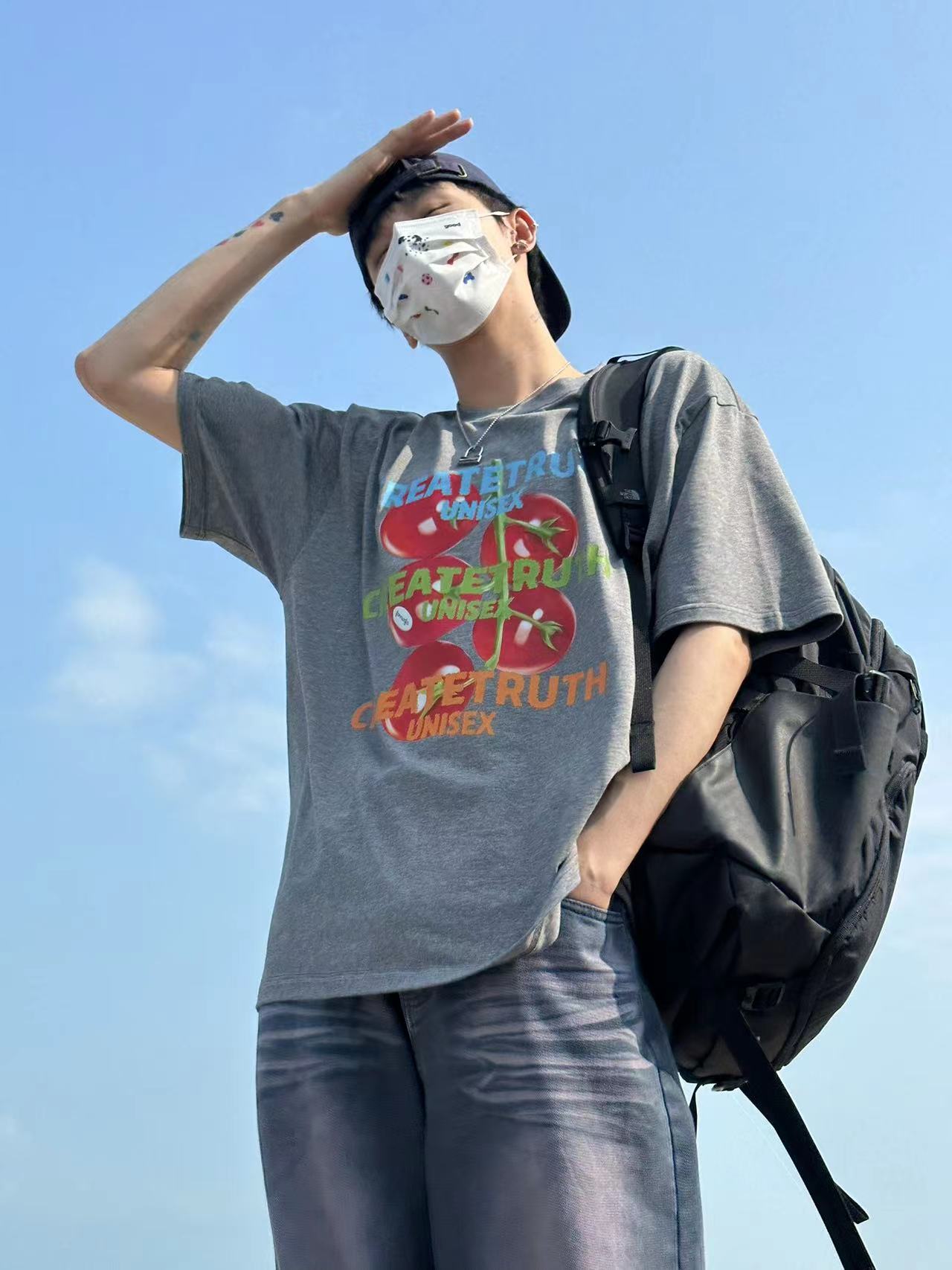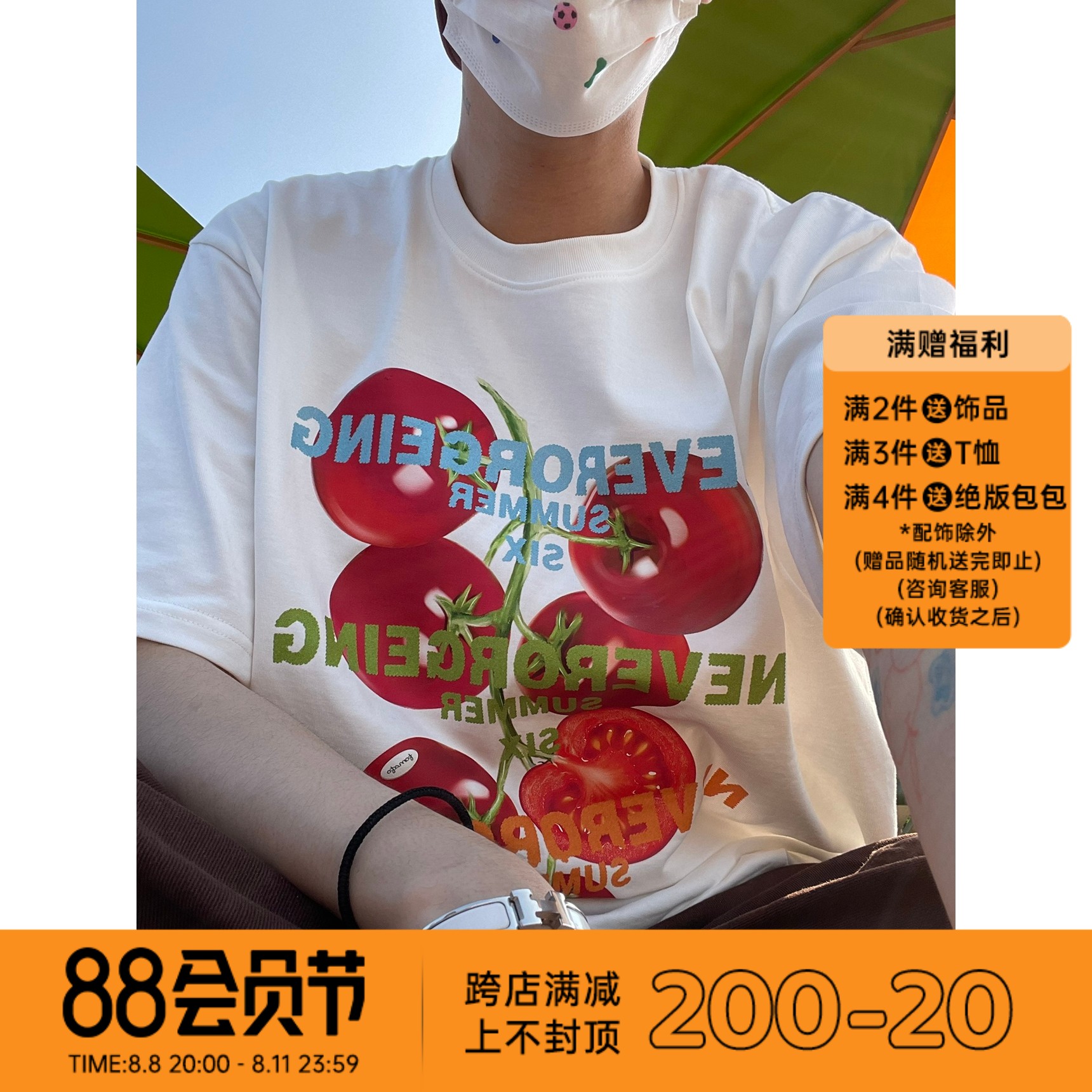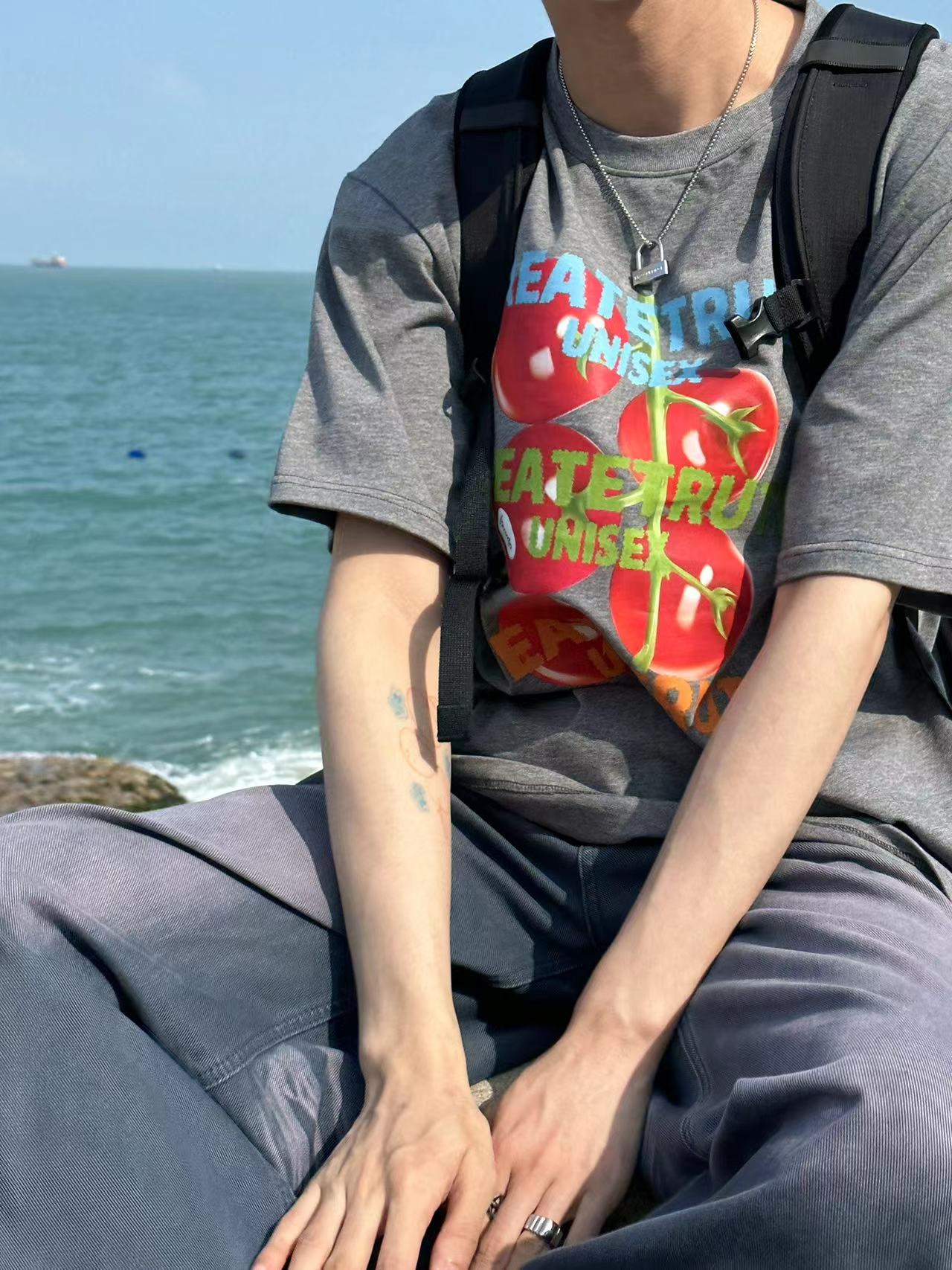 ORGEING 原創主推番茄水果印花T恤五分半袖休閒流行寬鬆圓領短袖