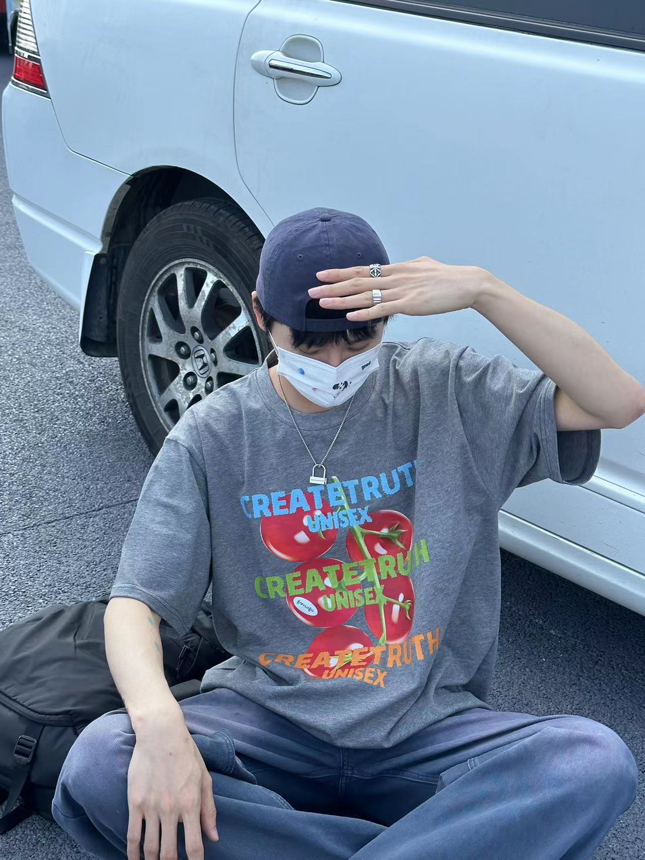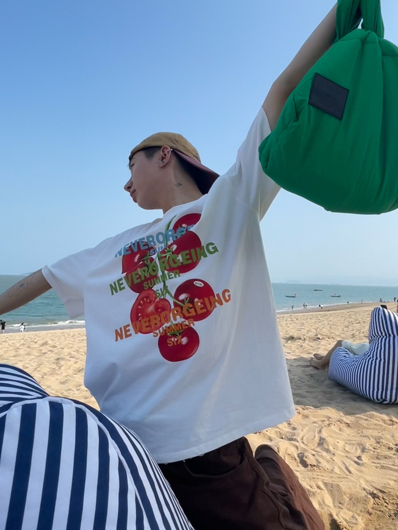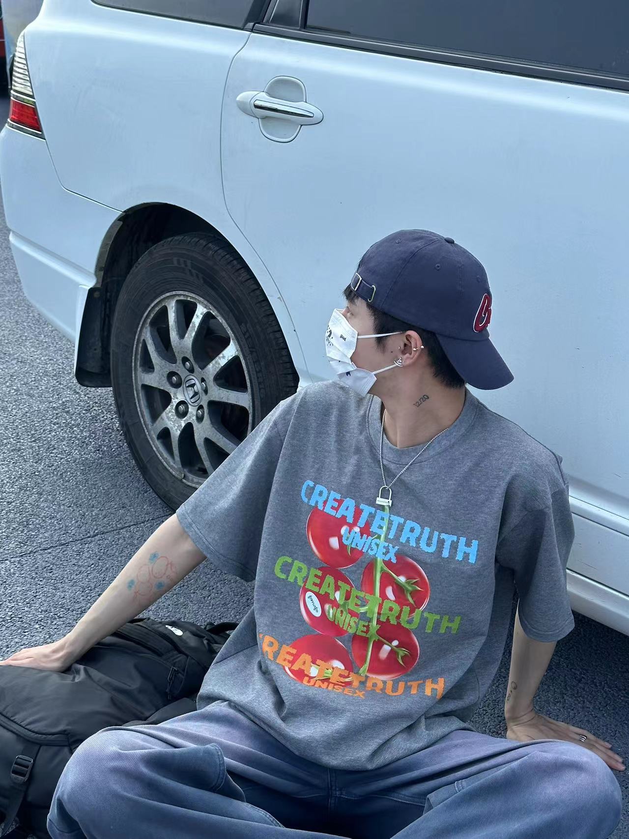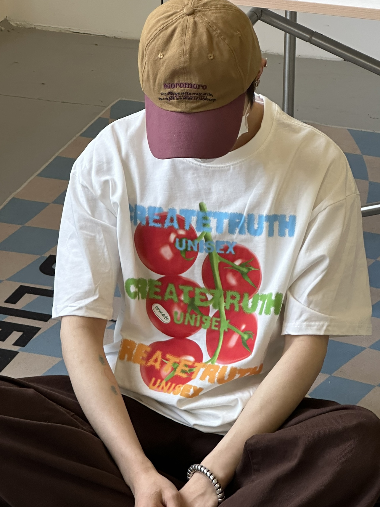 ORGEING 原創主推番茄水果印花T恤五分半袖休閒流行寬鬆圓領短袖