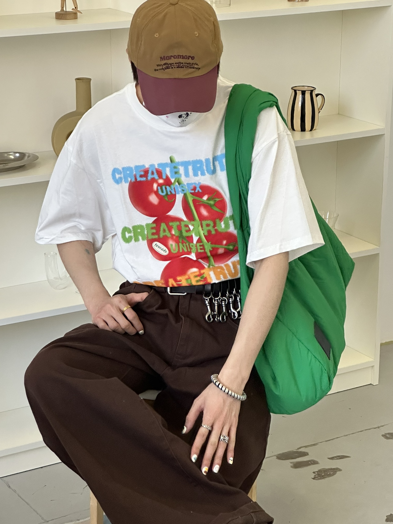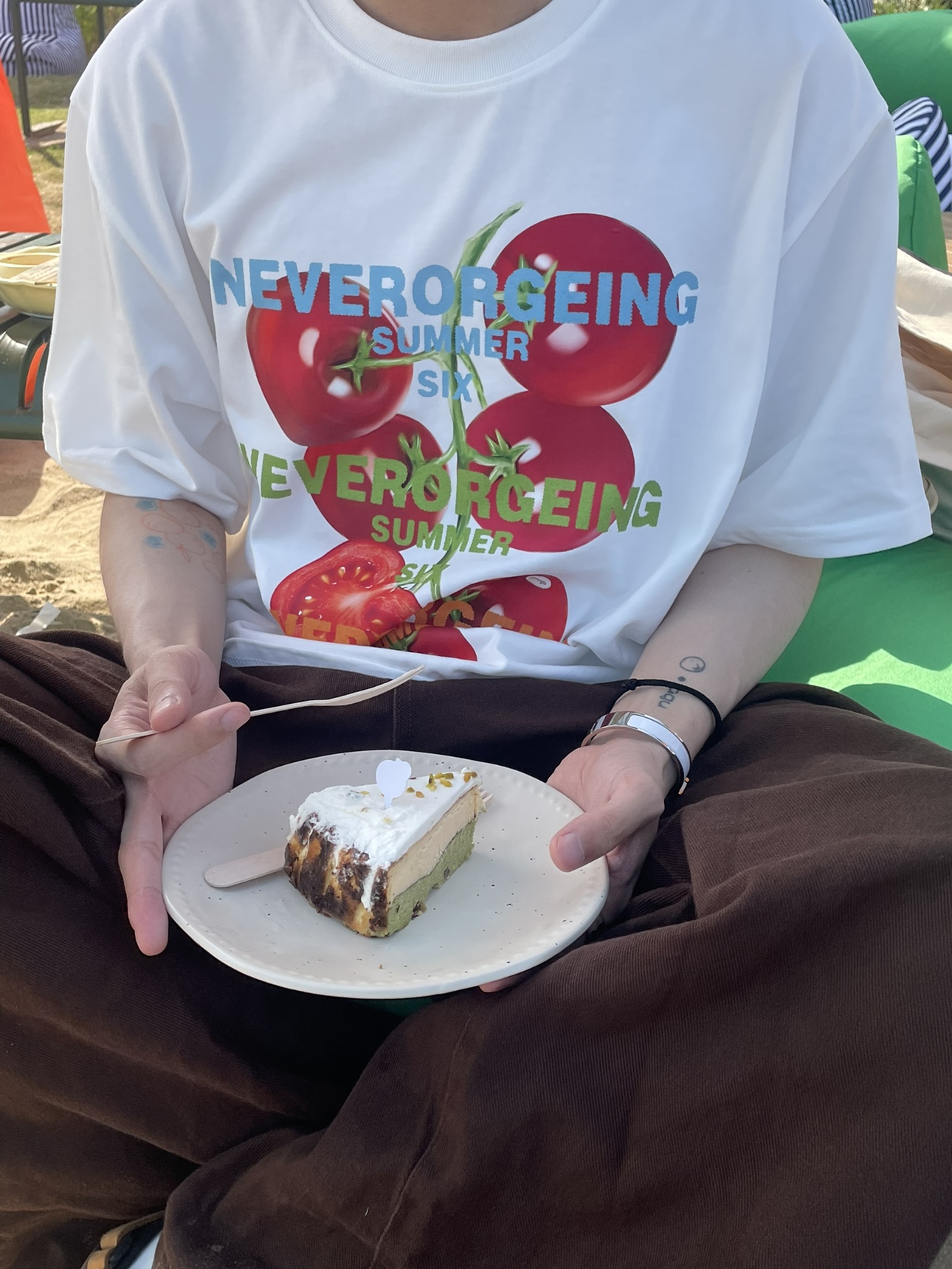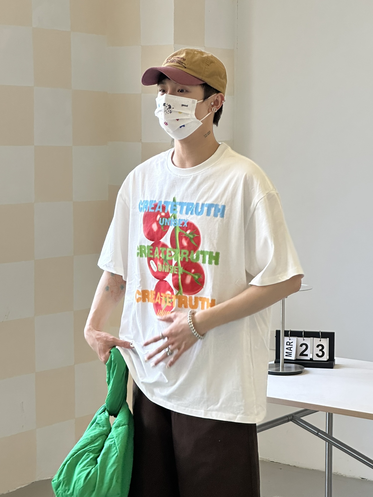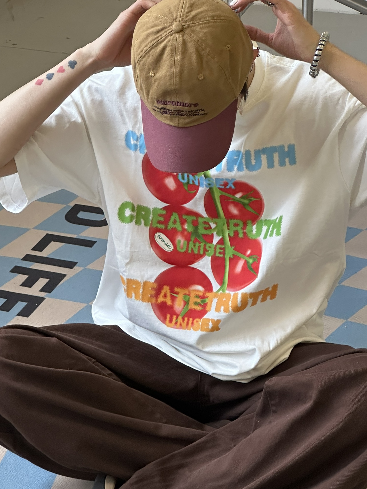 ORGEING 原創主推番茄水果印花T恤五分半袖休閒流行寬鬆圓領短袖