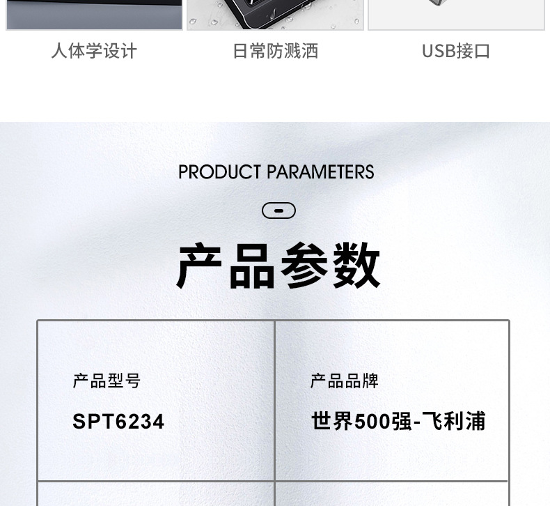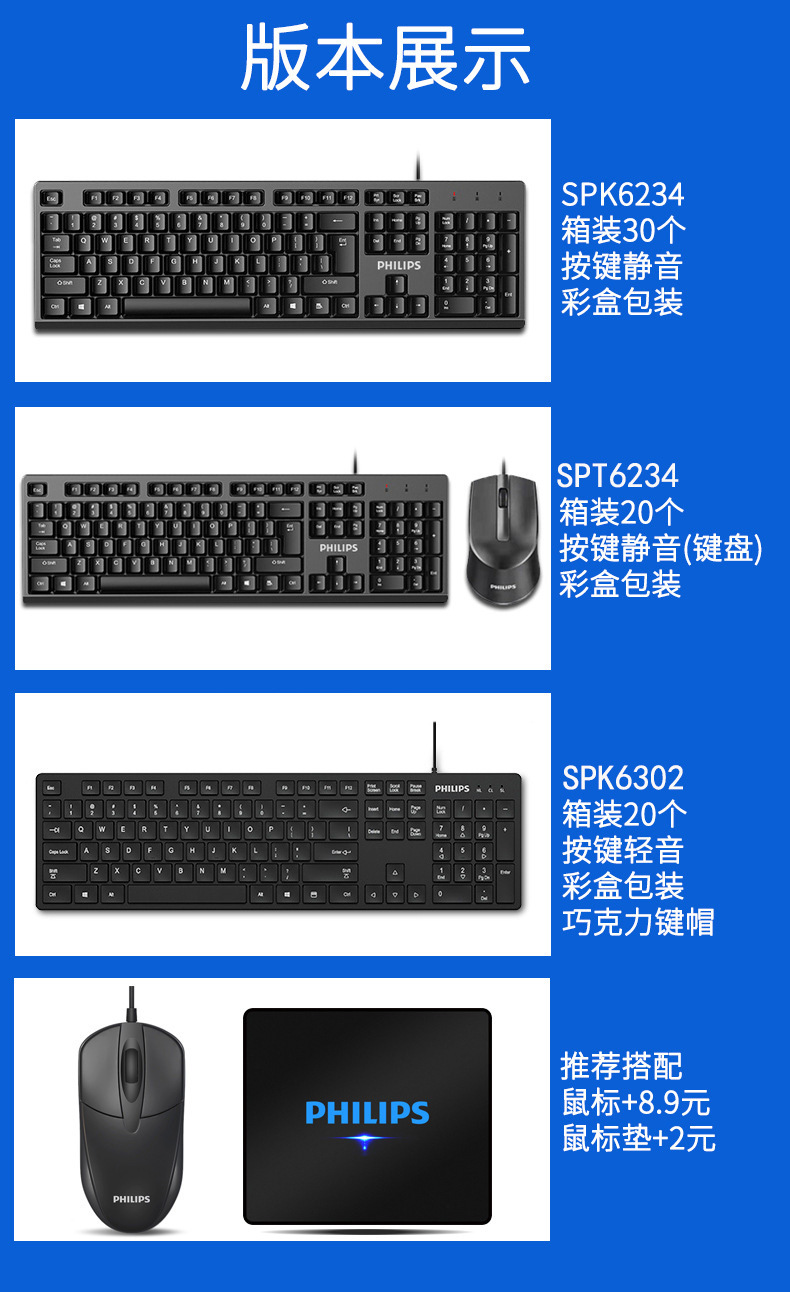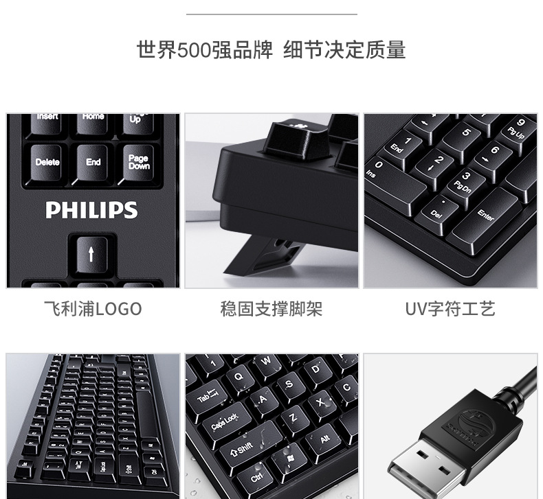 Philips/飞利浦SPT6234有线键盘鼠标套装电脑一套USB办公家用批发