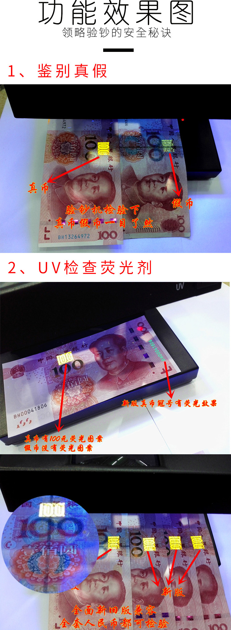 行鑫验钞机小型荧光灯验钞仪 新型UV紫光MG磁性水印检测 生产批发