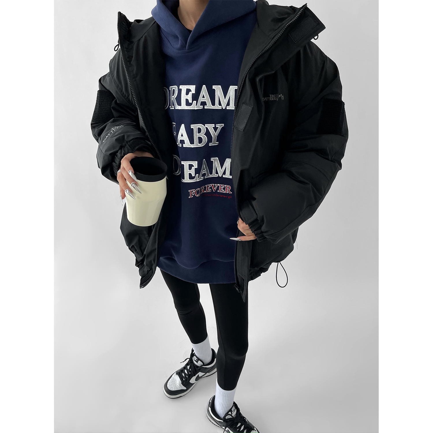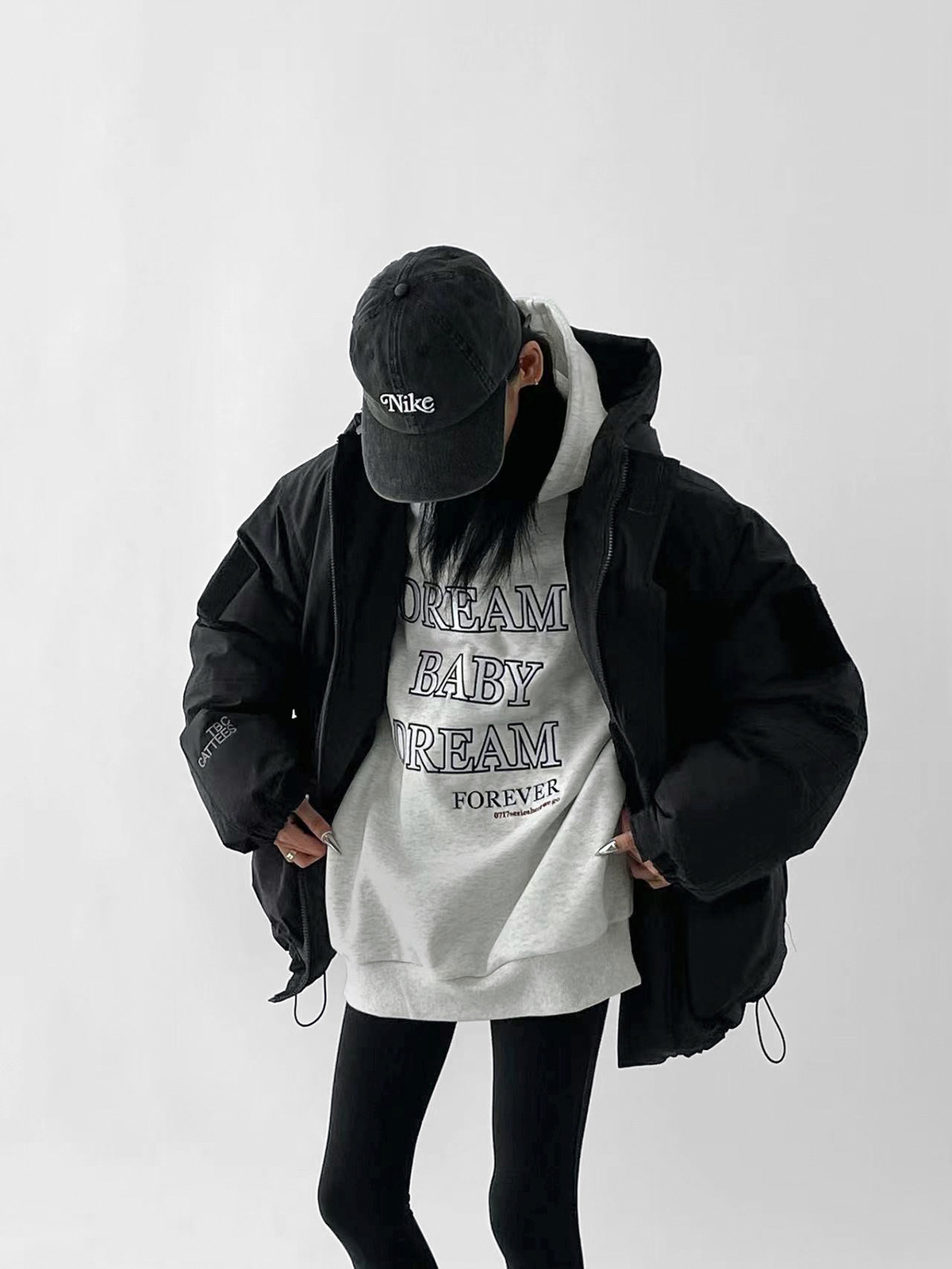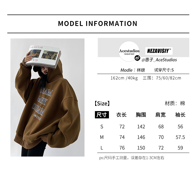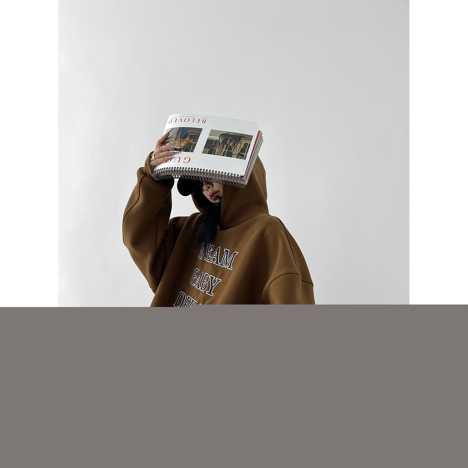 Acestudios 三色字母連帽運動衫女加厚2022秋冬新款寬鬆圓領上衣潮