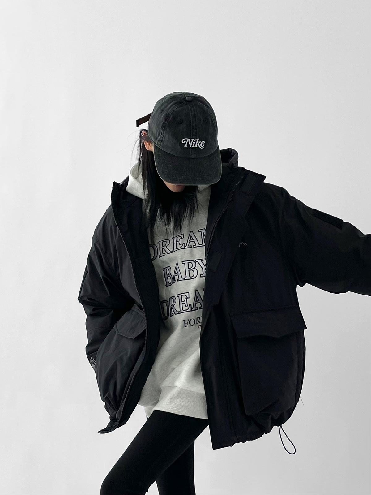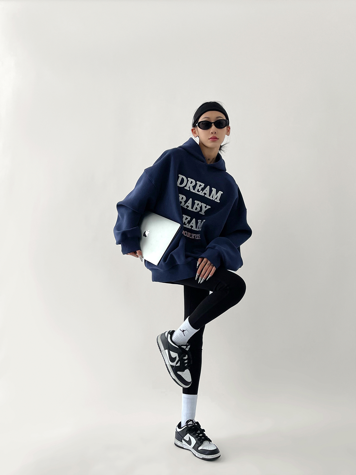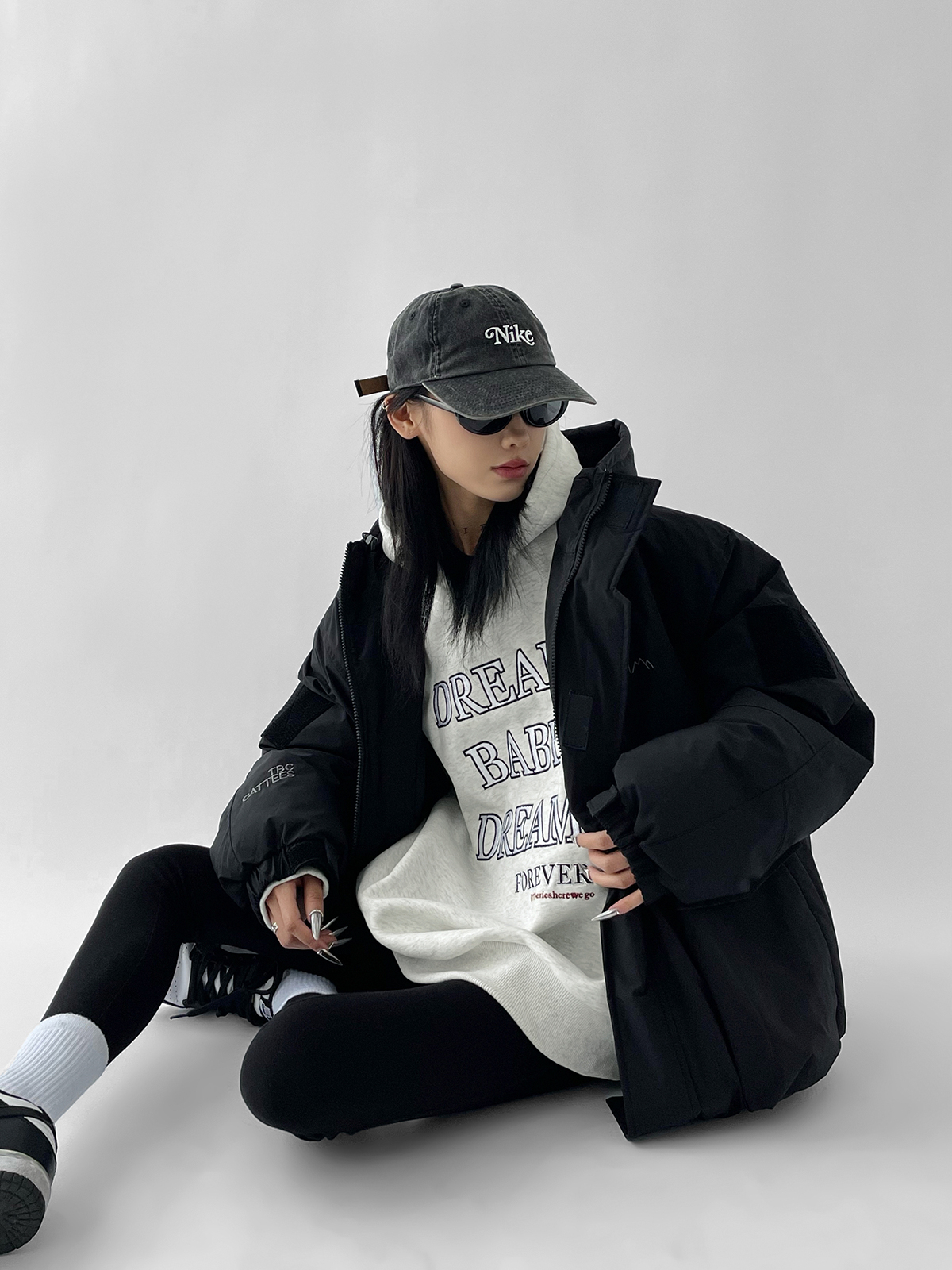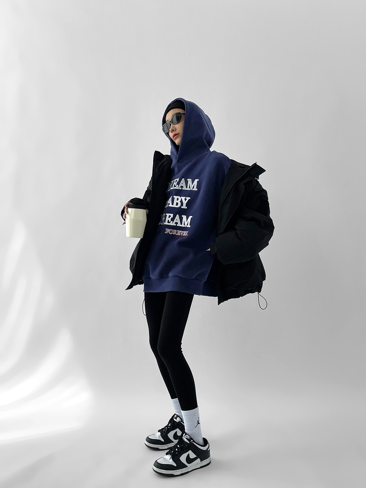 Acestudios 三色字母連帽運動衫女加厚2022秋冬新款寬鬆圓領上衣潮