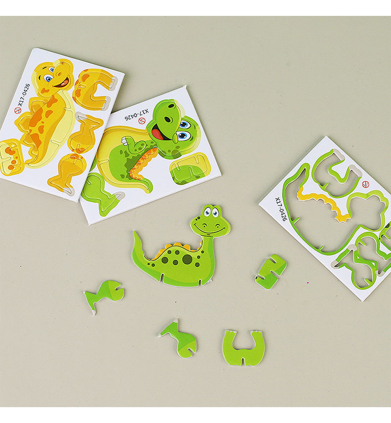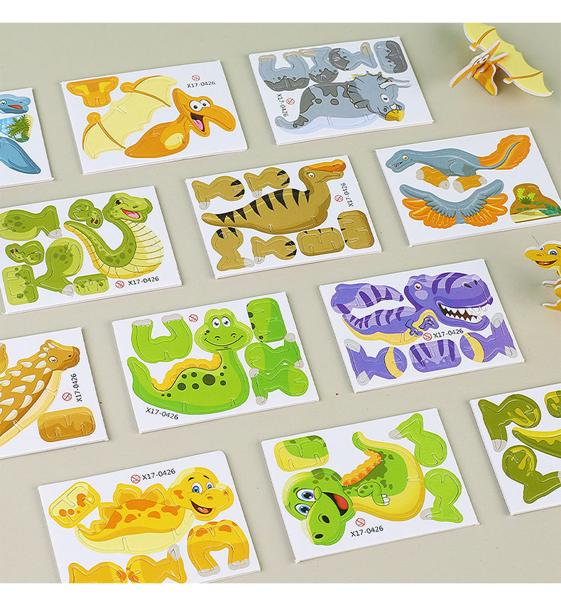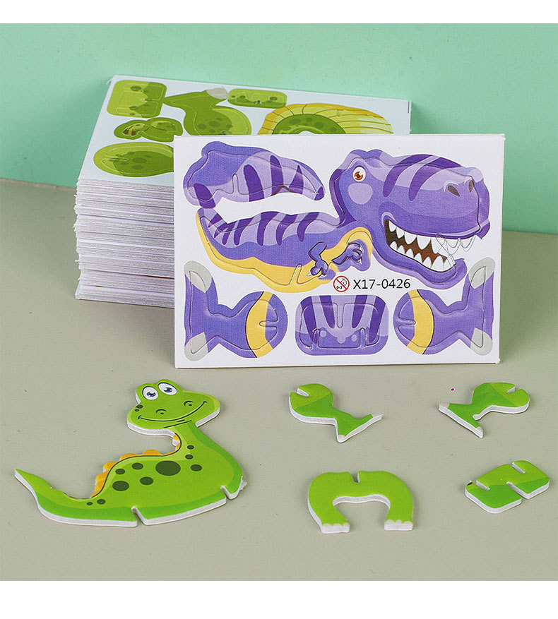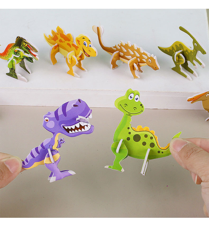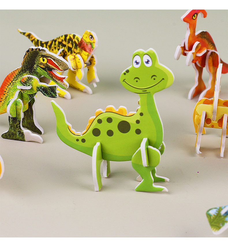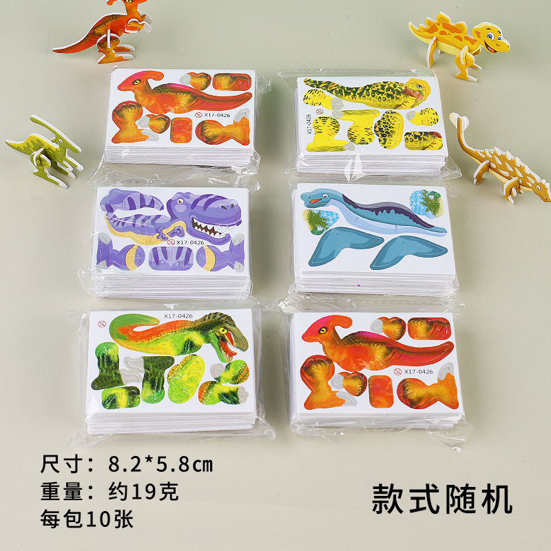 儿童DIY手工益智纸质立体恐龙拼图幼儿早教拼装玩具批发地摊热卖
