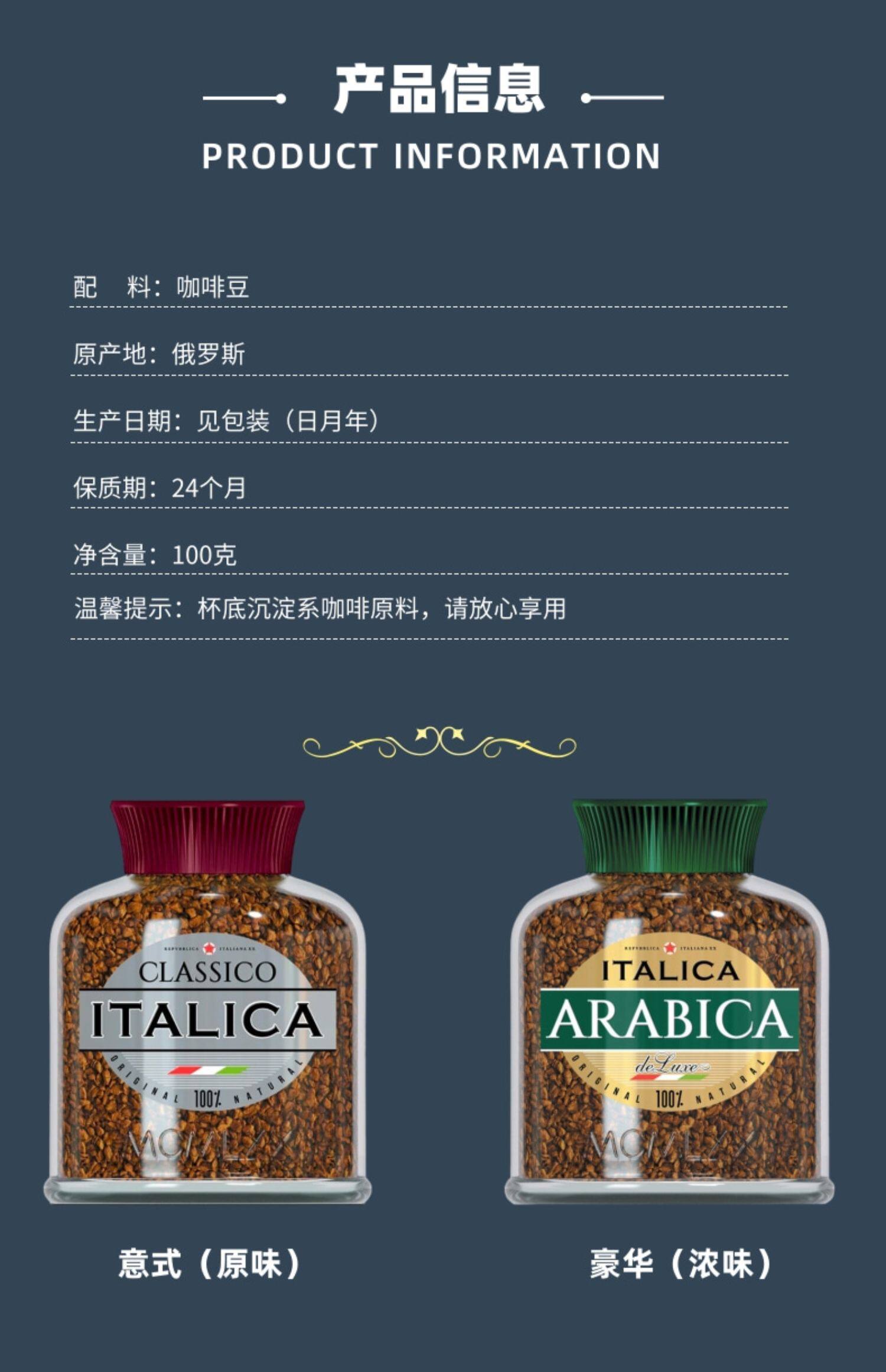 俄羅斯進口黑咖啡意大利意式濃縮純咖啡凍幹速溶無糖原味特濃瓶裝