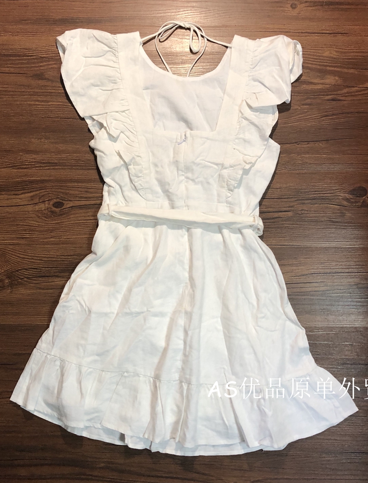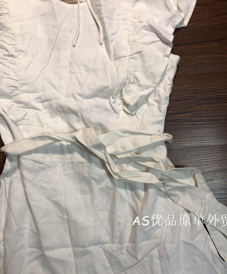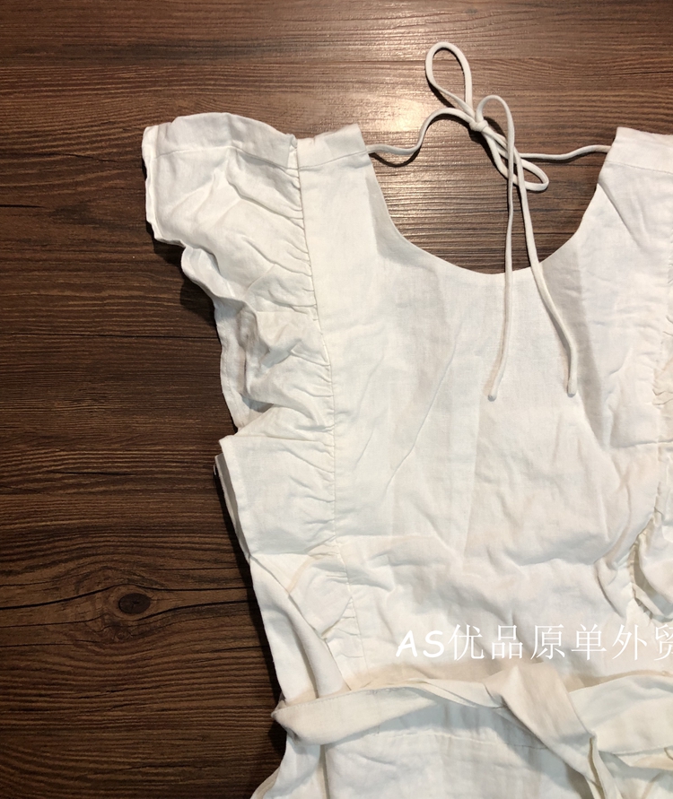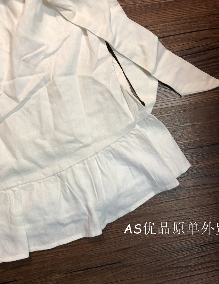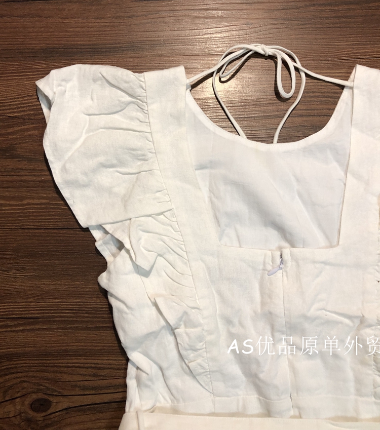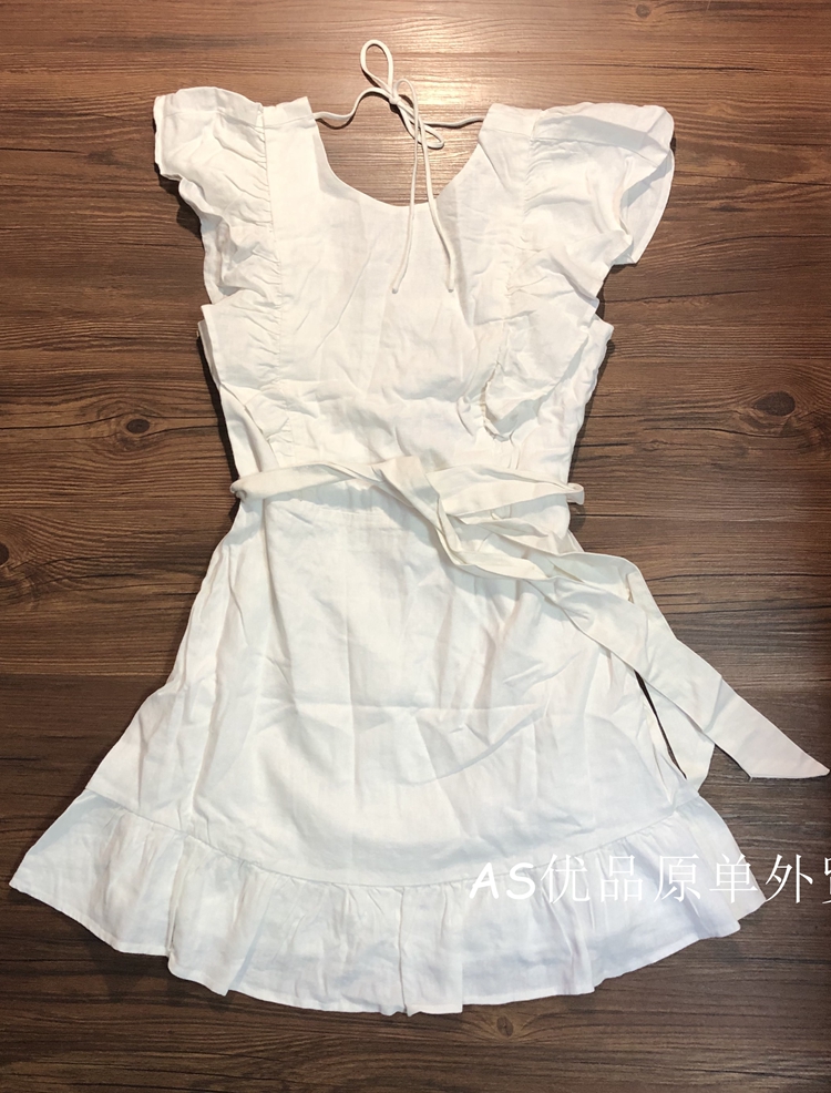 出口訂單 2022夏季新款女裝法式繫帶收腰顯瘦荷葉邊洋裝小白裙