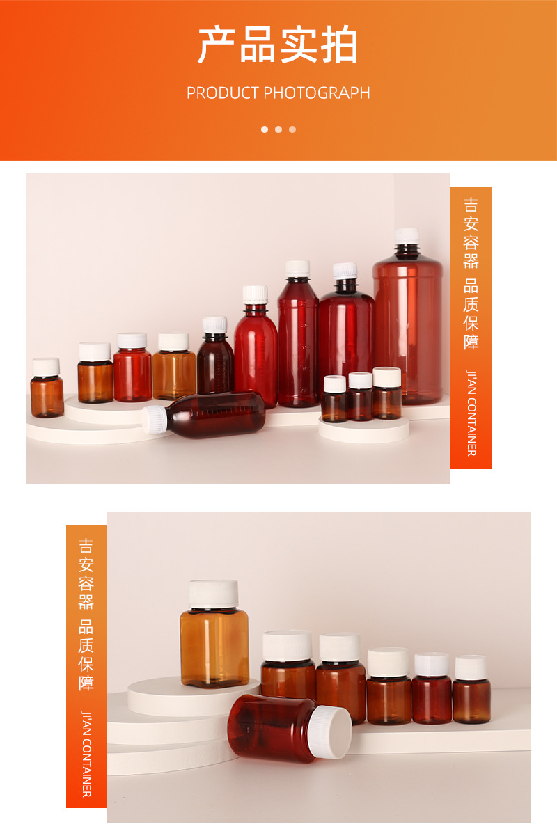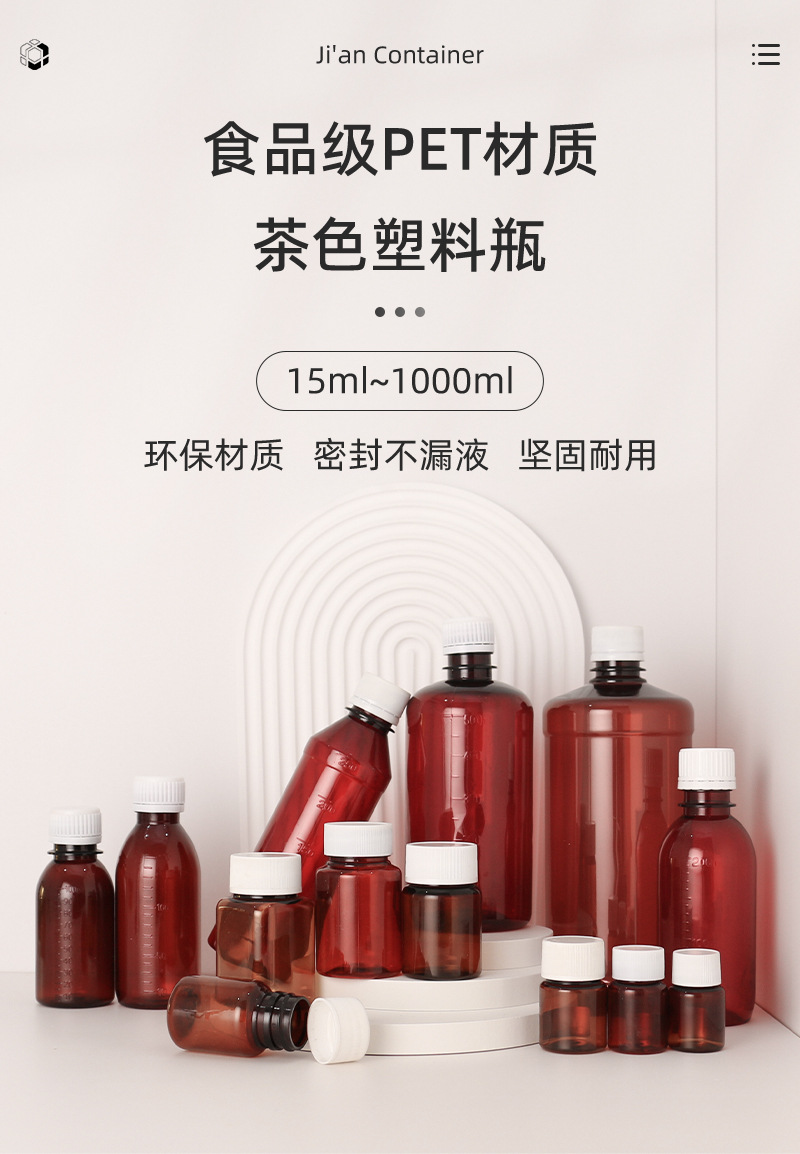 15/30/60/80/100/500ML茶色塑料瓶1升棕色药剂瓶口服液体样品小瓶