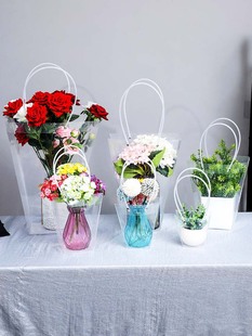 方形PP透明手提袋母亲节鲜花花束袋蛋糕甜品多肉植物袋喜糖包装袋