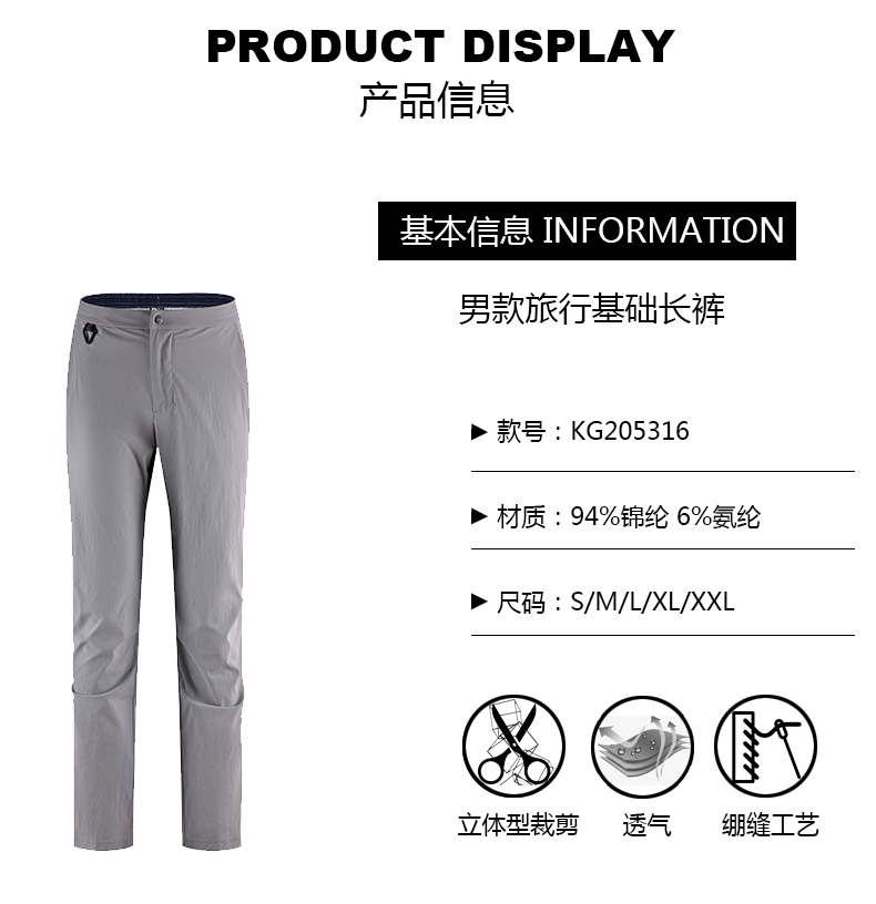 凱樂石戶外運動男款春夏旅行基礎長褲日常休閒速乾透氣褲