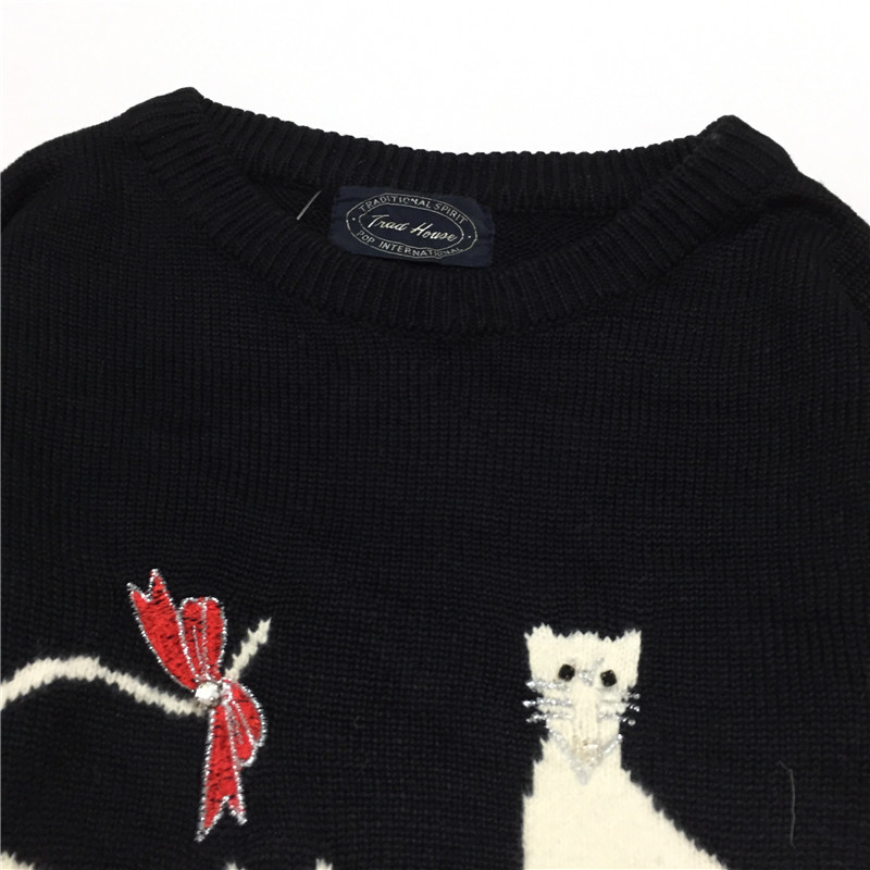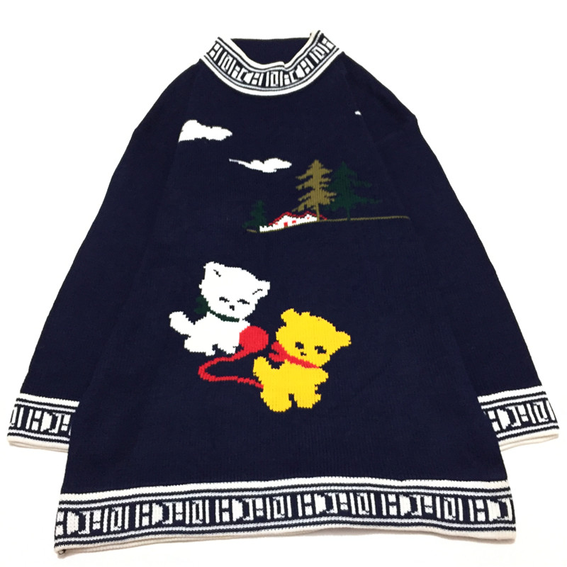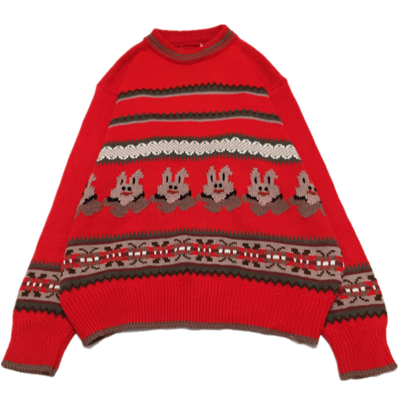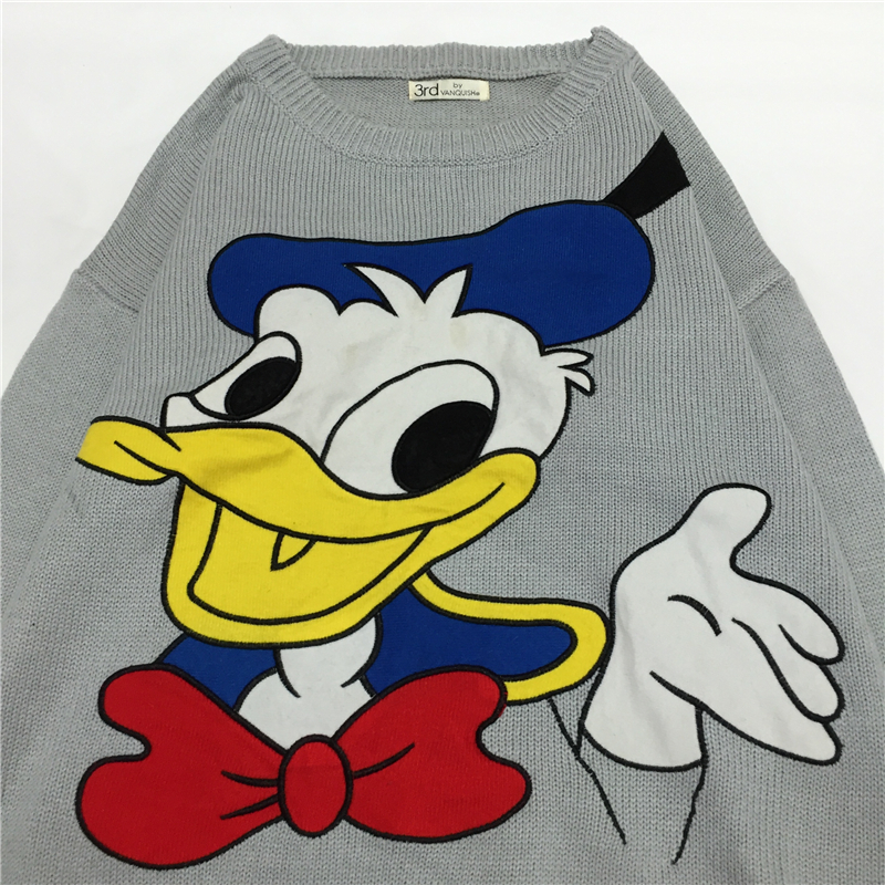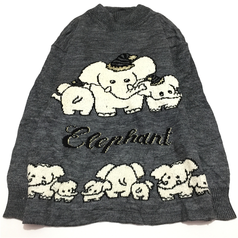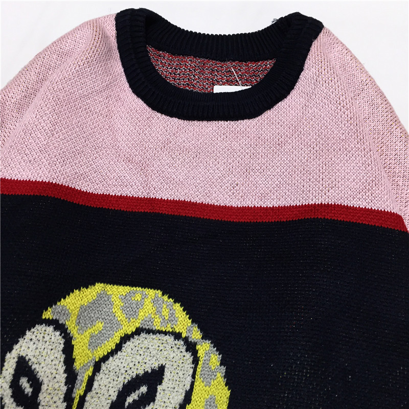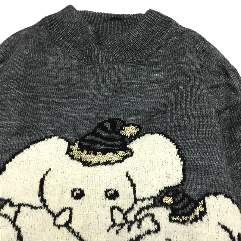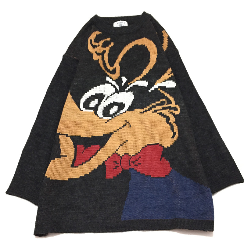 vintage古著秋冬復古童趣卡通動漫圖案撞色軟妹可愛套頭毛衣女M25