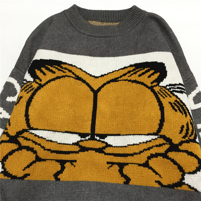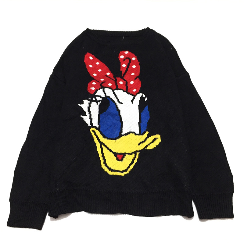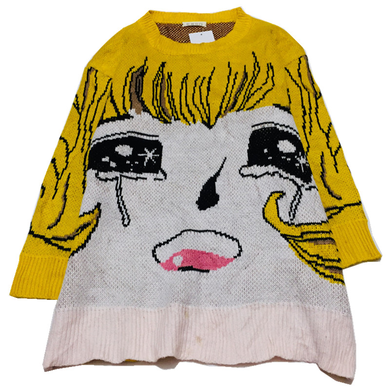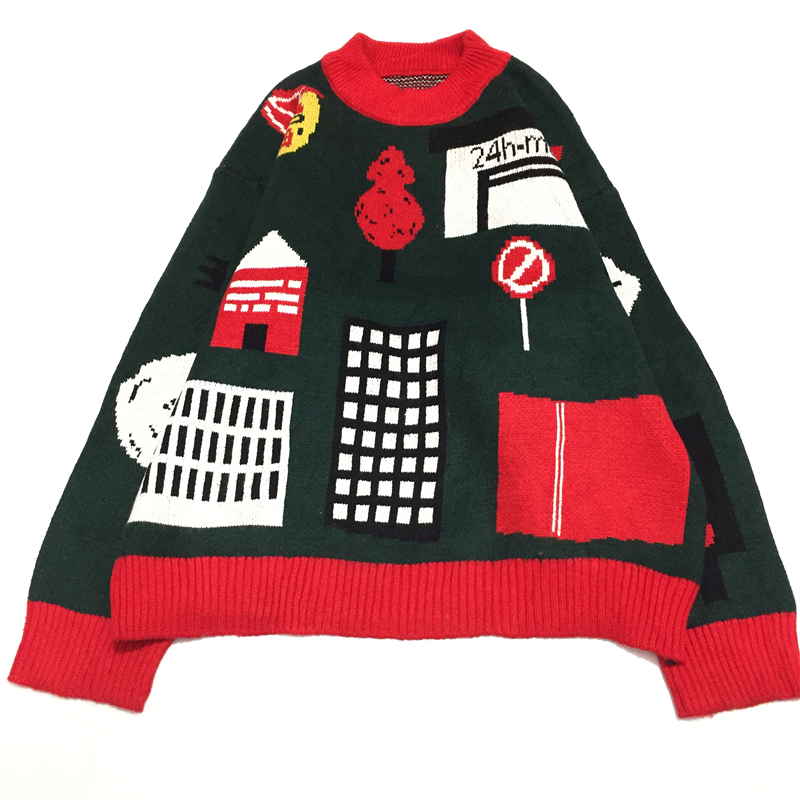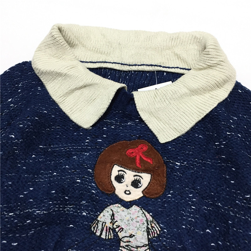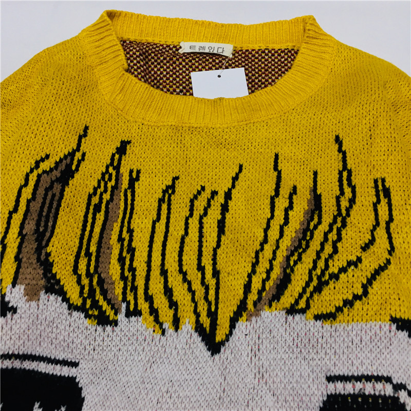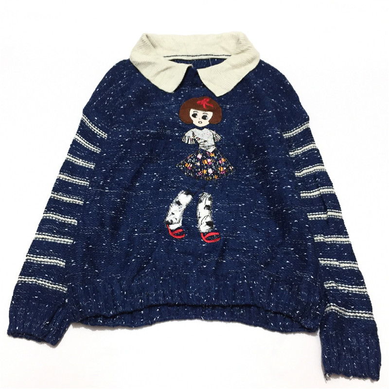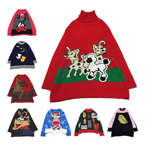 vintage古著秋冬復古童趣卡通動漫圖案撞色軟妹可愛套頭毛衣女M25