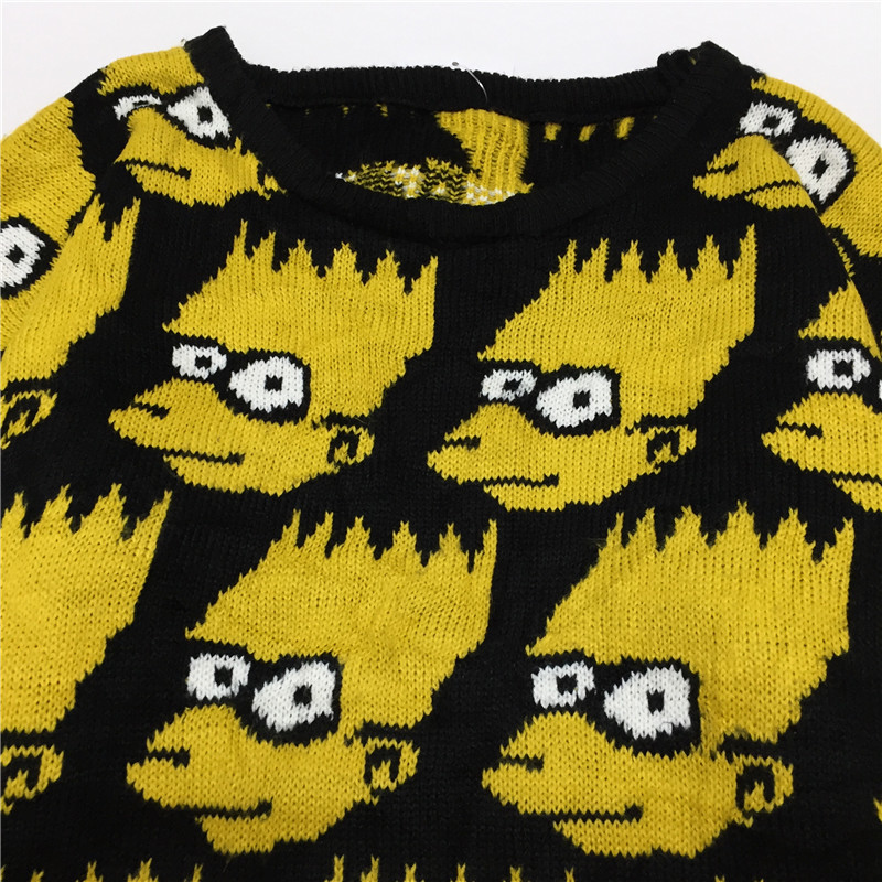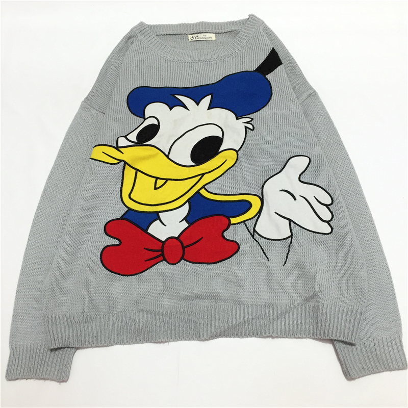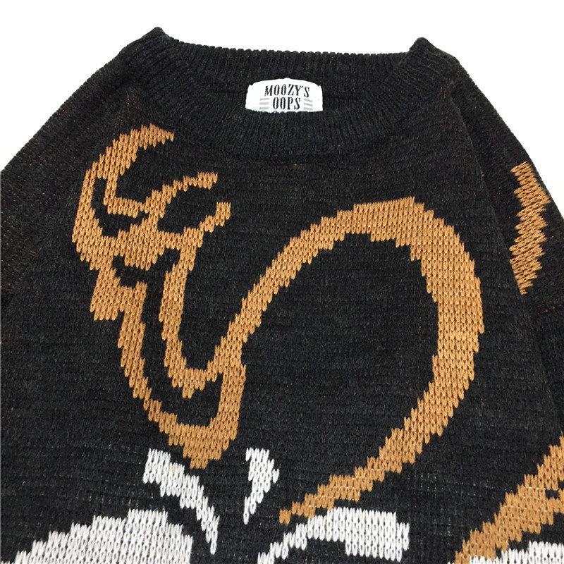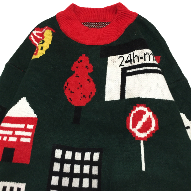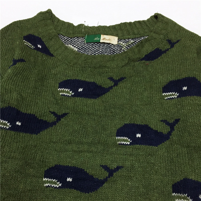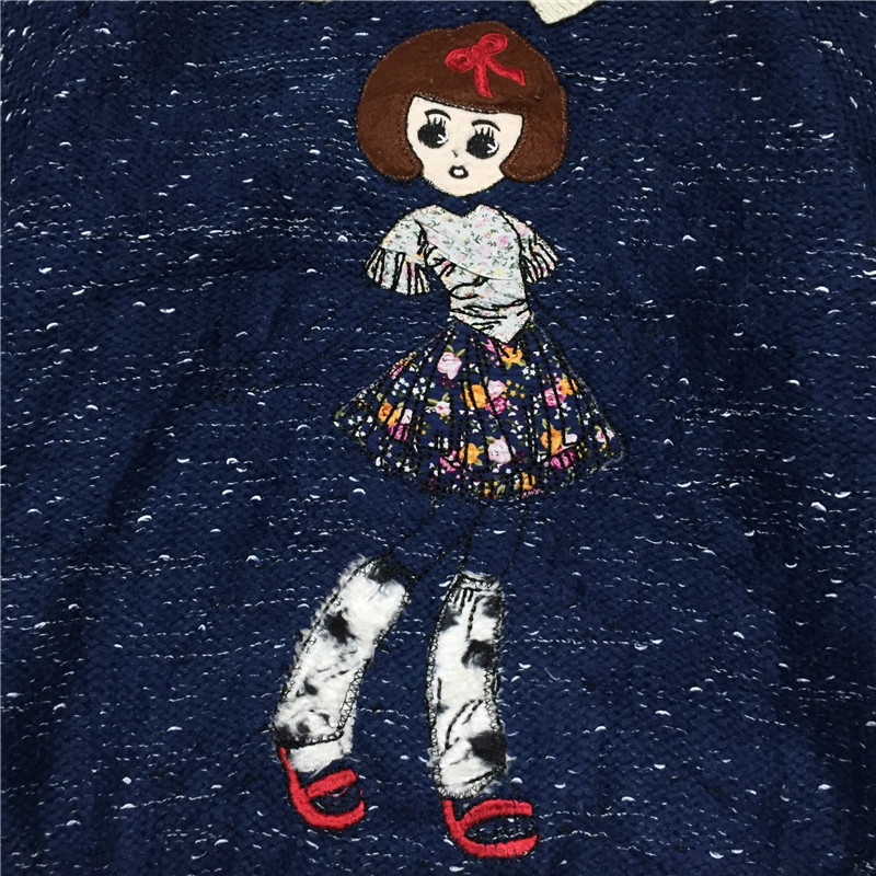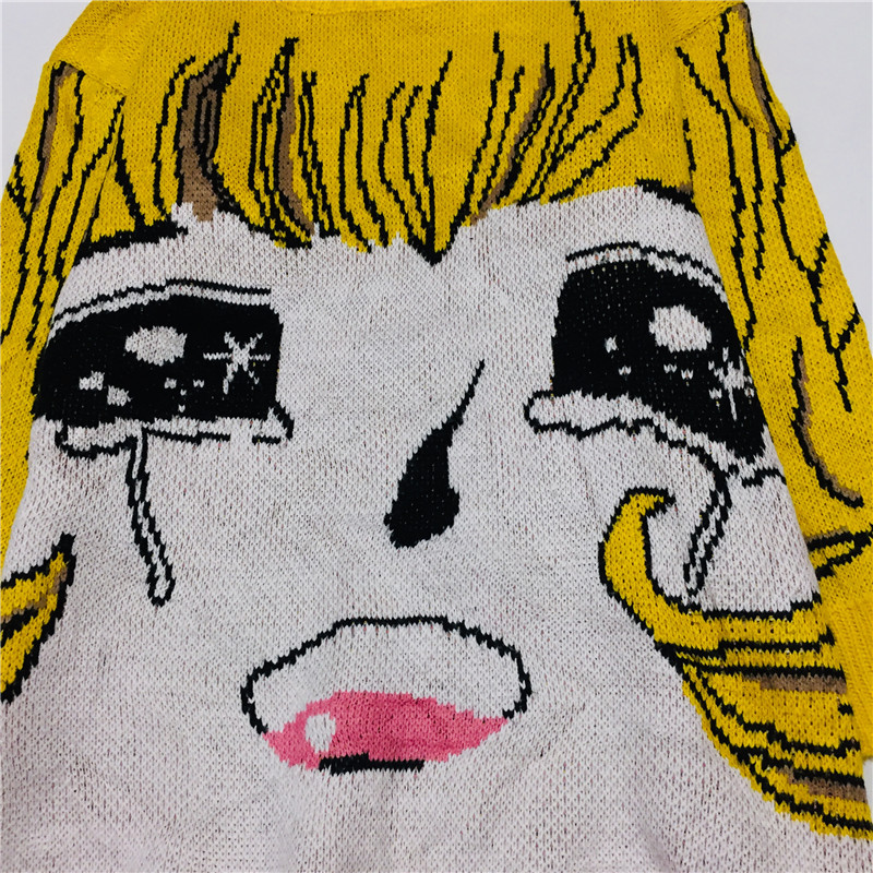 vintage古著秋冬復古童趣卡通動漫圖案撞色軟妹可愛套頭毛衣女M25