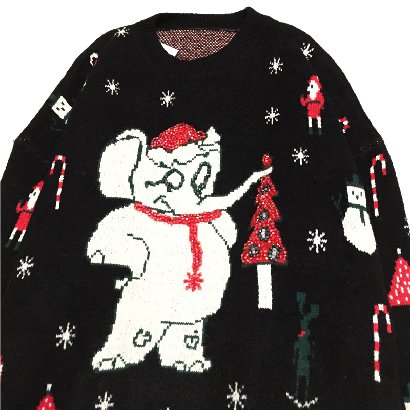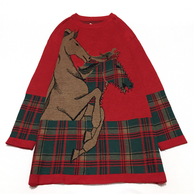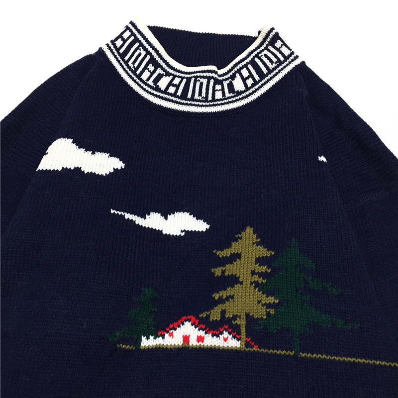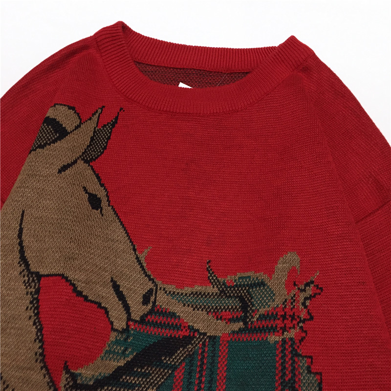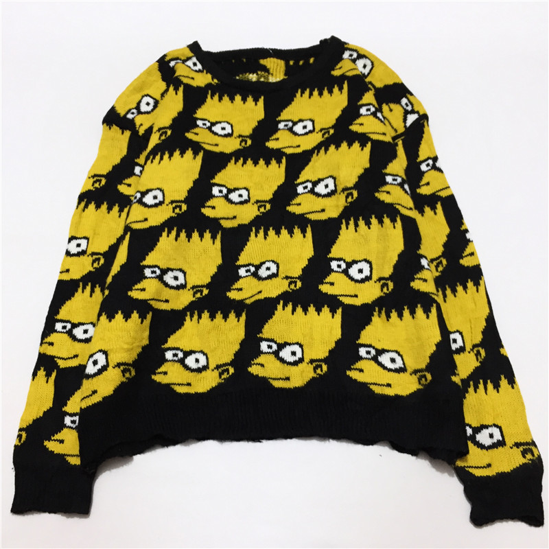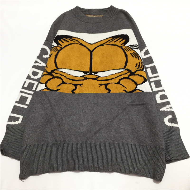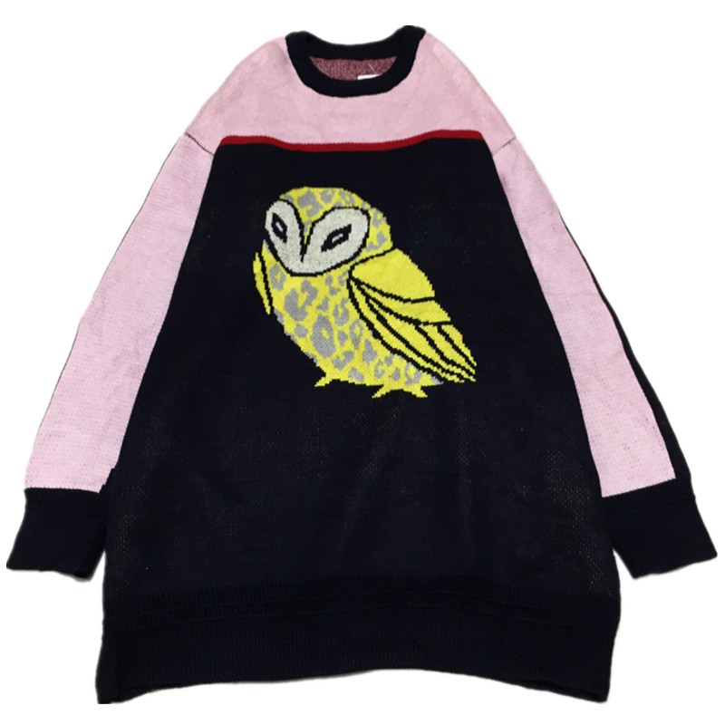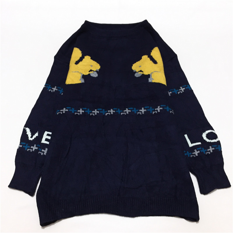 vintage古著秋冬復古童趣卡通動漫圖案撞色軟妹可愛套頭毛衣女M25