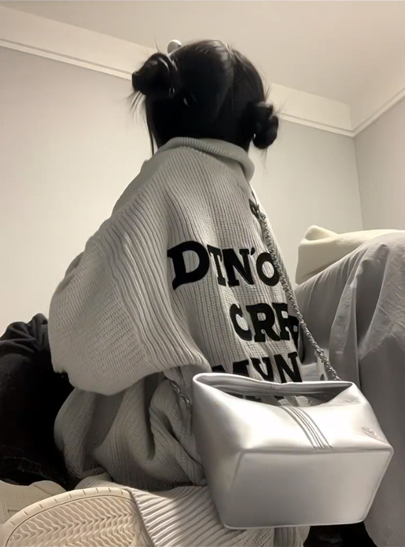韓版hiphop刺繡字母開衫polo領毛衣女春秋寬鬆慵懶風bf針織衫外套