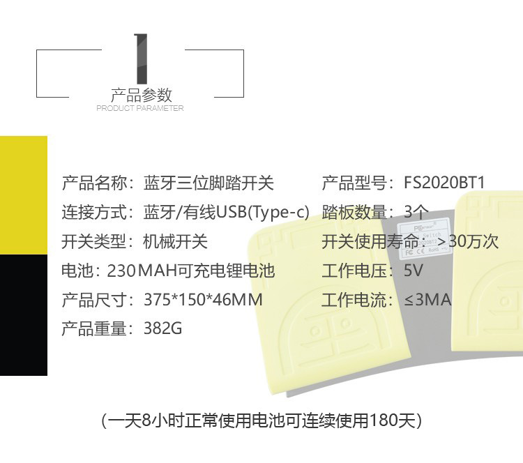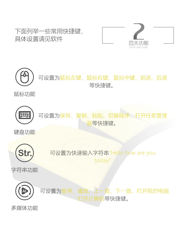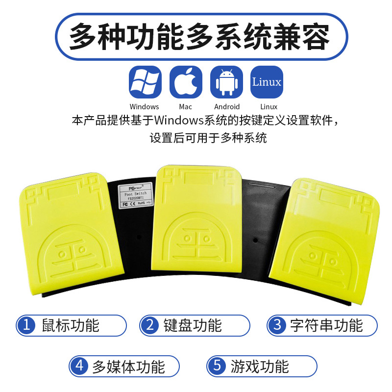 无线蓝牙脚踏开关脚踩式开关自定义电脑键盘鼠标快捷脚踏板开关