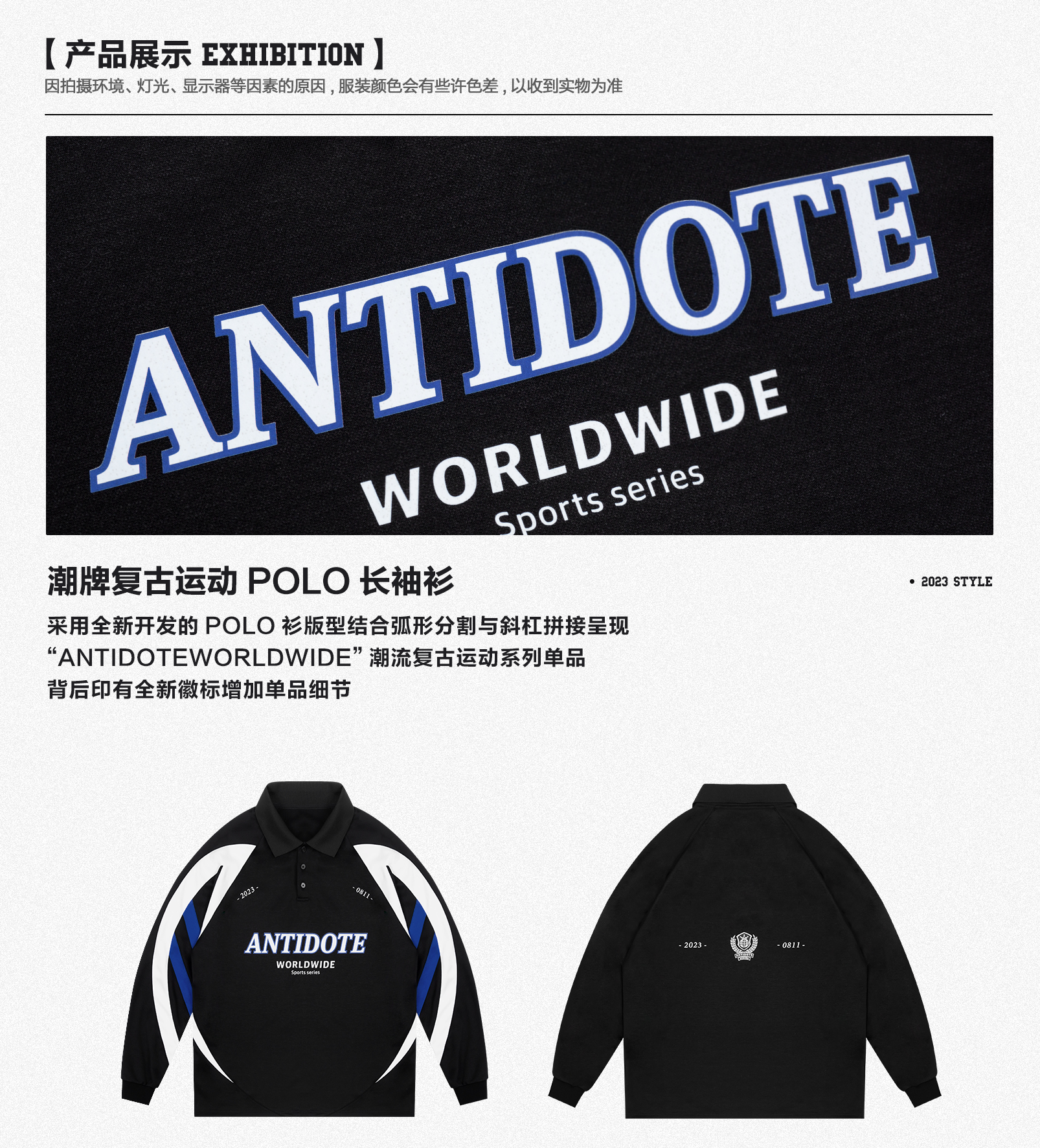 ANTIDOTE(SNAKELAB)翻領polo衫男長袖秋冬季潮牌美式復古寬鬆上衣