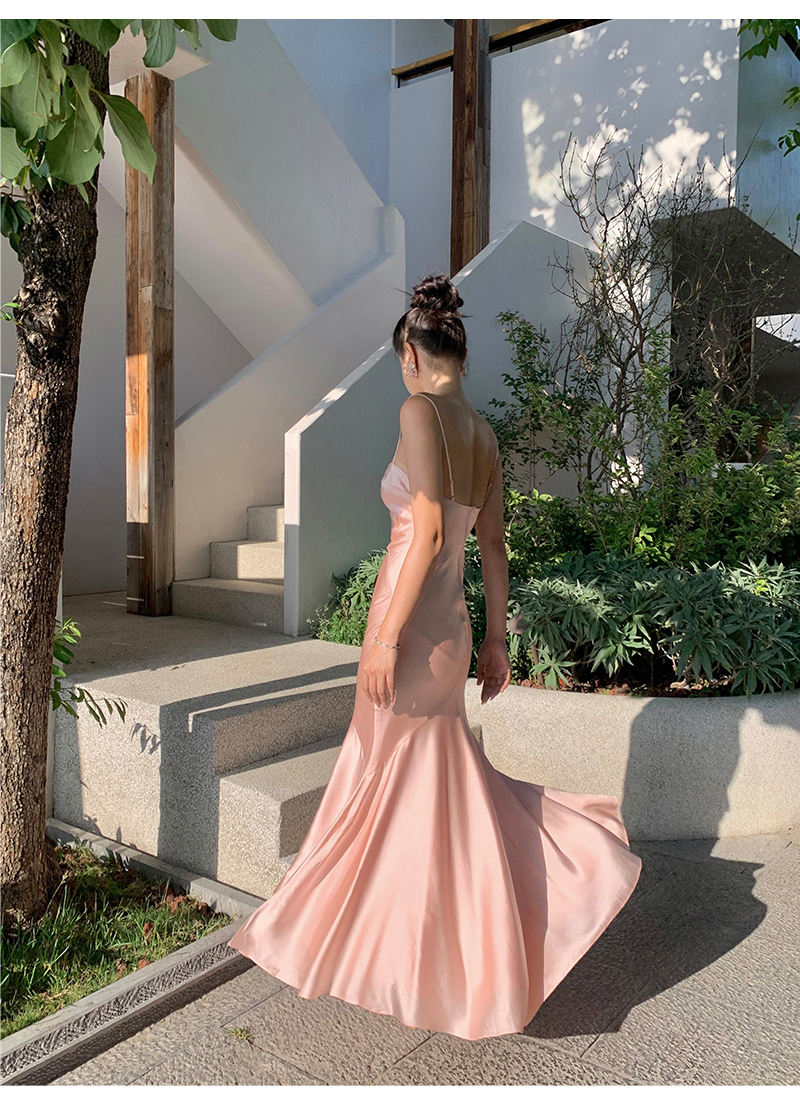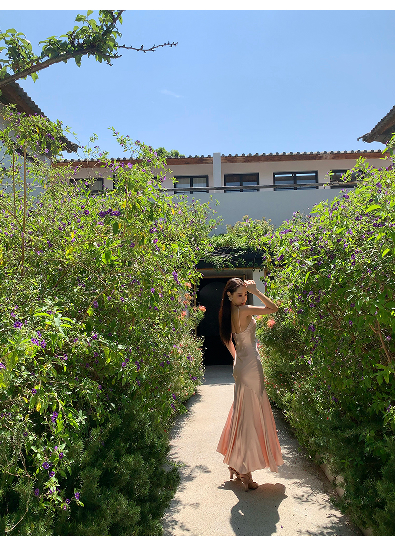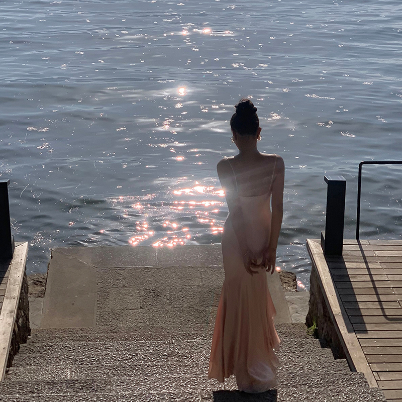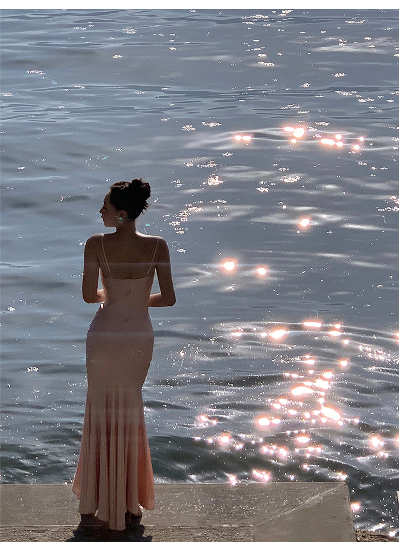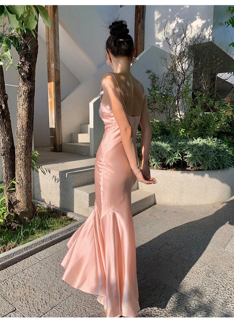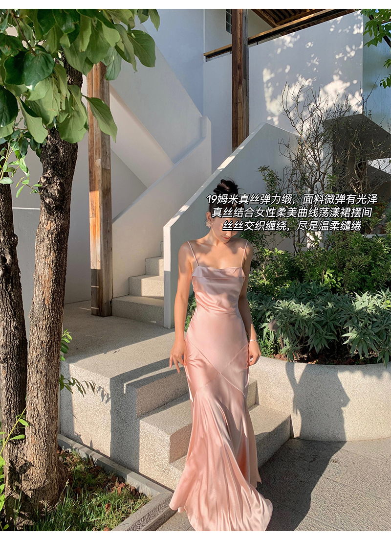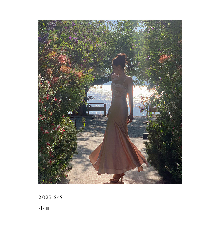 小麗XIAOLI美人魚真絲吊帶包臀連衣裙夏氣質高級千金感魚尾長裙子