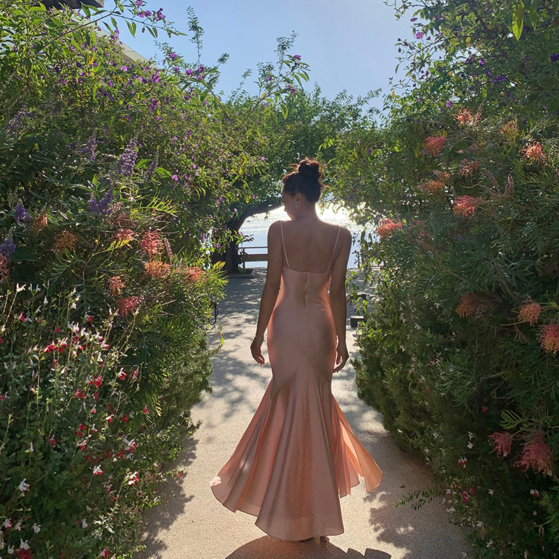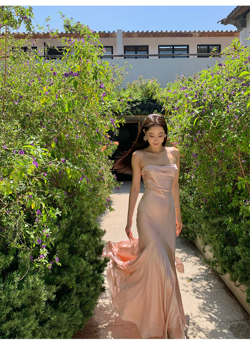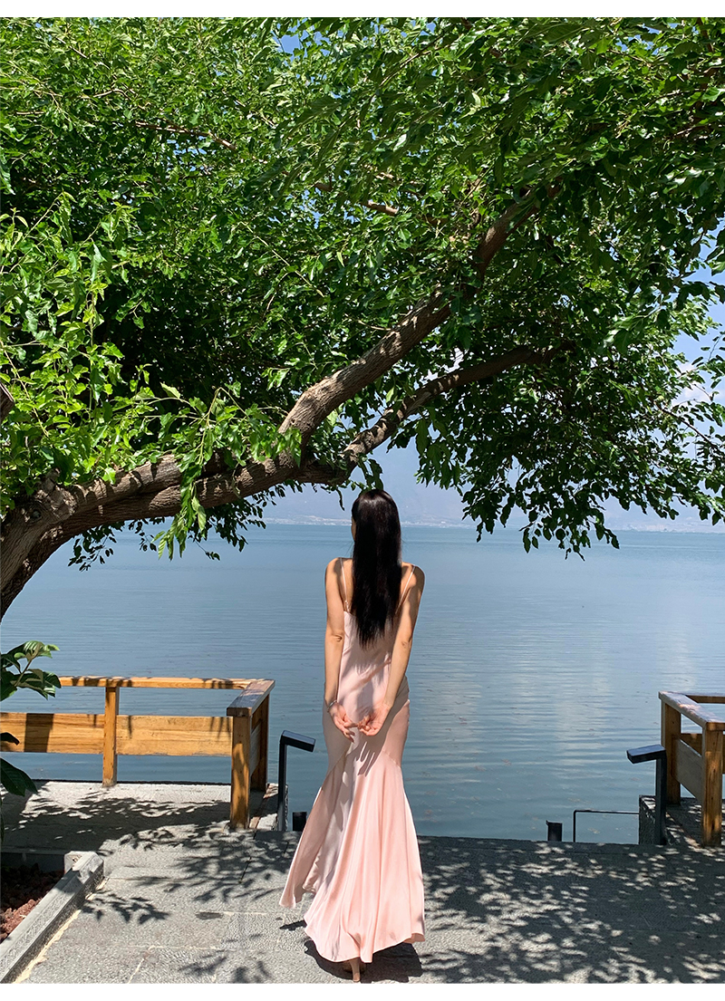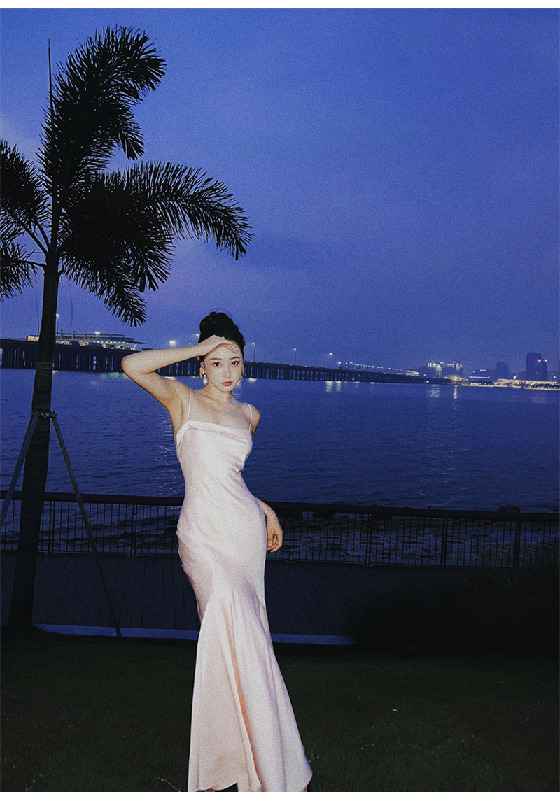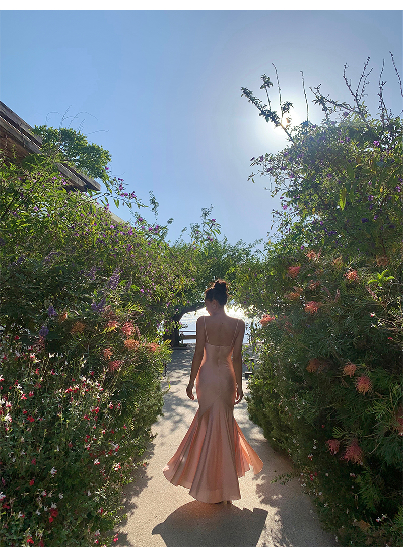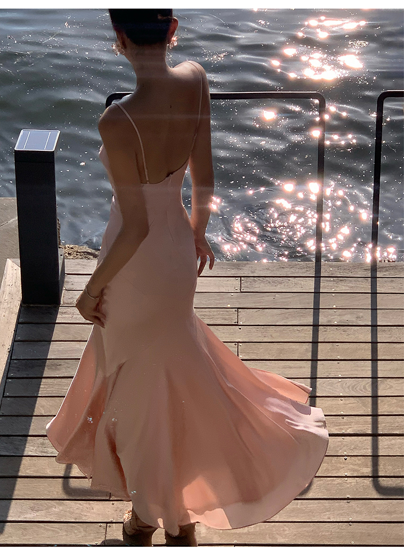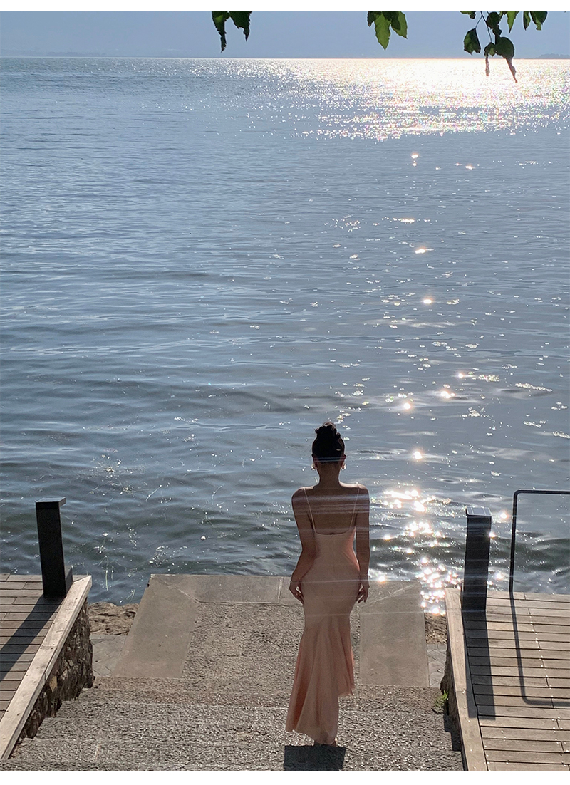 小麗XIAOLI美人魚真絲吊帶包臀連衣裙夏氣質高級千金感魚尾長裙子