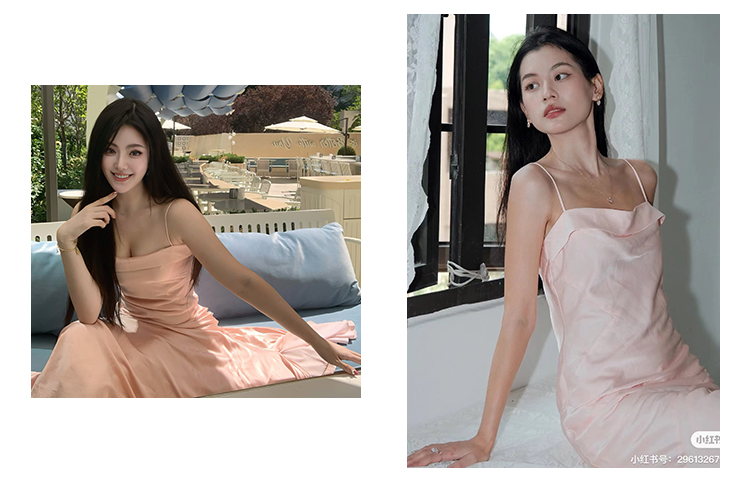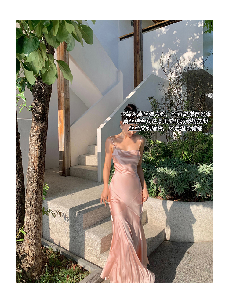 一袭真丝如水倾泻映衬着肌肤的光泽感