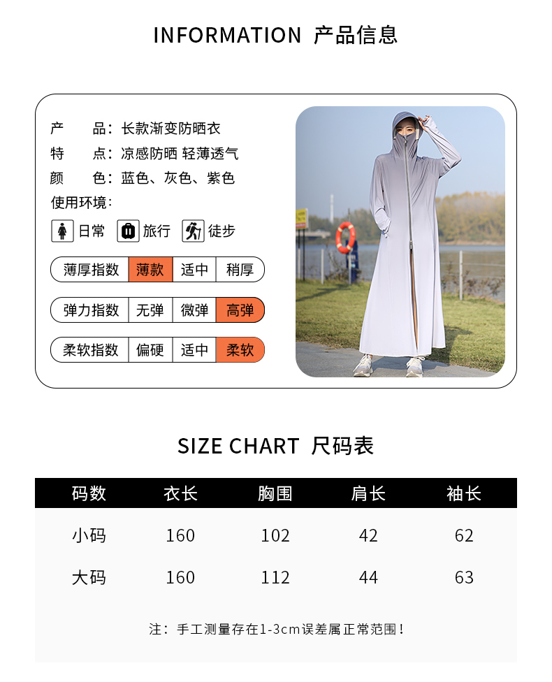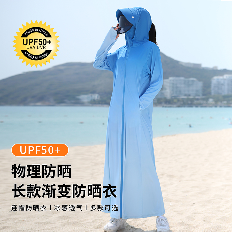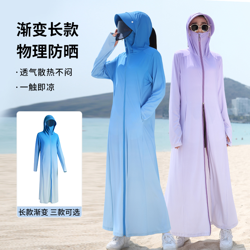 upf50+日本冰絲涼感長版全身防曬衣女夏季抗UV漸層時尚防曬服