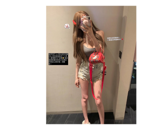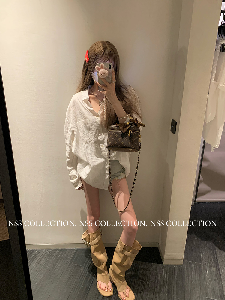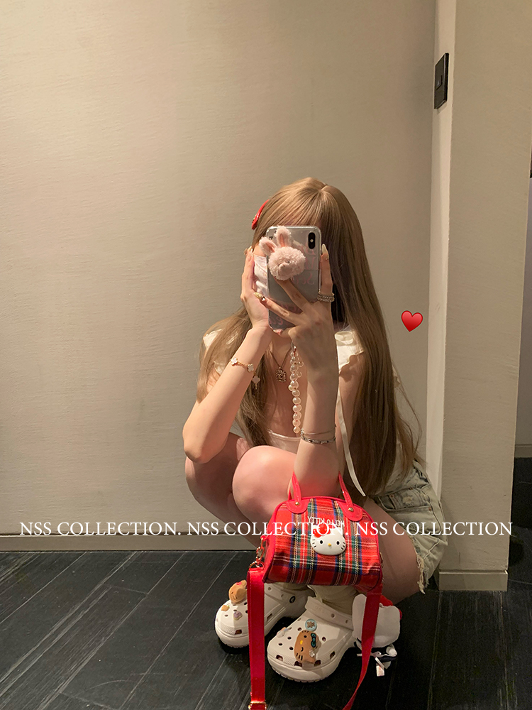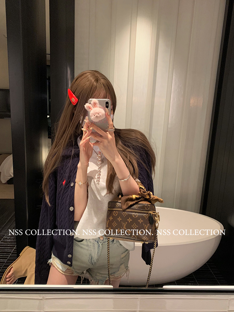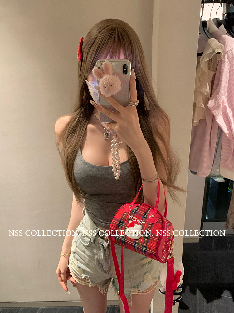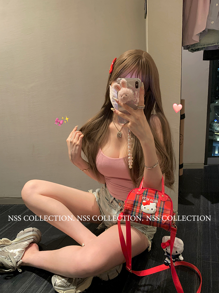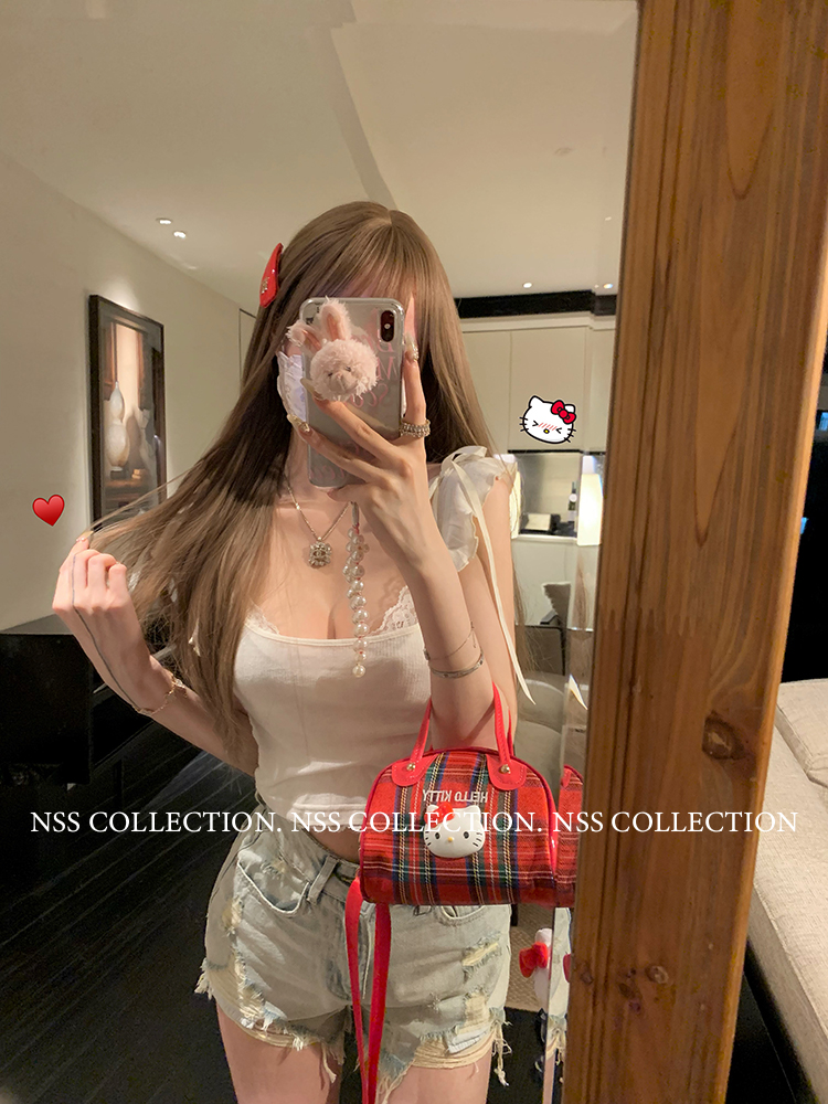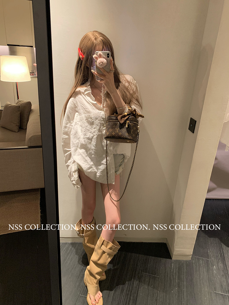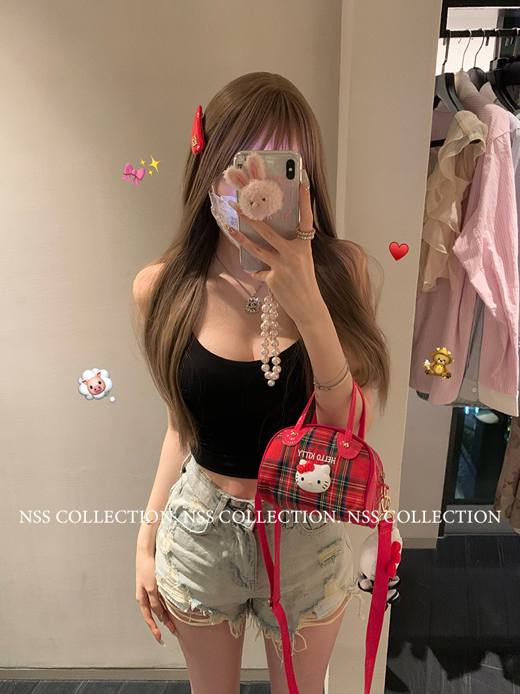 NSS COLLECTION 少女腿 淺奶藍熱褲夏高腰顯瘦a字破洞牛仔短褲女