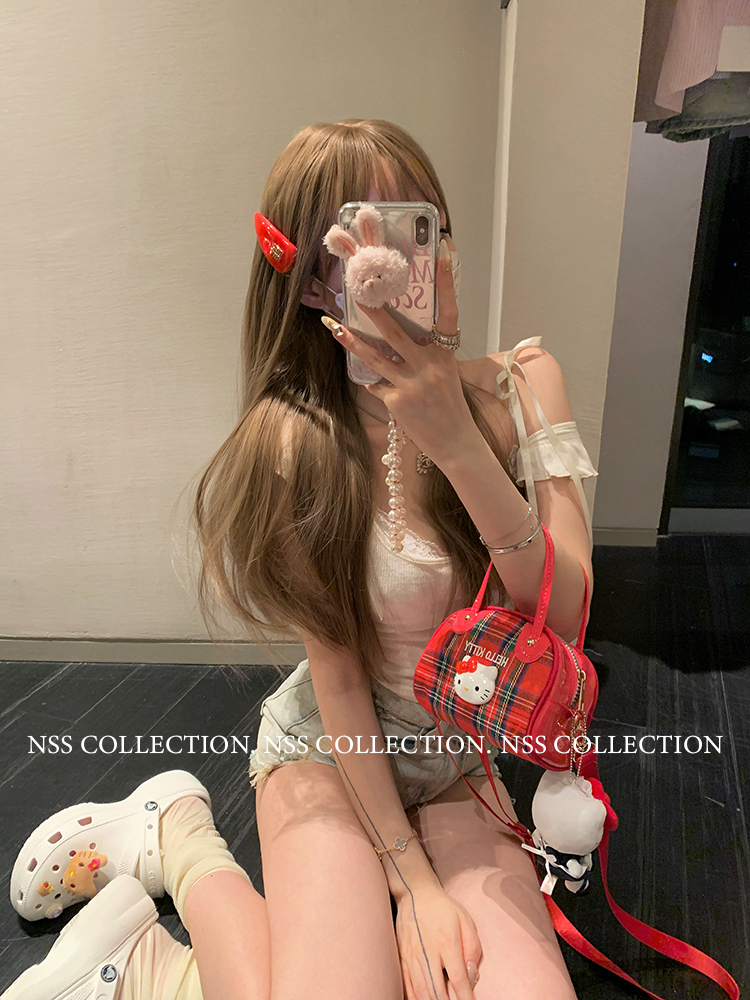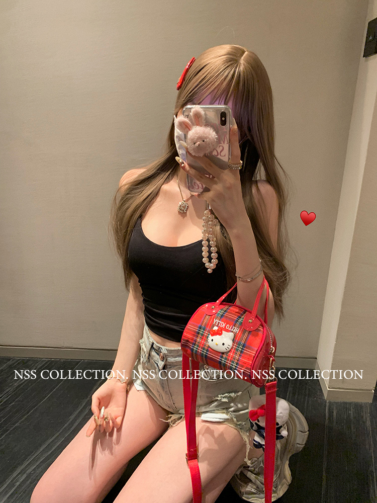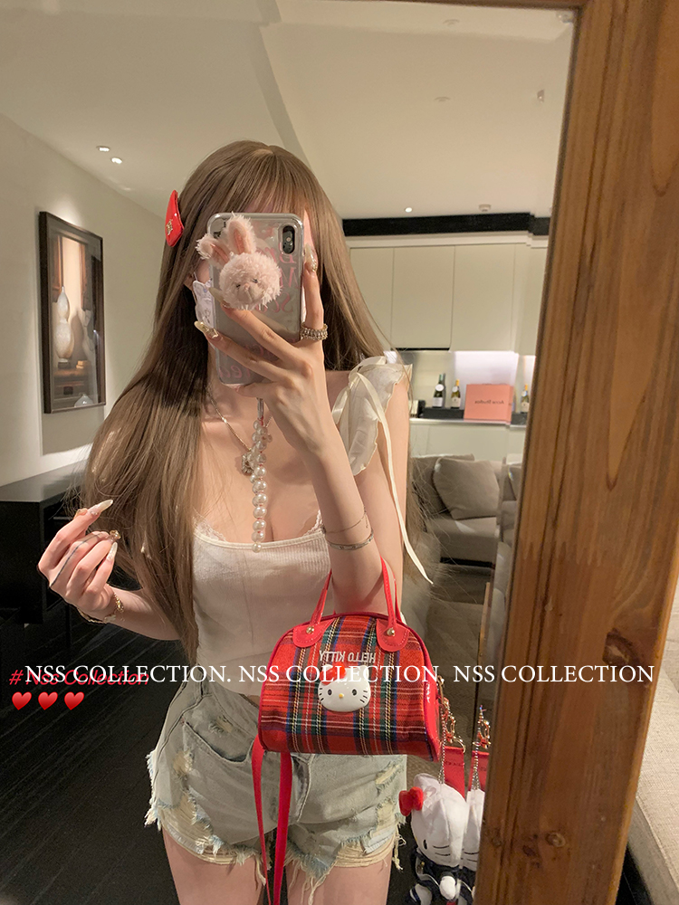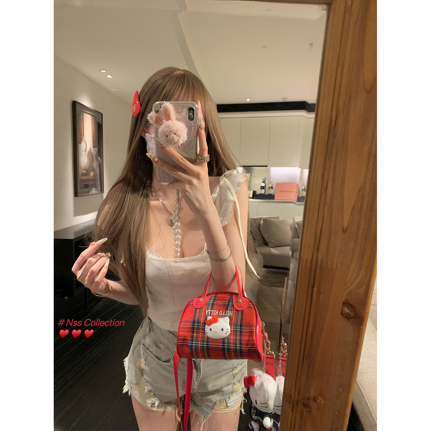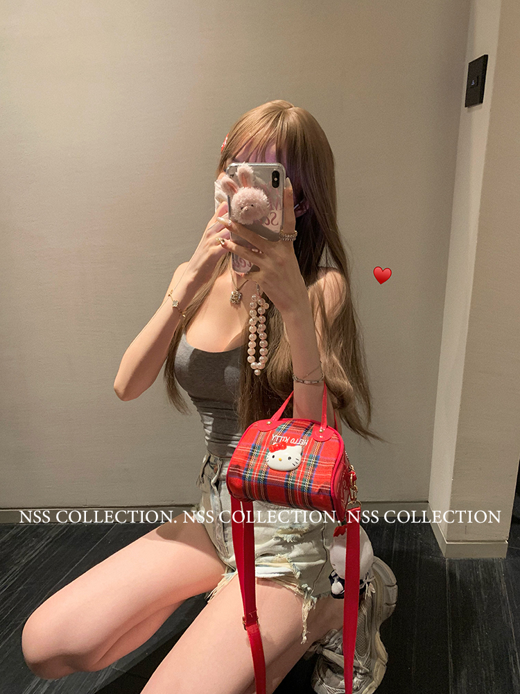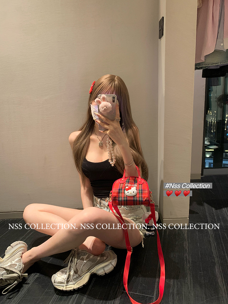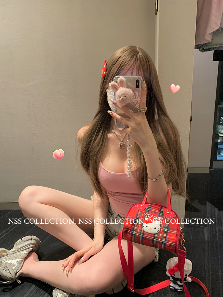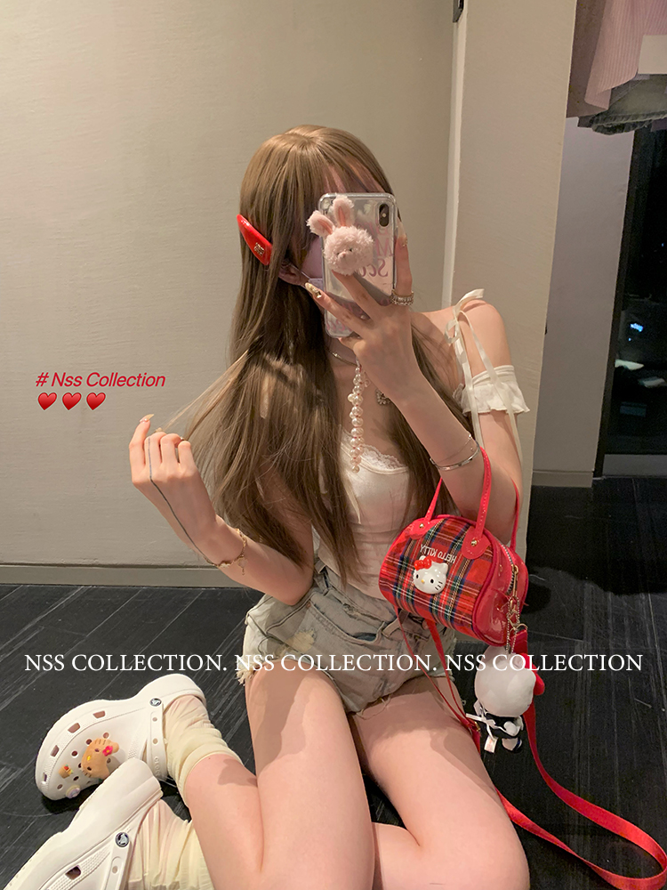 NSS COLLECTION 少女腿 淺奶藍熱褲夏高腰顯瘦a字破洞牛仔短褲女