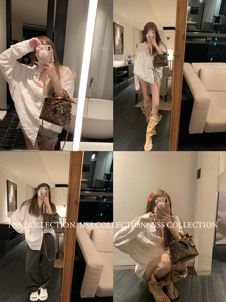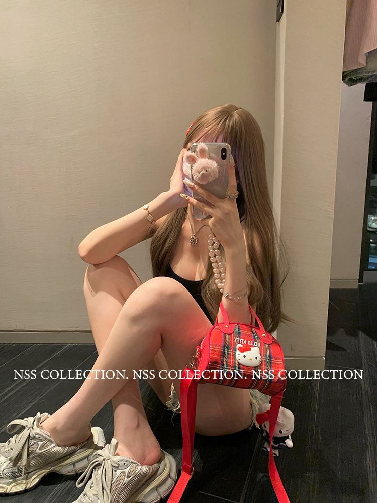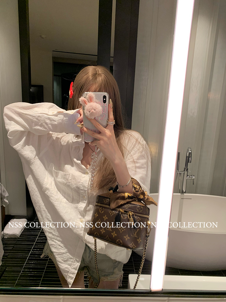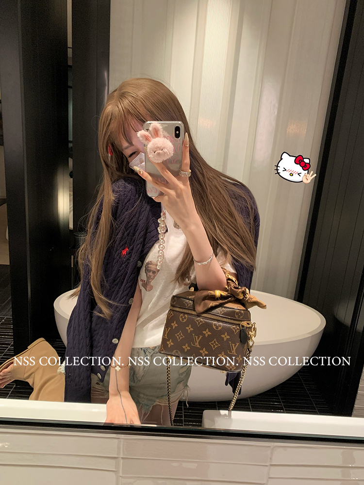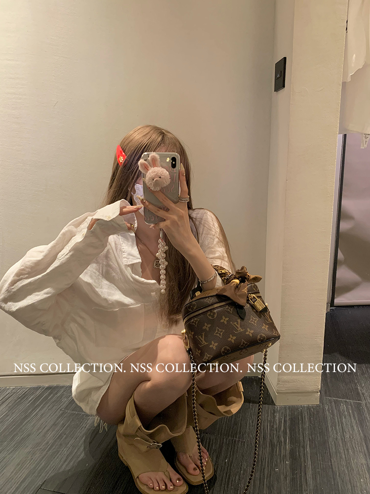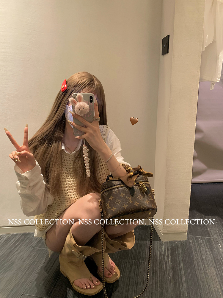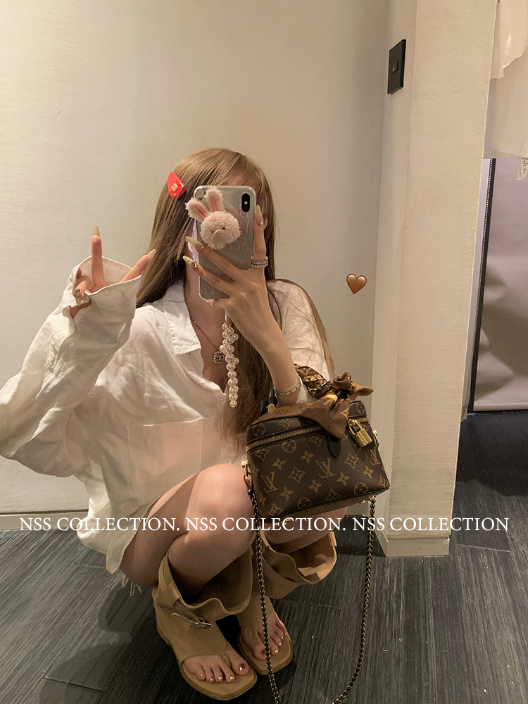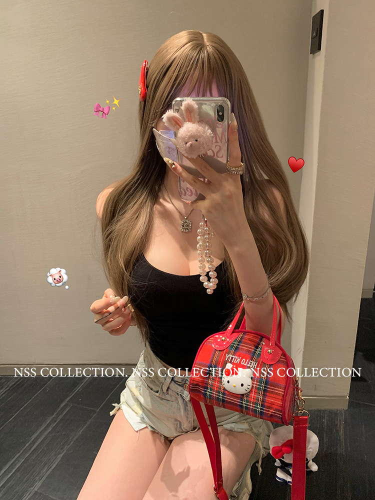NSS COLLECTION 少女腿 淺奶藍熱褲夏高腰顯瘦a字破洞牛仔短褲女